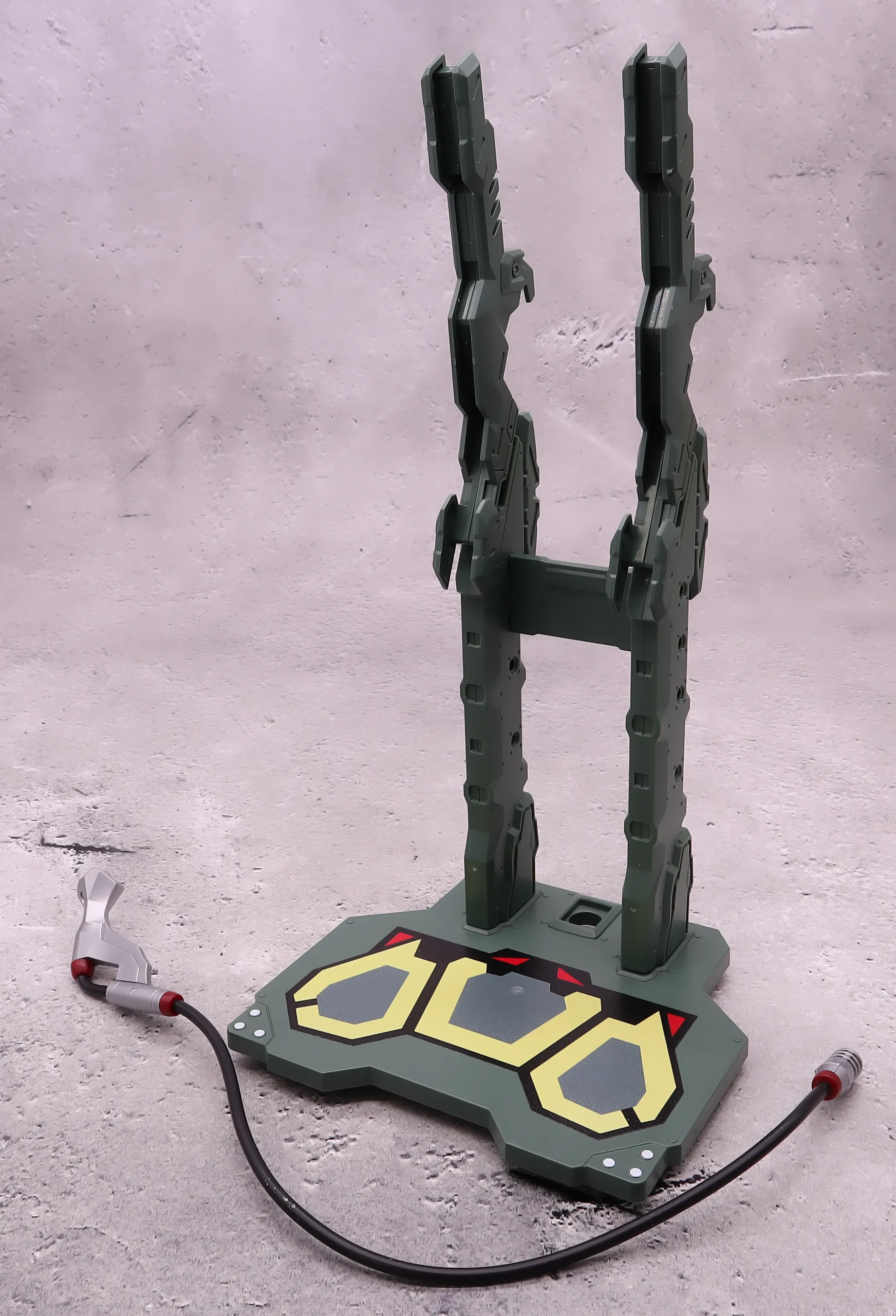 専用のディスプレイベースが付属、初号機本体には3mm穴にあたる物がないので、バンダイのフィギュアーツシリーズのような挟み込み式で本体を保持するスタンドになります。