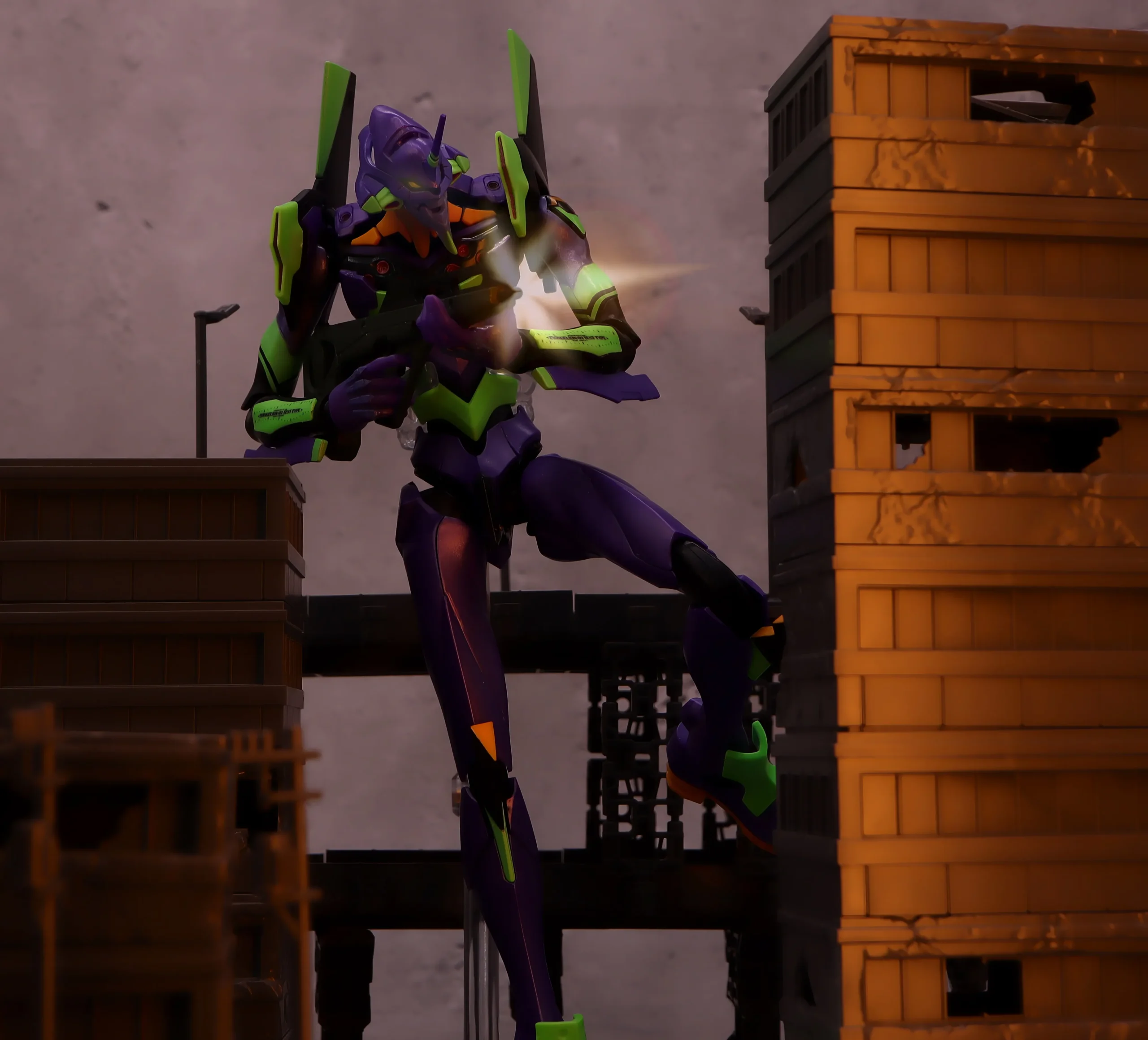 色々な銃火器を使うエヴァですが、個人的にはやっぱりこのライフル構えてる姿が一番しっくりきます。