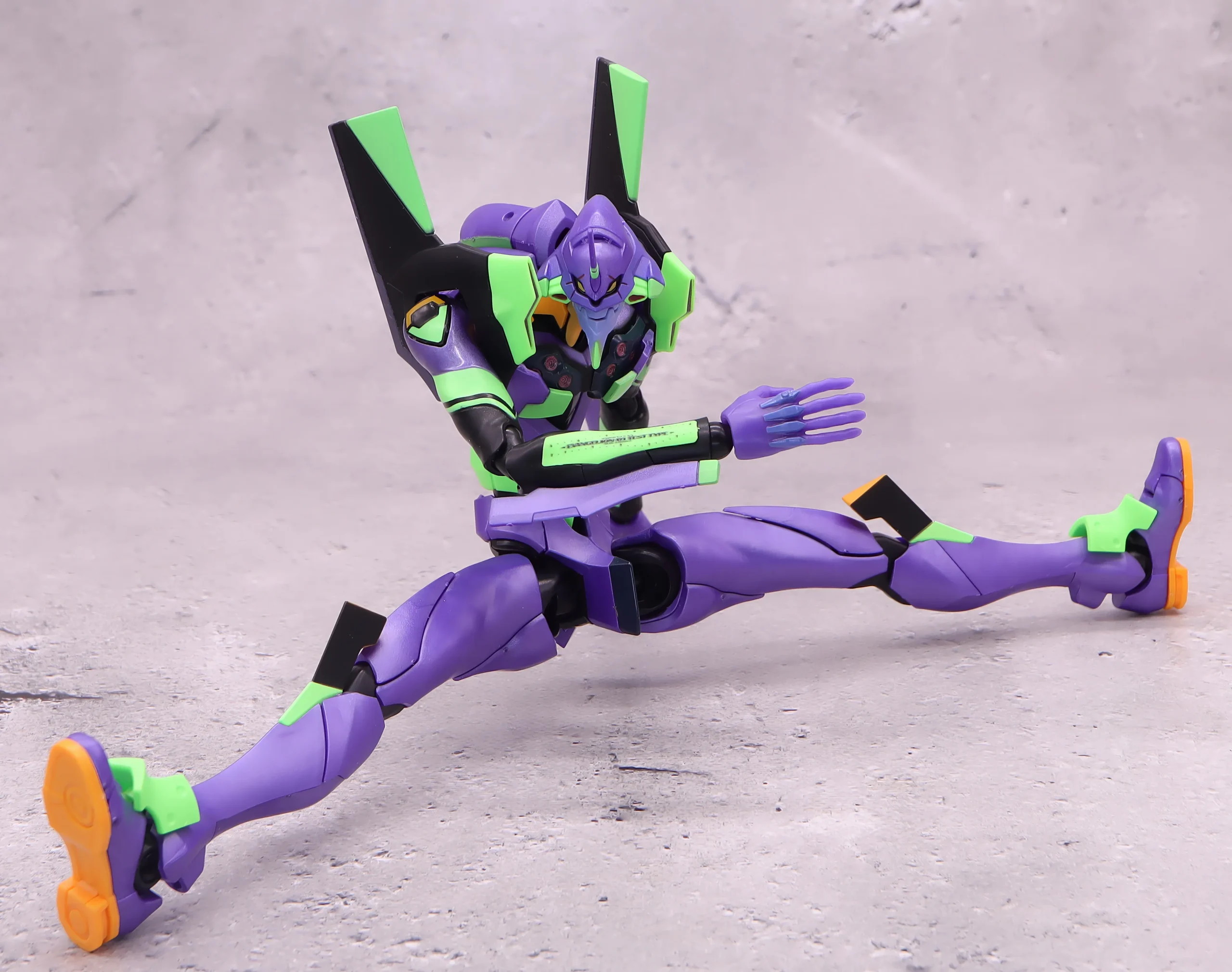 エヴァ各機は元々下半身のデザインがスッキリとしているので、他メーカーの立体物でも下半身可動は優秀なのですが、本キットもとても優秀