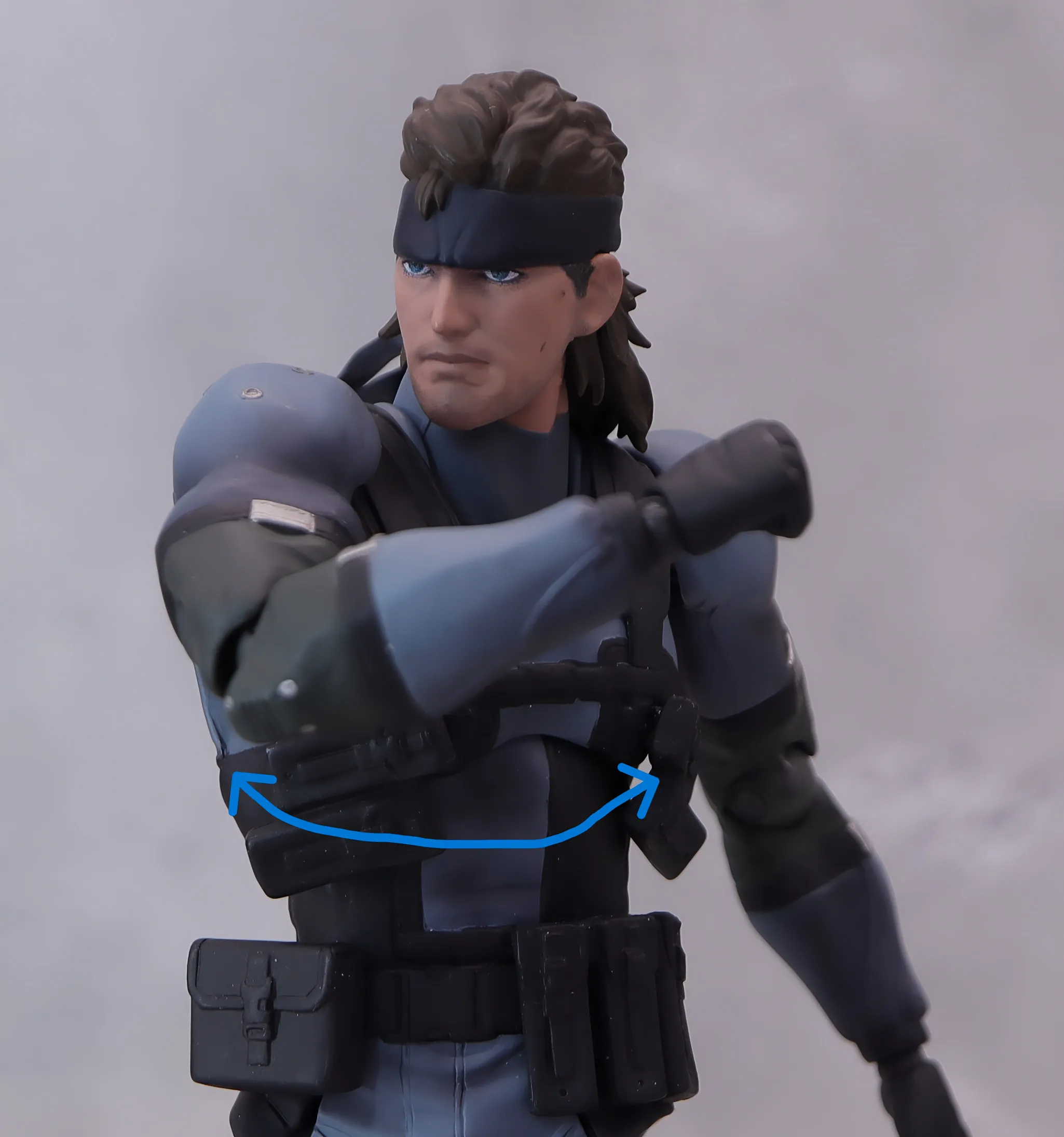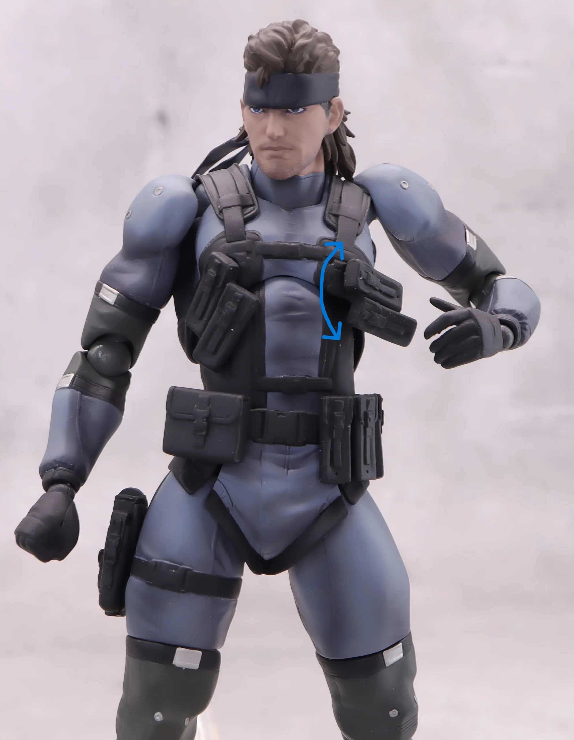 このギミックを使う事で、反らしたり屈んだりといった柔軟な状態アクションが再現可能に、特にスネークはしゃがんだ状態のポーズが多いので、このギミックは嬉しいところ