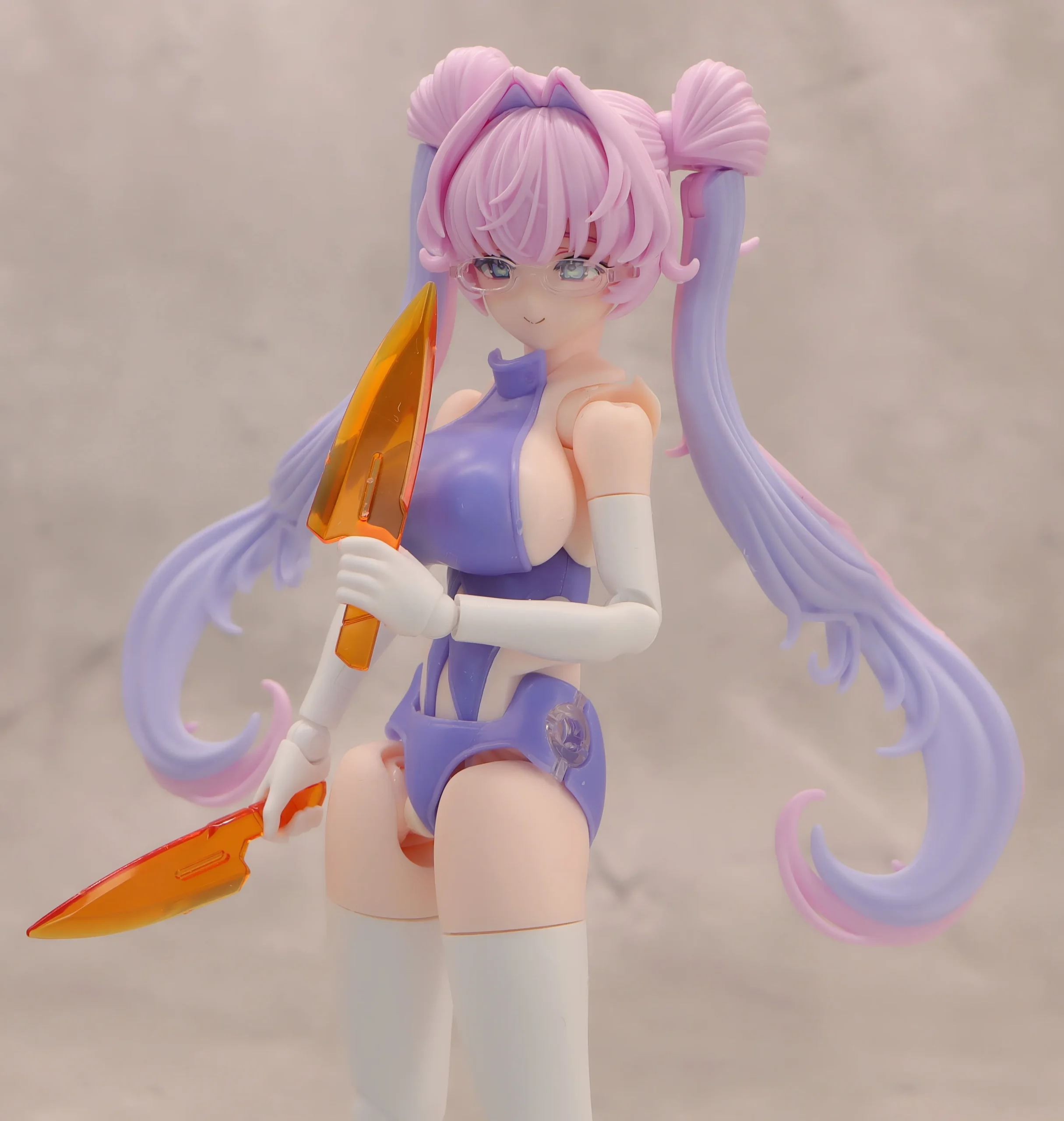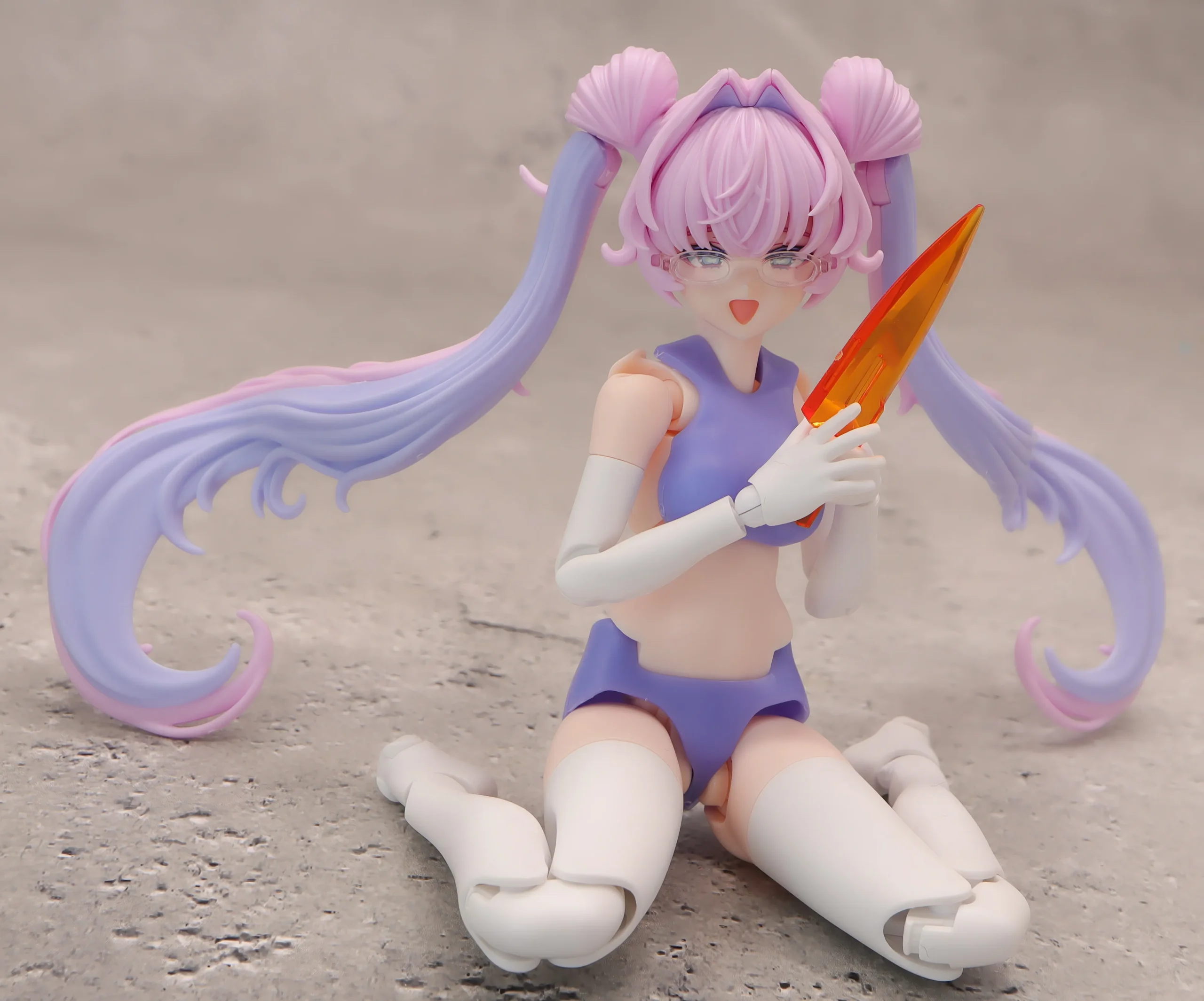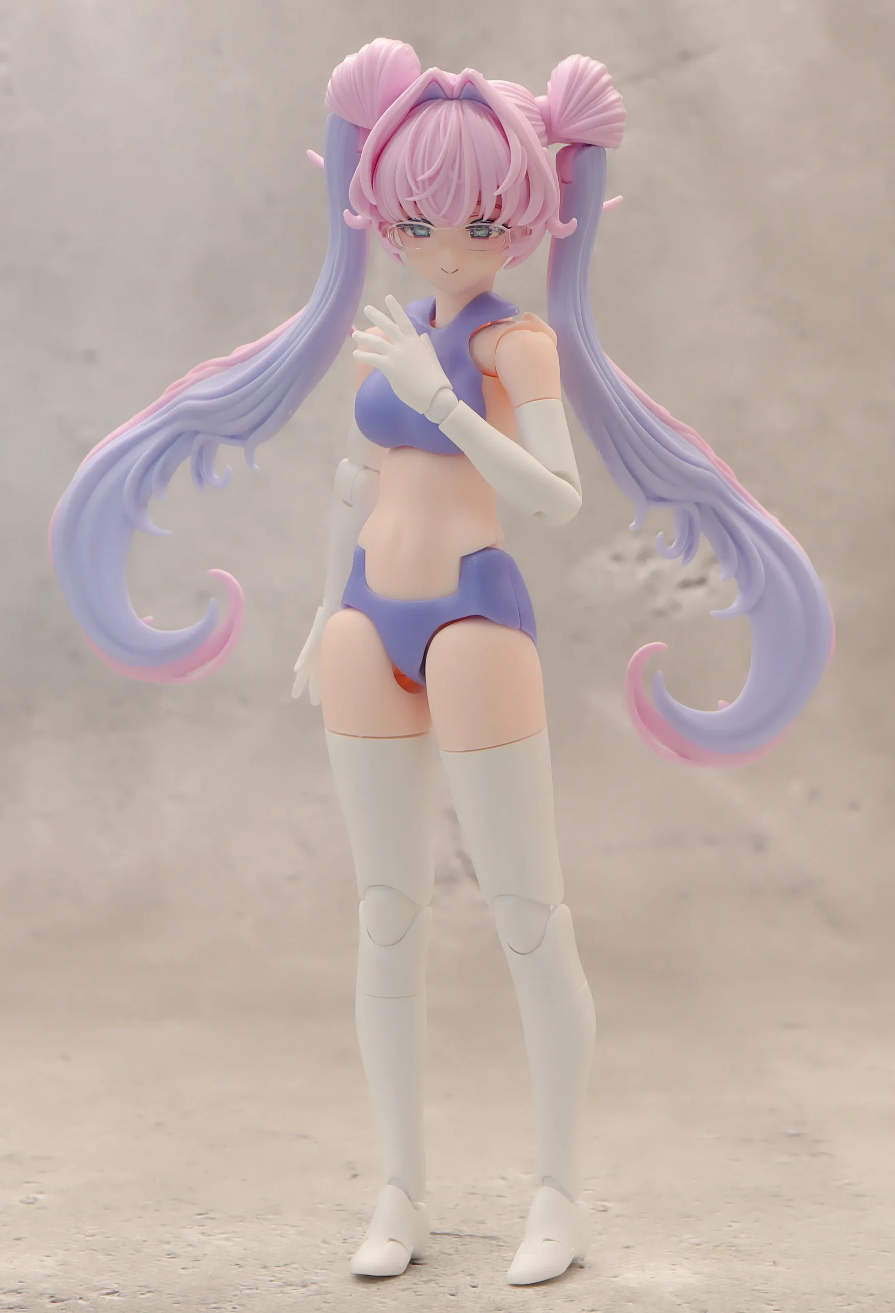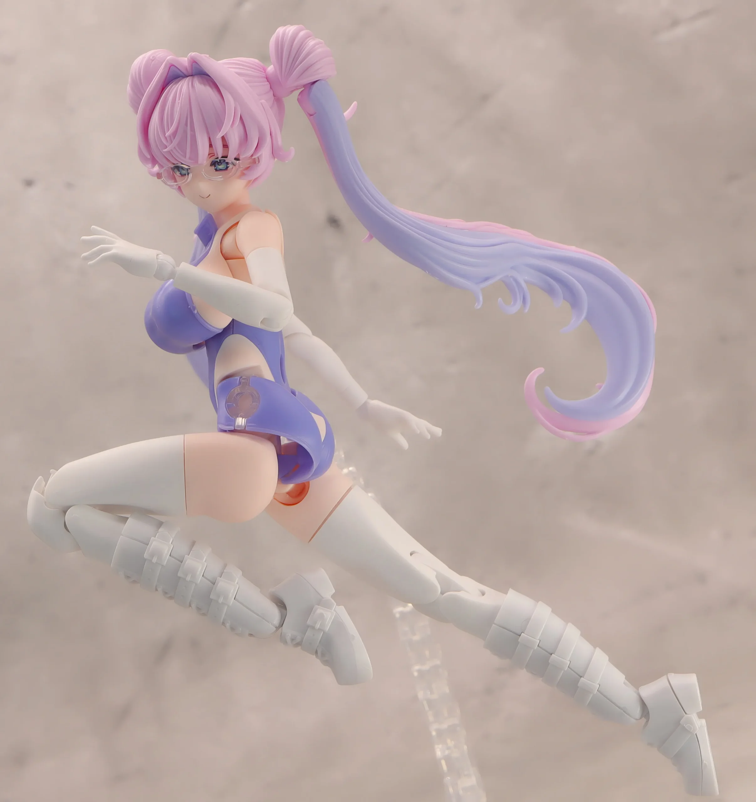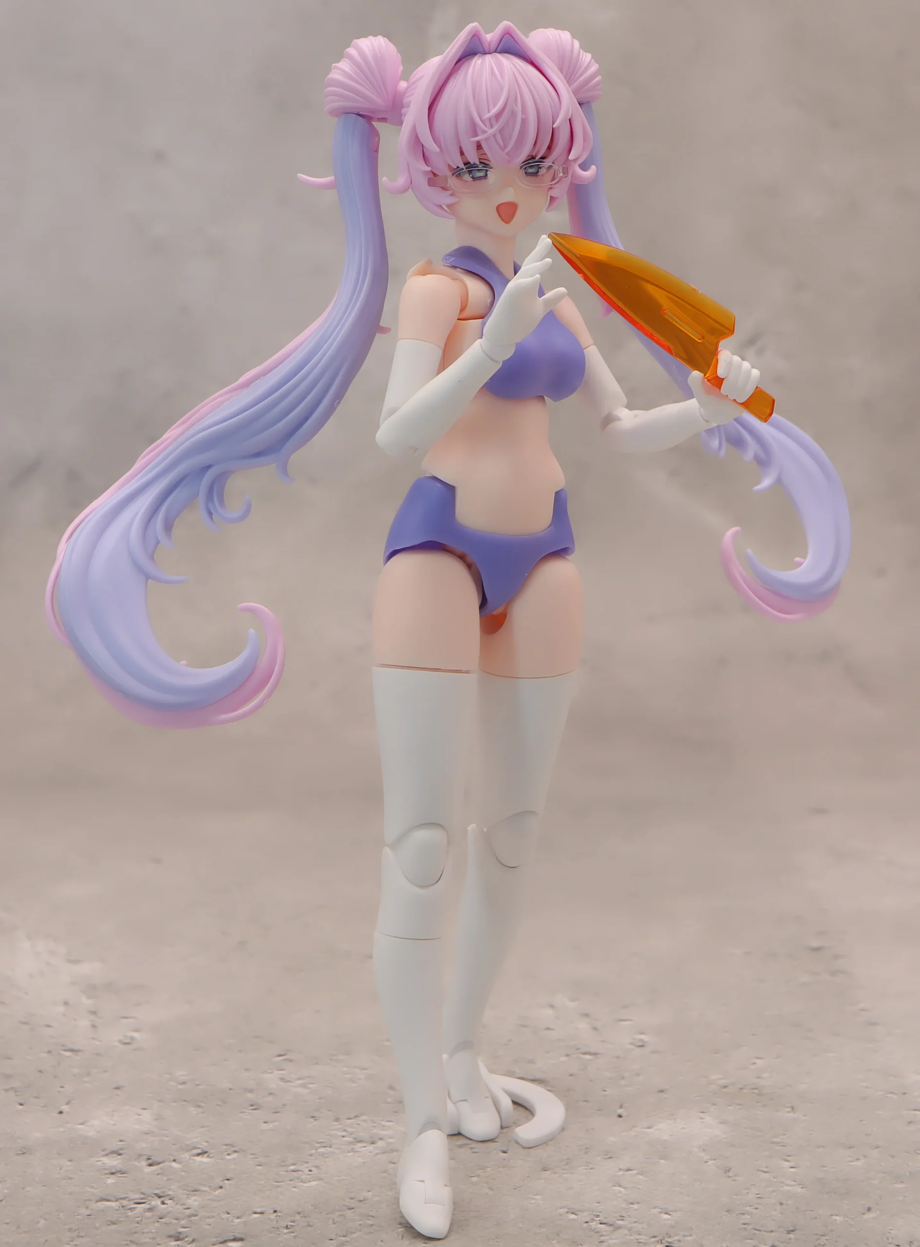 ツインテールの髪型だと背中のウイングユニットに髪の毛が干渉するので、リング編みのパーツの方がアクションの幅は大きい気がしますね