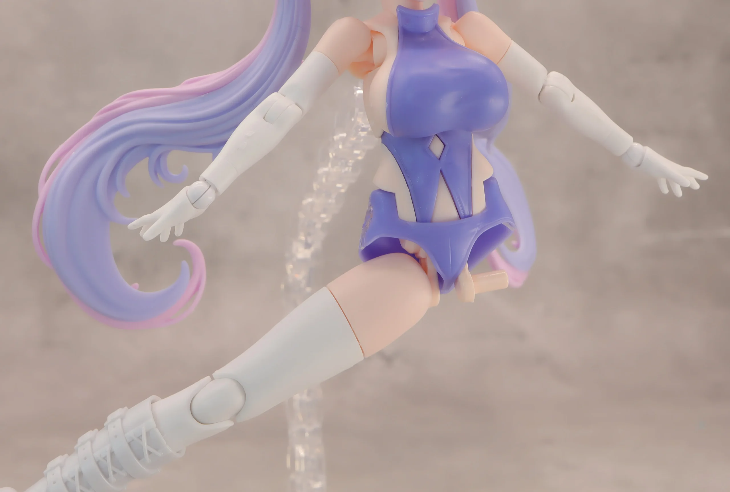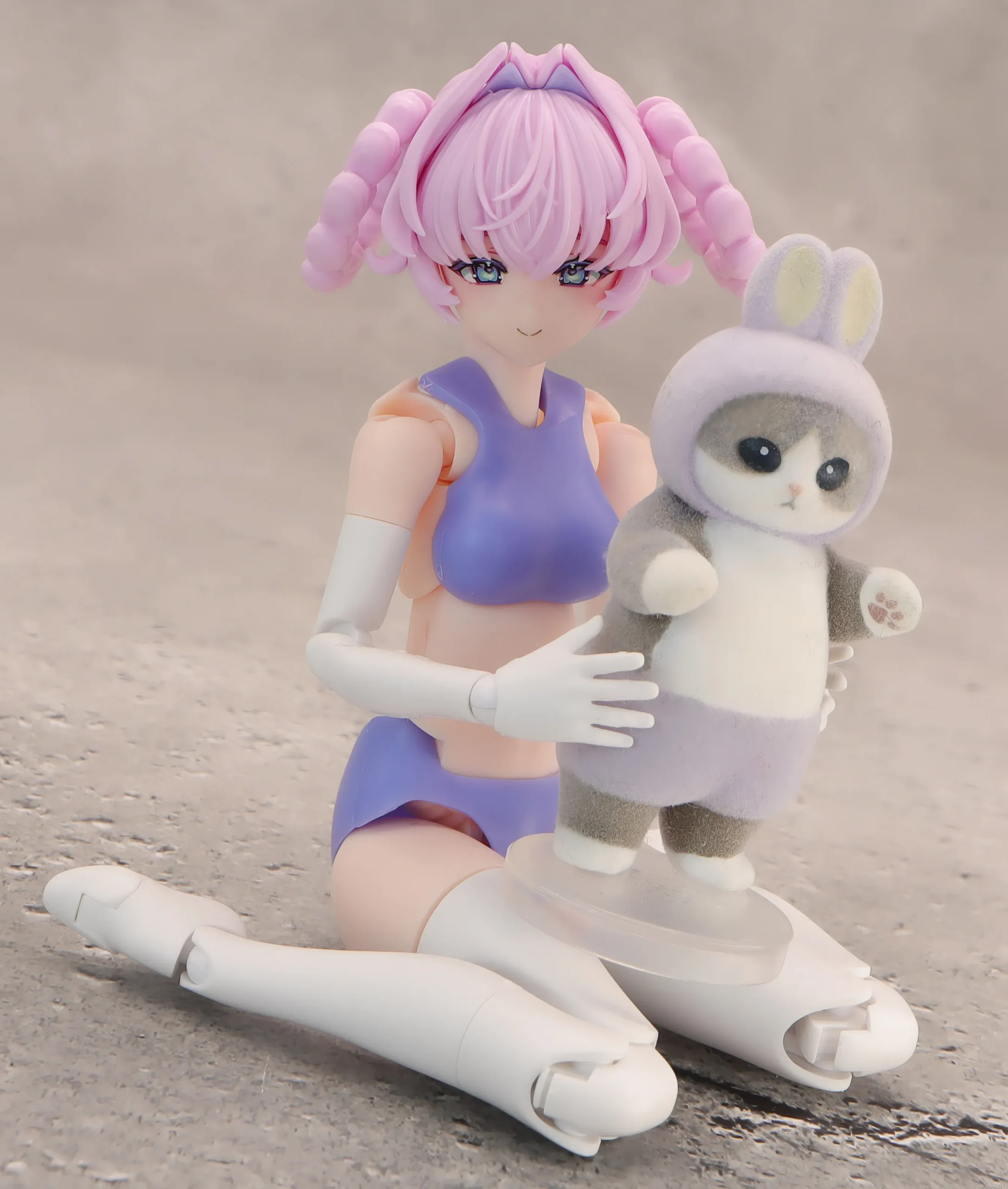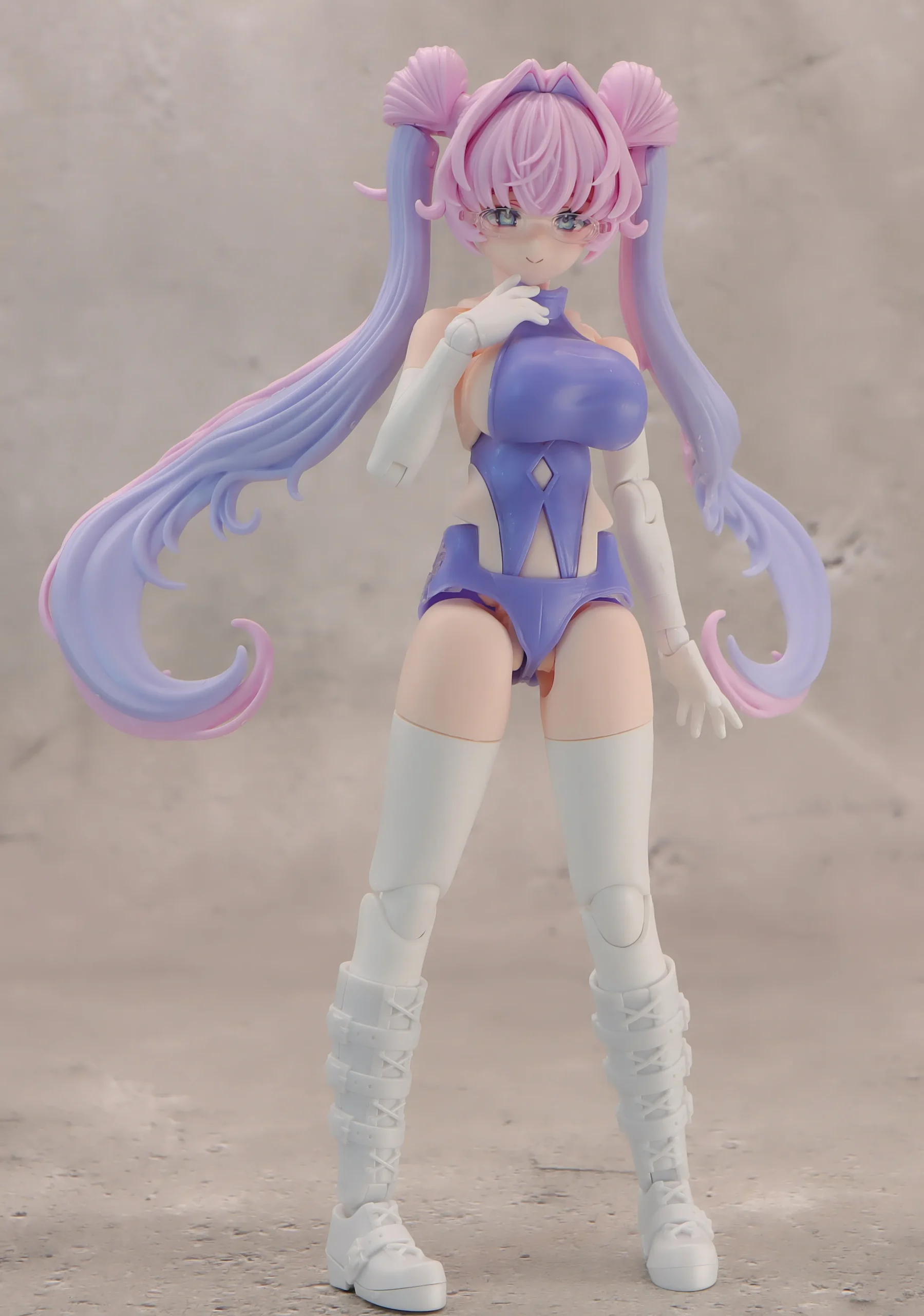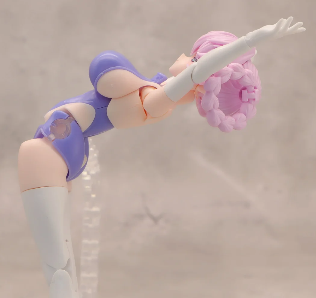 ツインテールの髪型だと背中のウイングユニットに髪の毛が干渉するので、リング編みのパーツの方がアクションの幅は大きい気がしますね