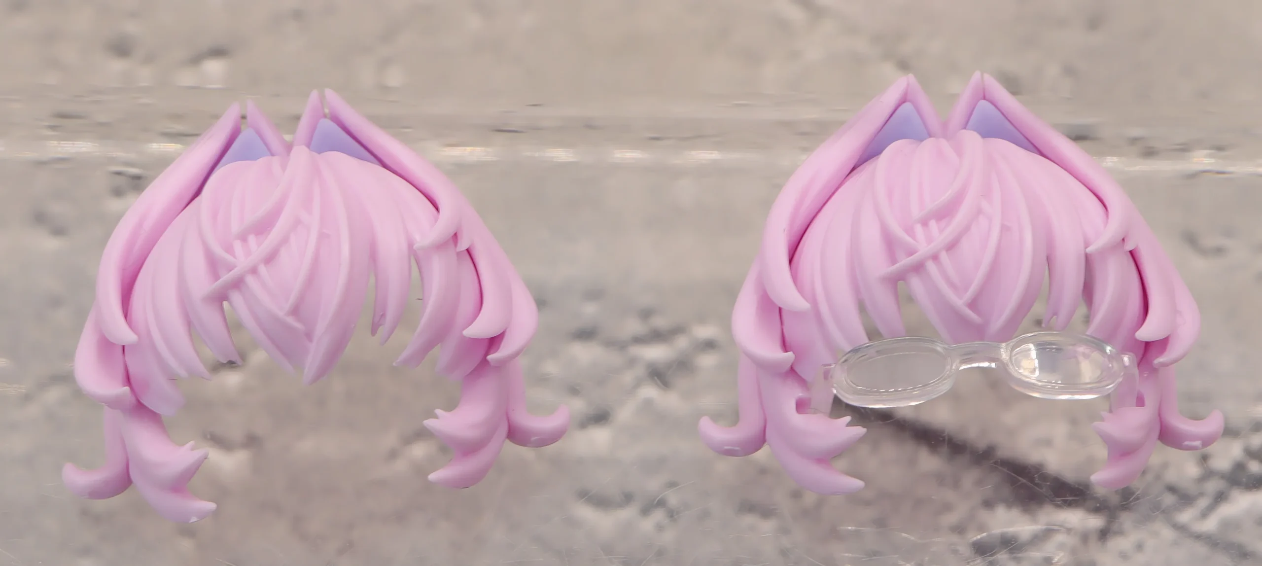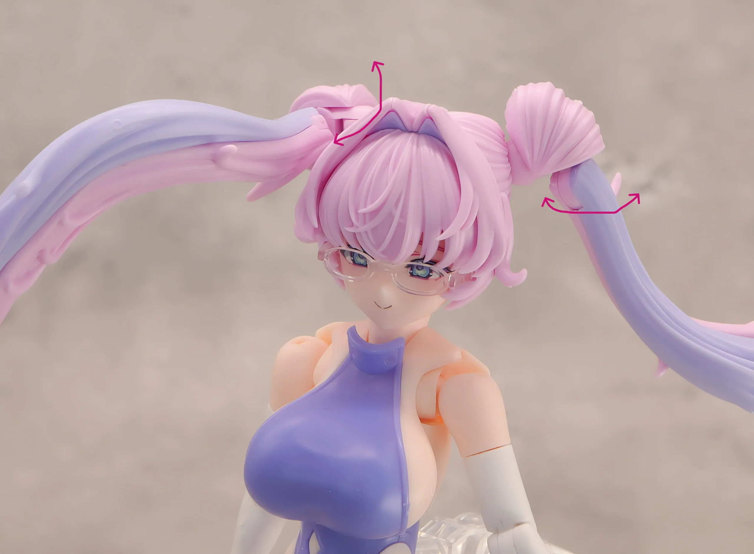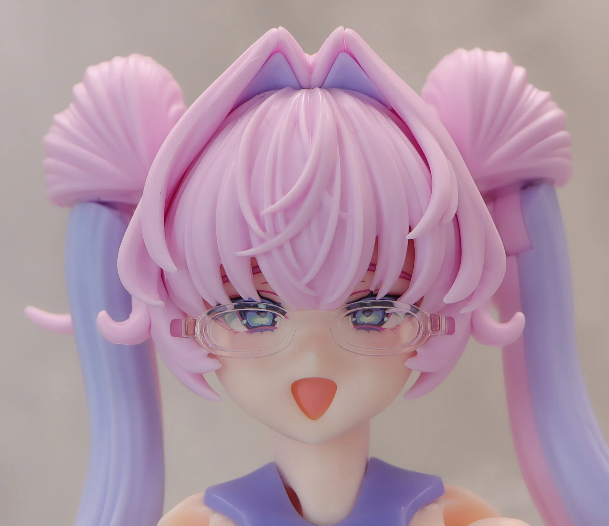 髪型パーツ上記のリング編み以外にも眼鏡のアリ/ナシが再現できる前髪パーツも付属、お好みで眼鏡なしの状態も再現できます。