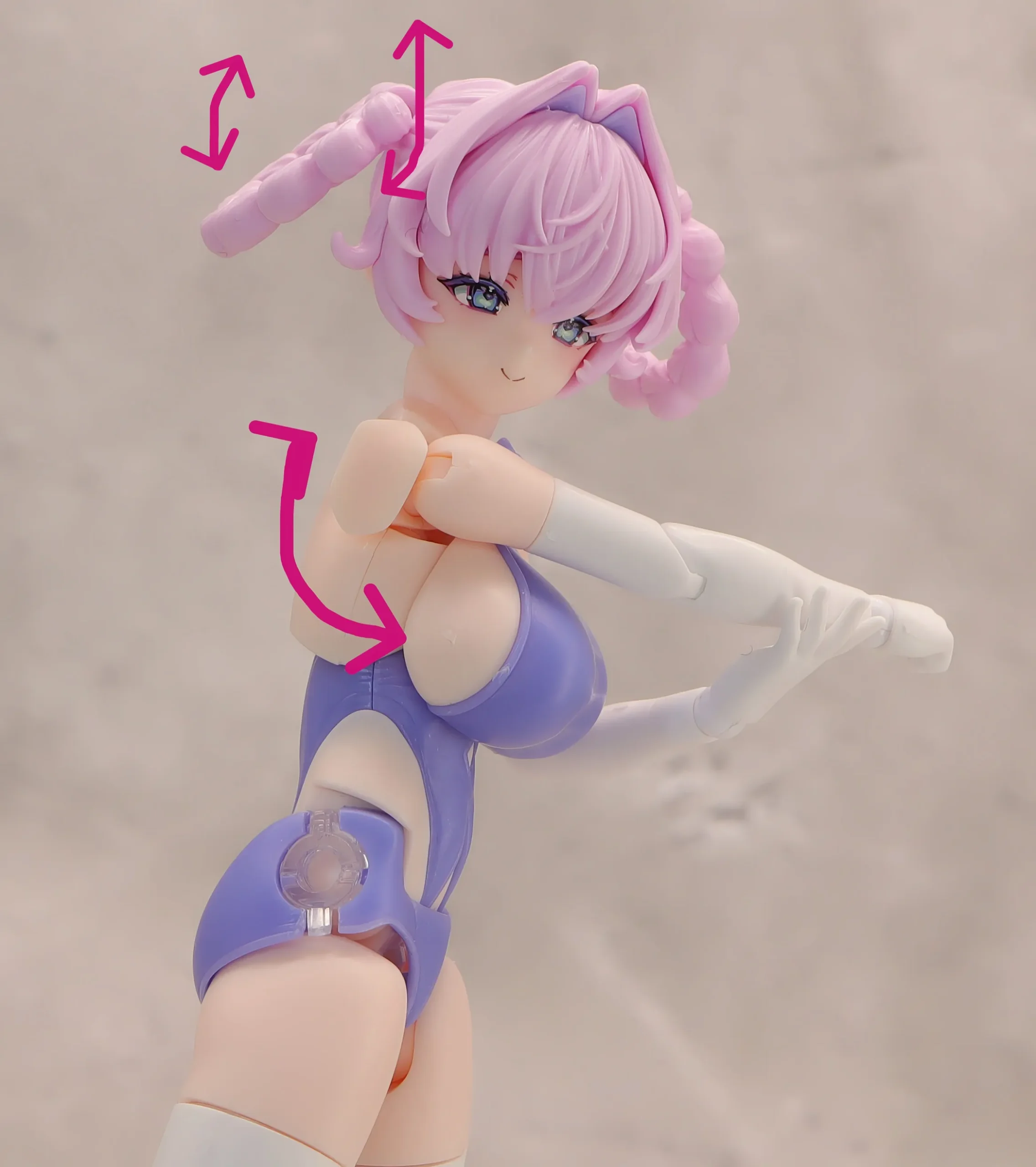足も左右独立可動ジョイントで、股上パーツを↑方向にずらせば思い切り開脚する事が