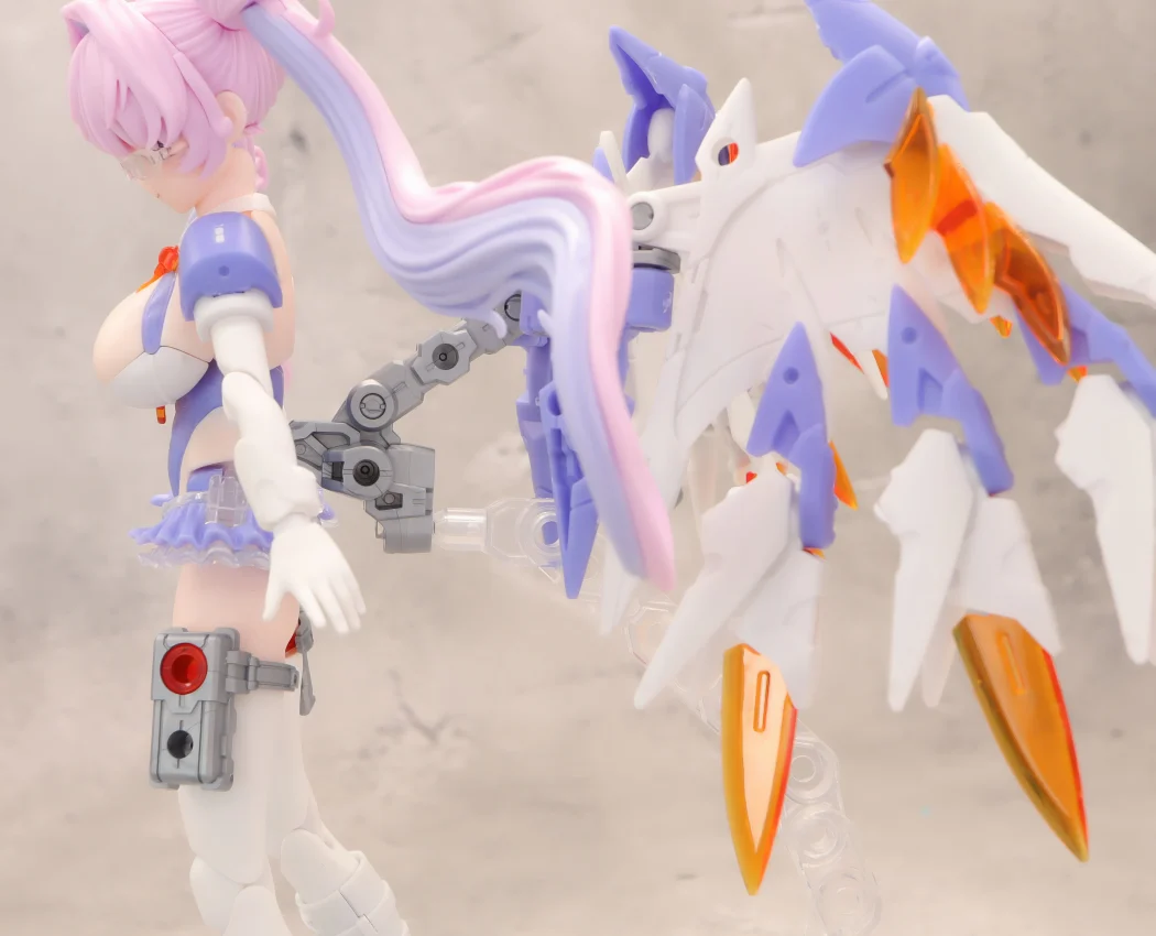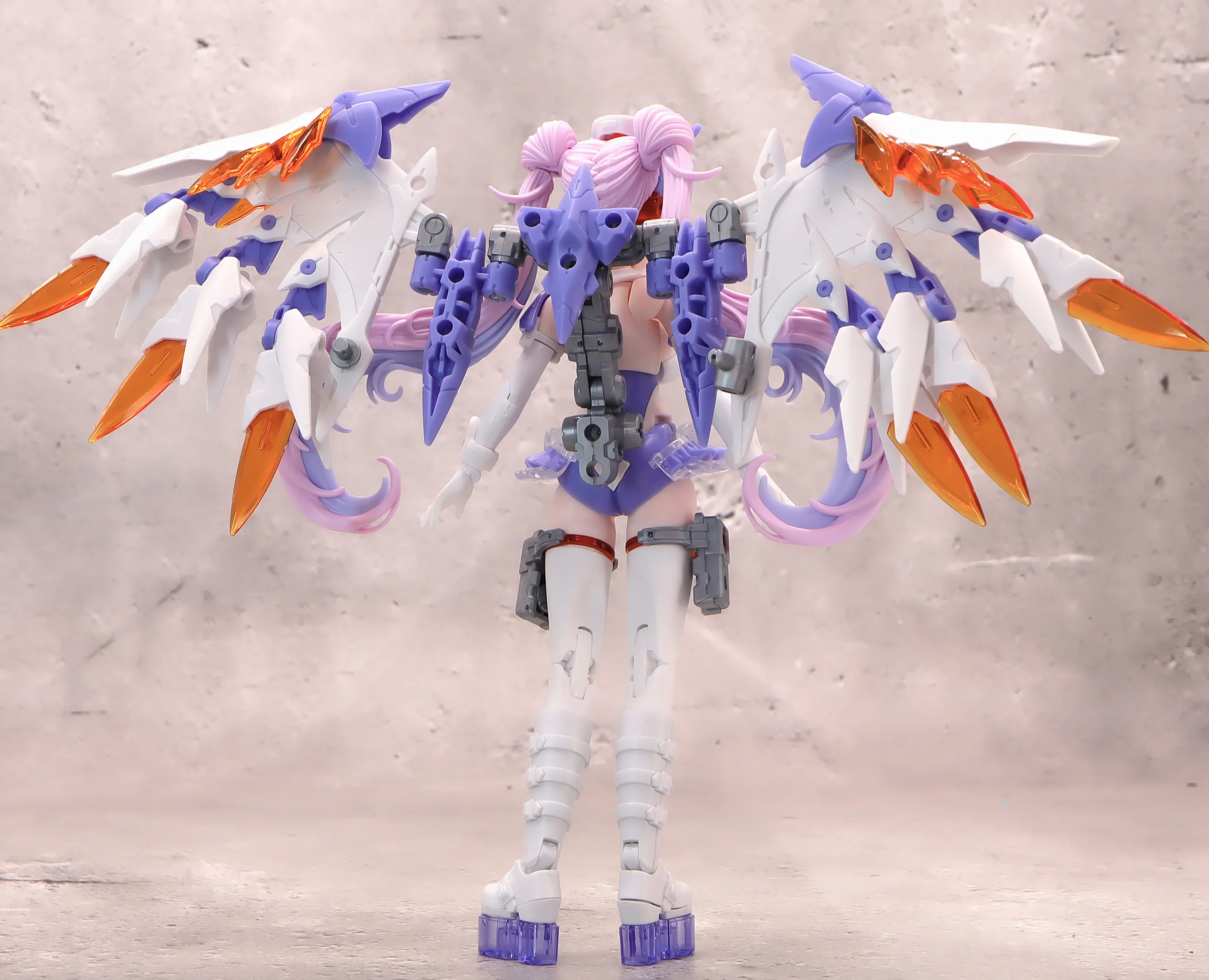 ジョイントパーツの位置を変えれば腰の方にウイングを持ってくることも出来るので、ツインテール状態で飾りたいのであれば、こちらの方がストレスフリーでポージングが出来るかもしれません。