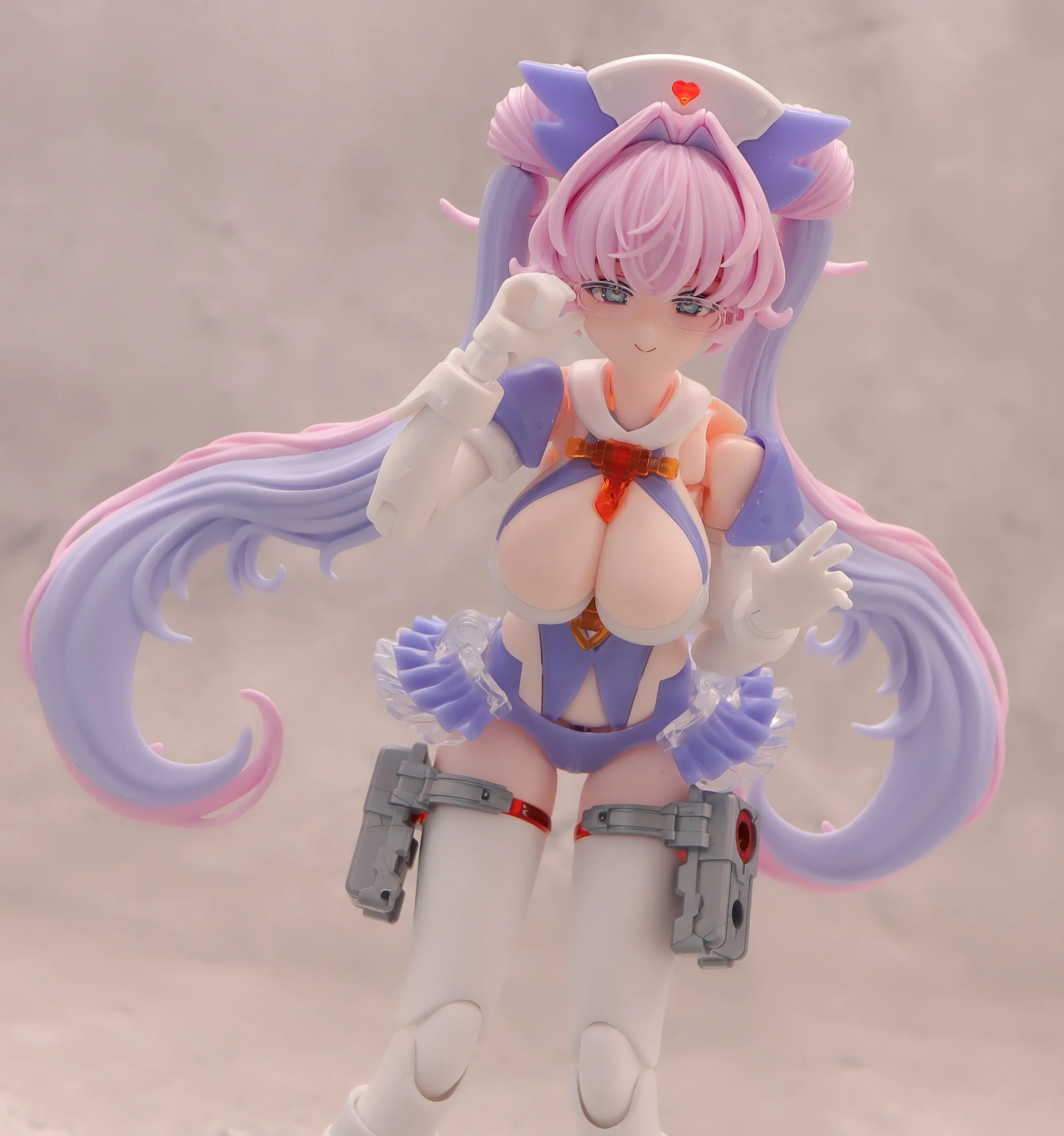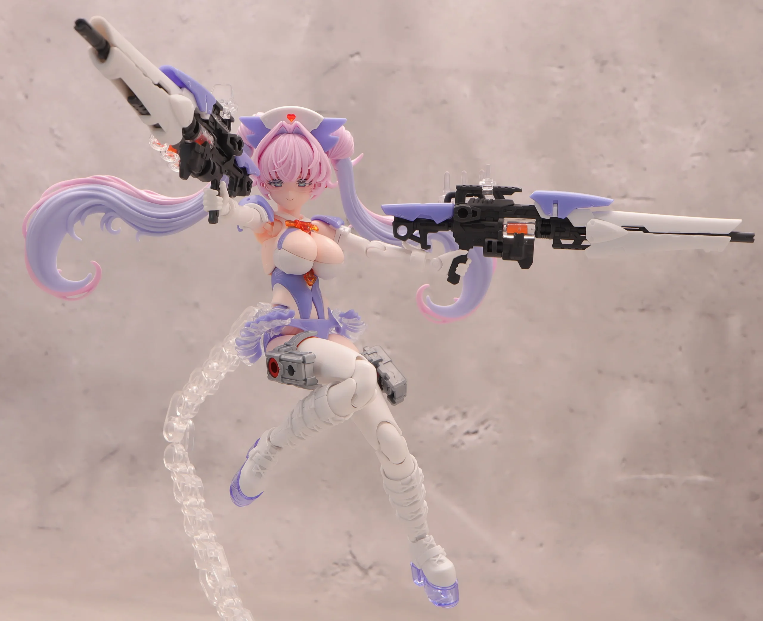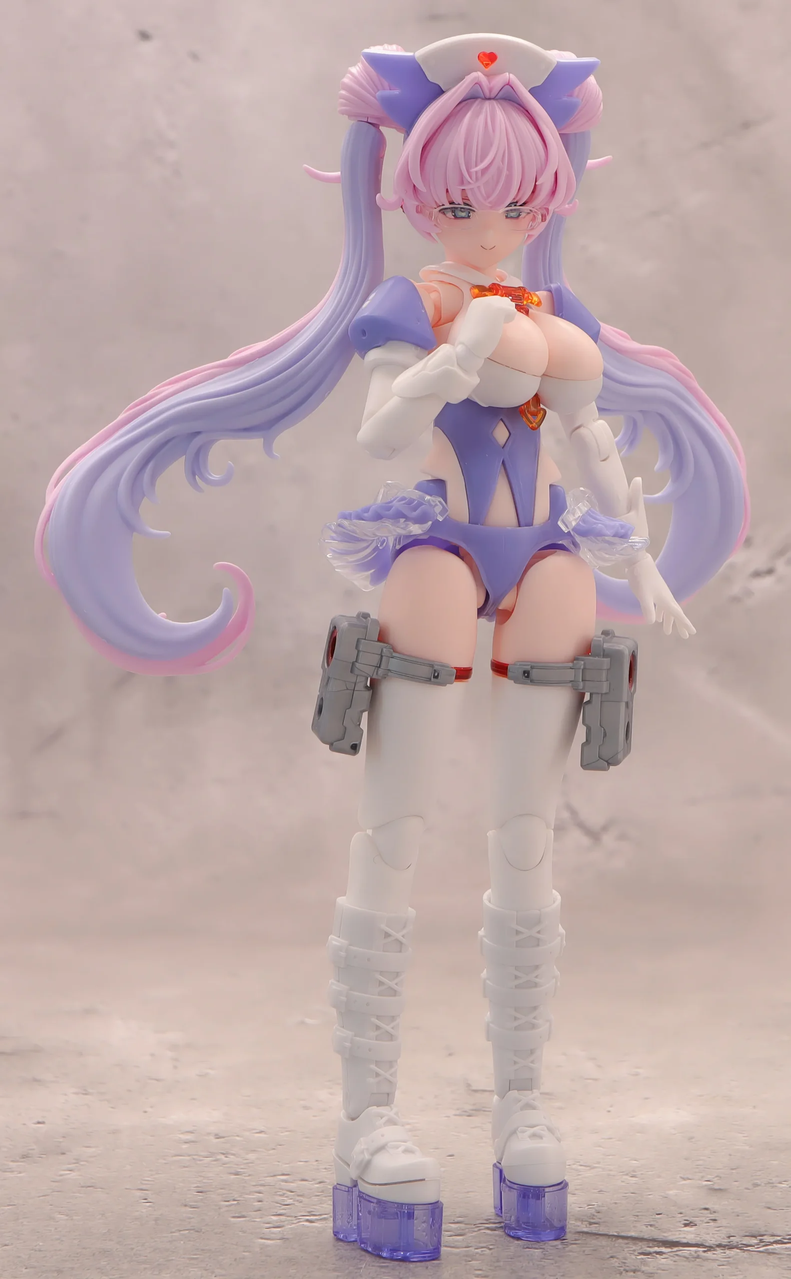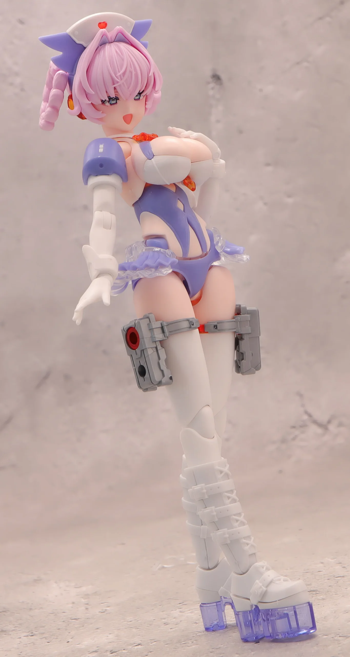 頭のナースキャップのようなヘッドギアや肩アーマーが付いて、ナースのようなシルエットになりました。