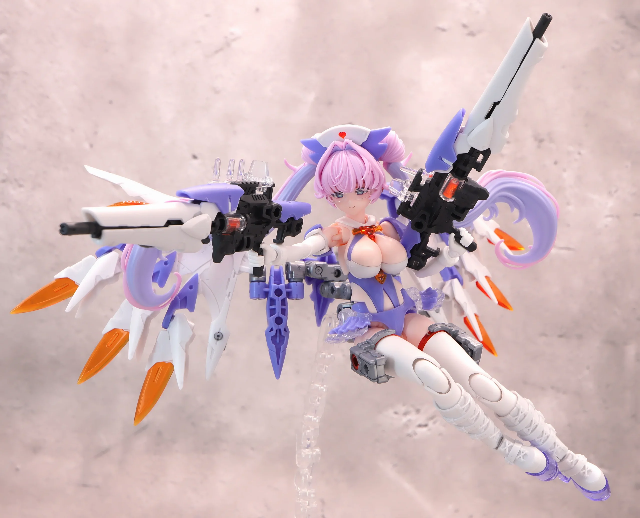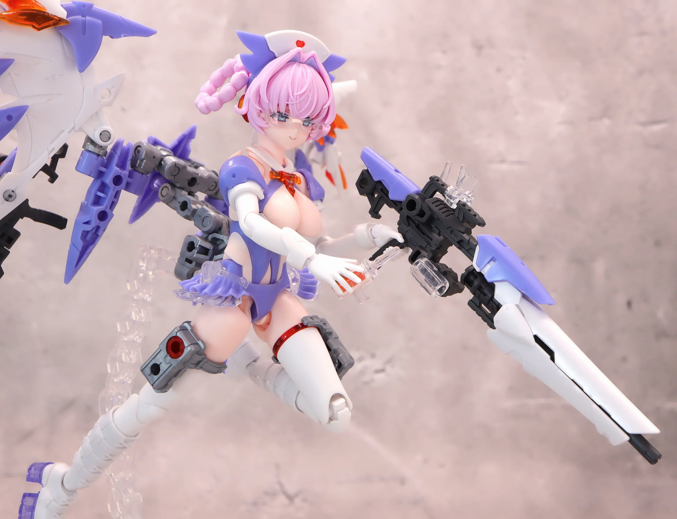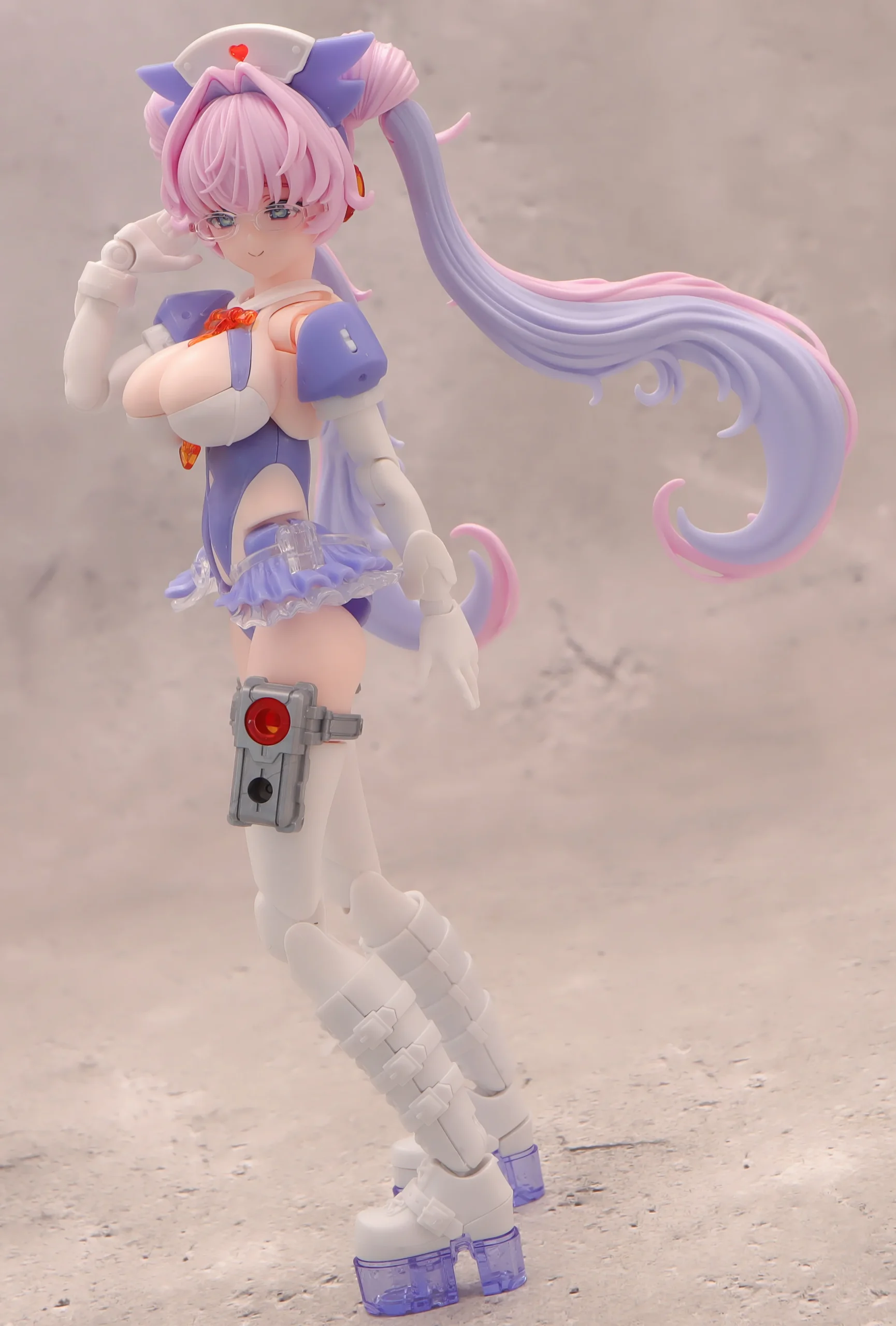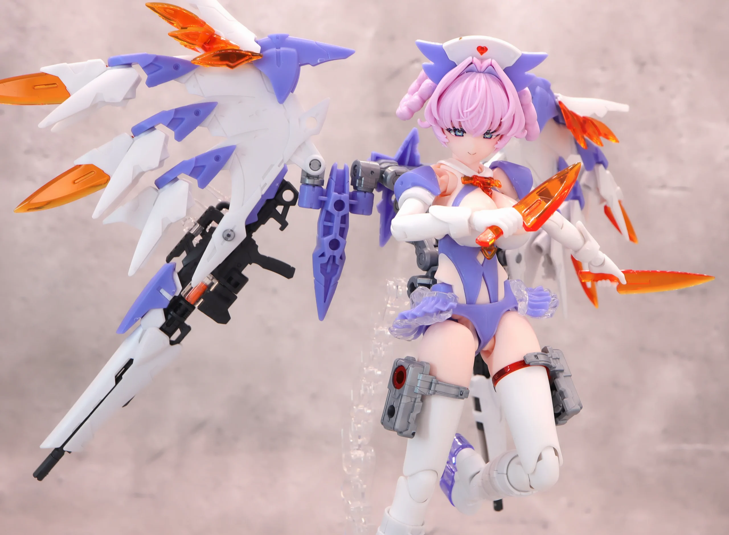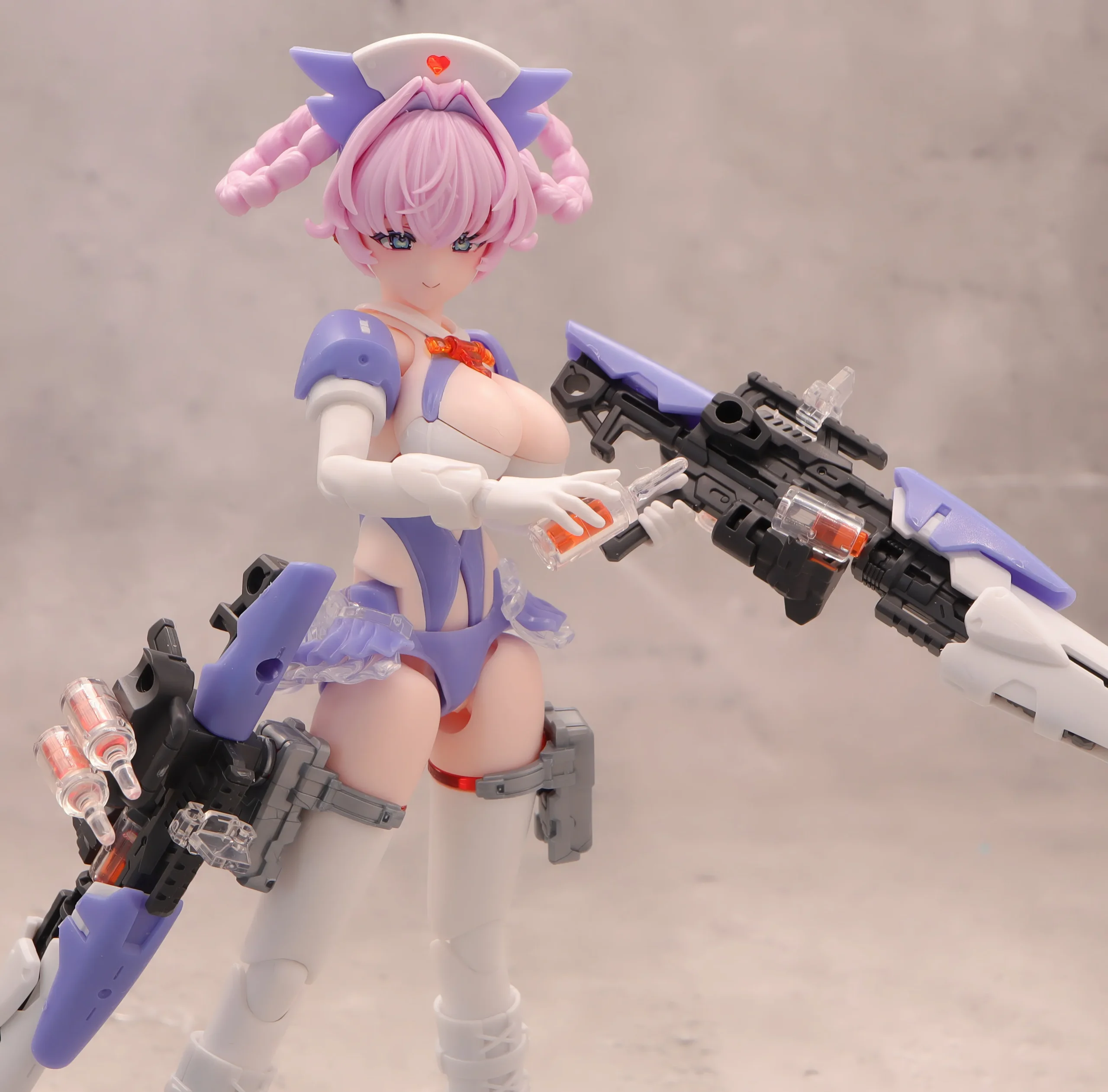 頭のナースキャップのようなヘッドギアや肩アーマーが付いて、ナースのようなシルエットになりました。