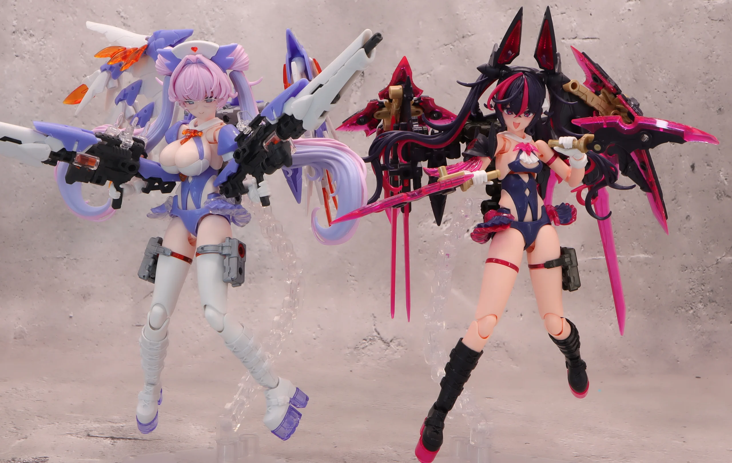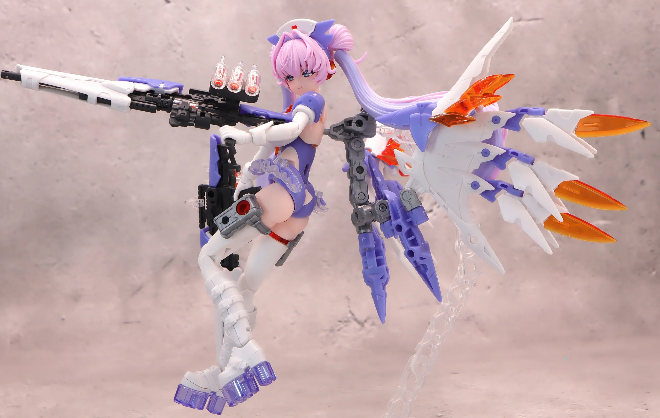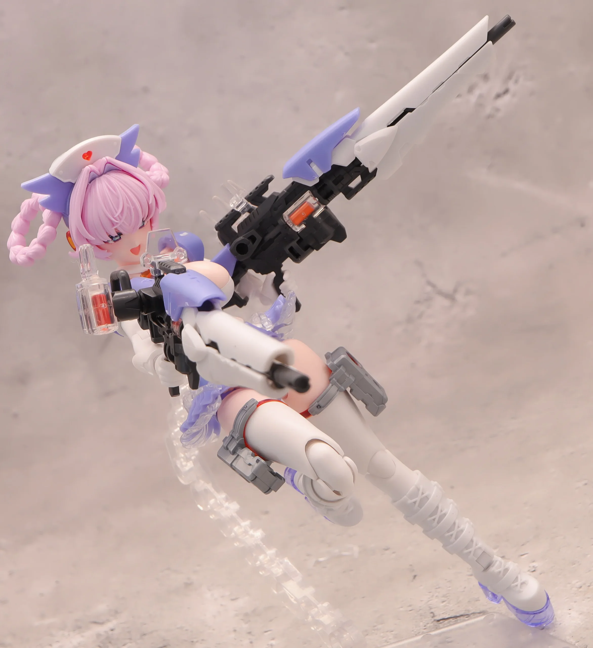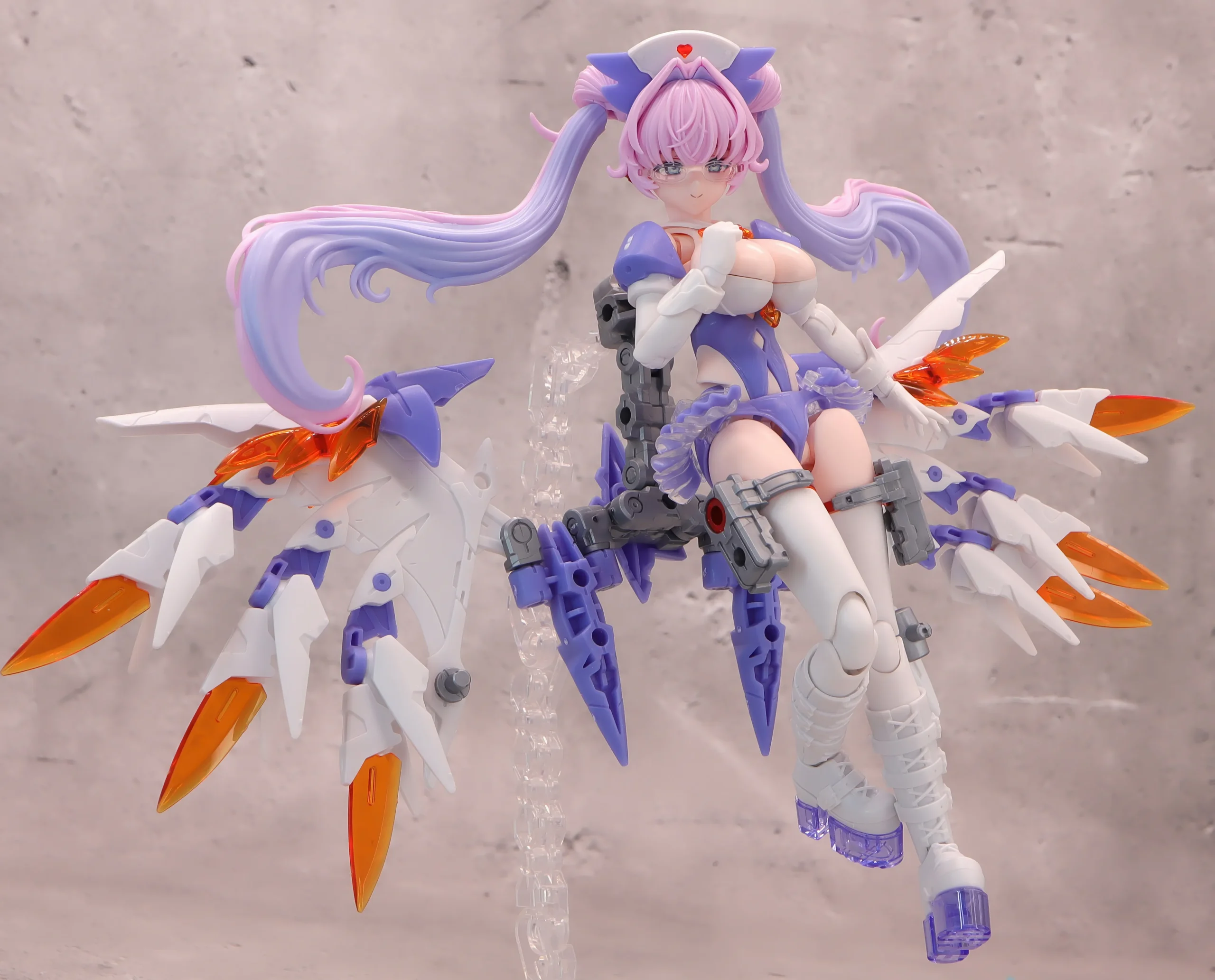 頭のナースキャップのようなヘッドギアや肩アーマーが付いて、ナースのようなシルエットになりました。