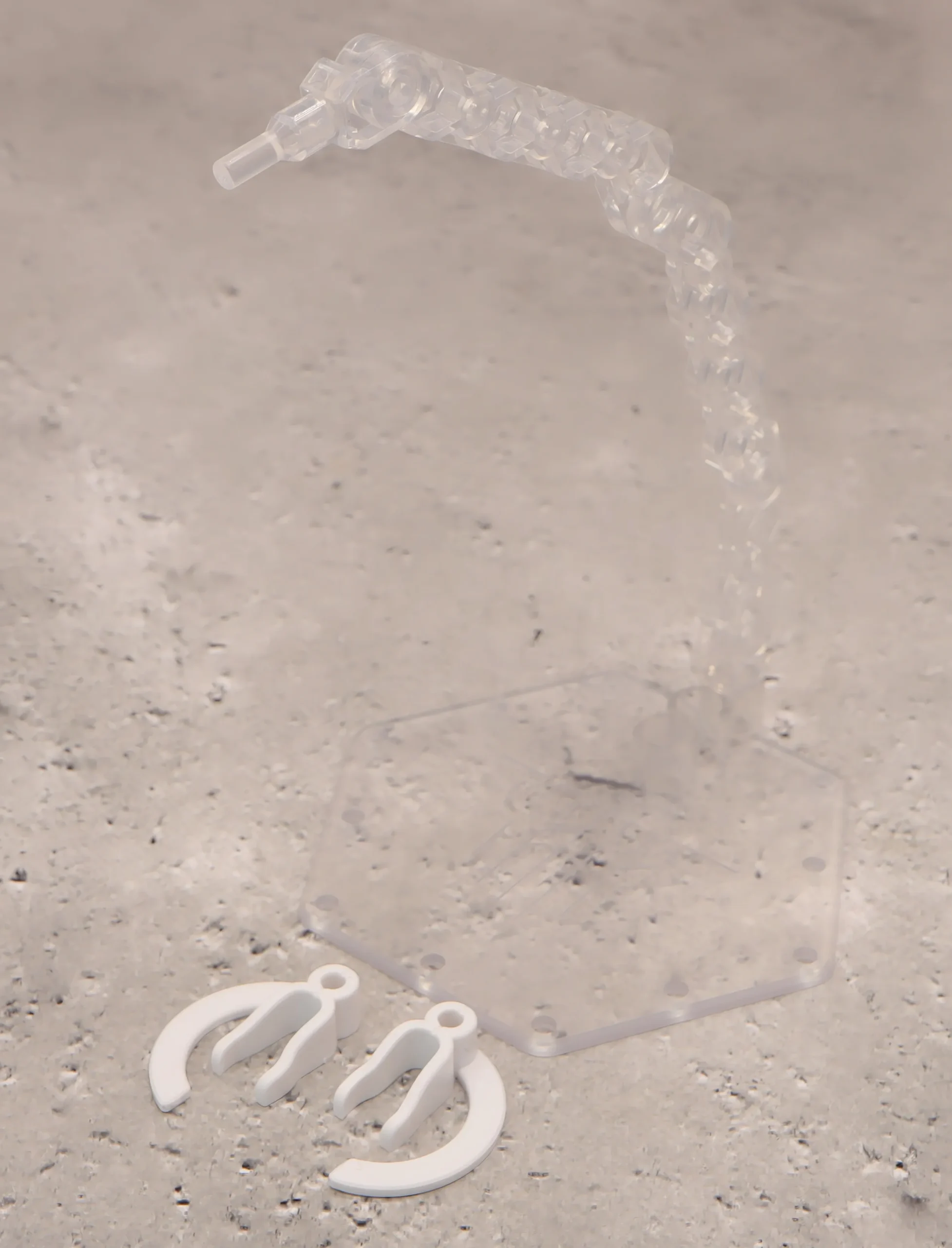 透明のデイスプレイスタンドと足にはめるタイプのディスプレイベースが付属しています。