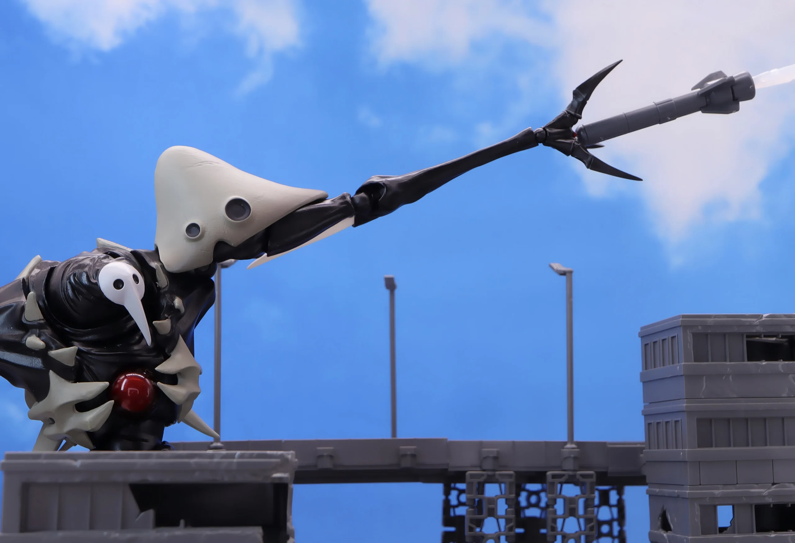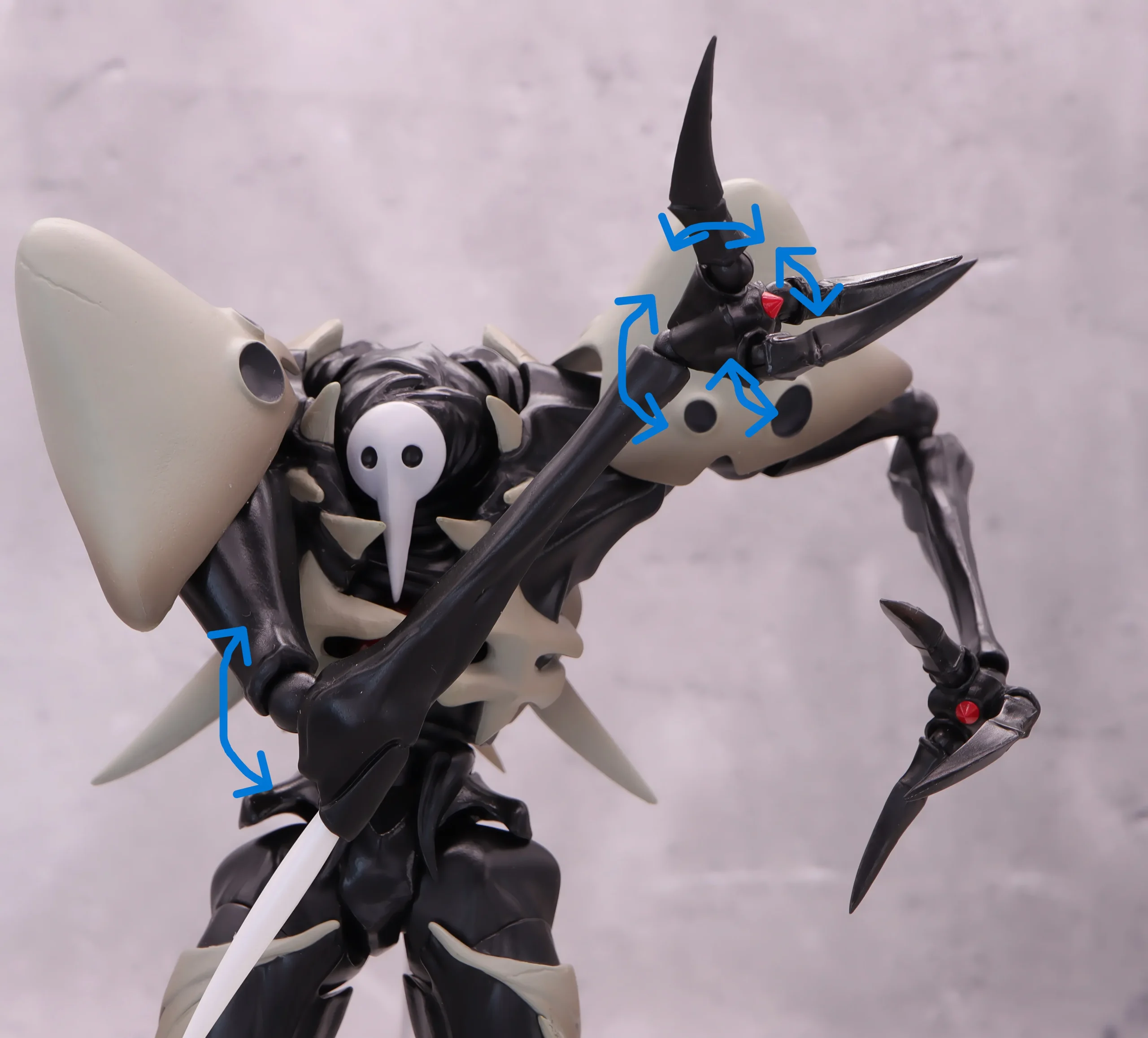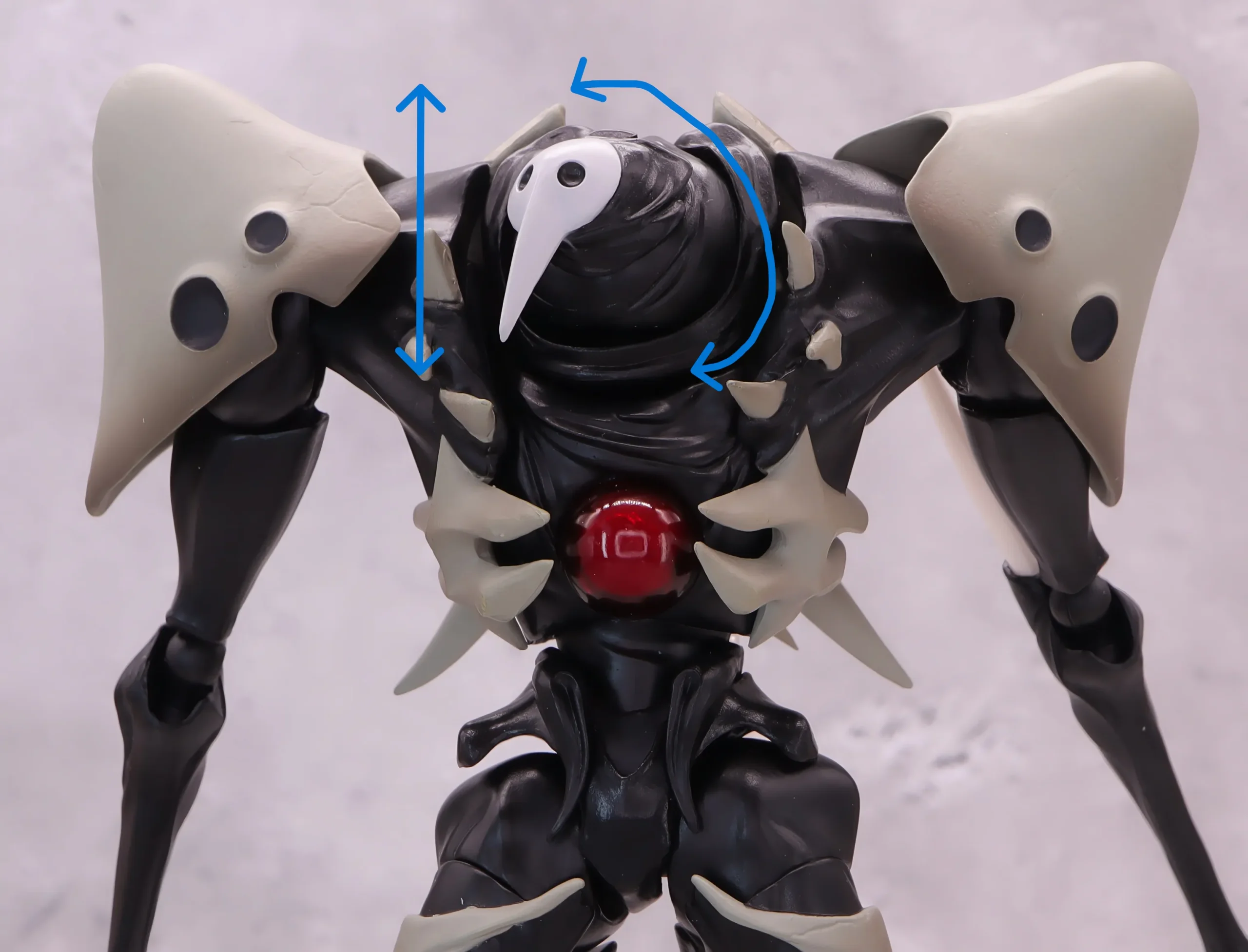 腕が長いので、槍部分も含めるとかなりの長さに、上手く画面内に全身像を収めて写真を撮るのが難しいです💦