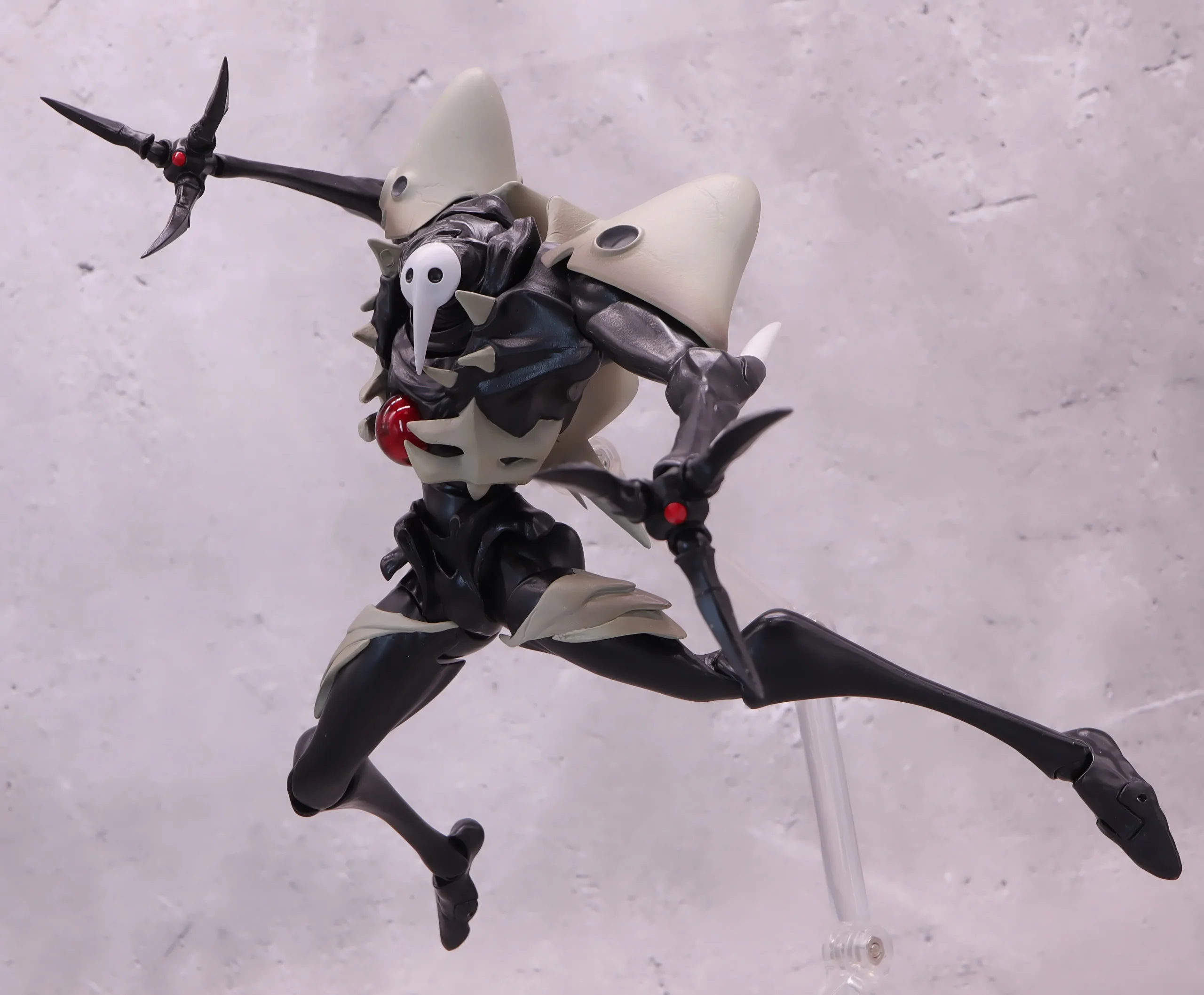 全身がラバースーツを着たようなスリムな体型に手足の長いシルエットが異形生物感を感じさせます、デザイナーはSF漫画でお馴染みの”あさりよしとお”氏なのでエイリアンが元ネタなのかもしれません。