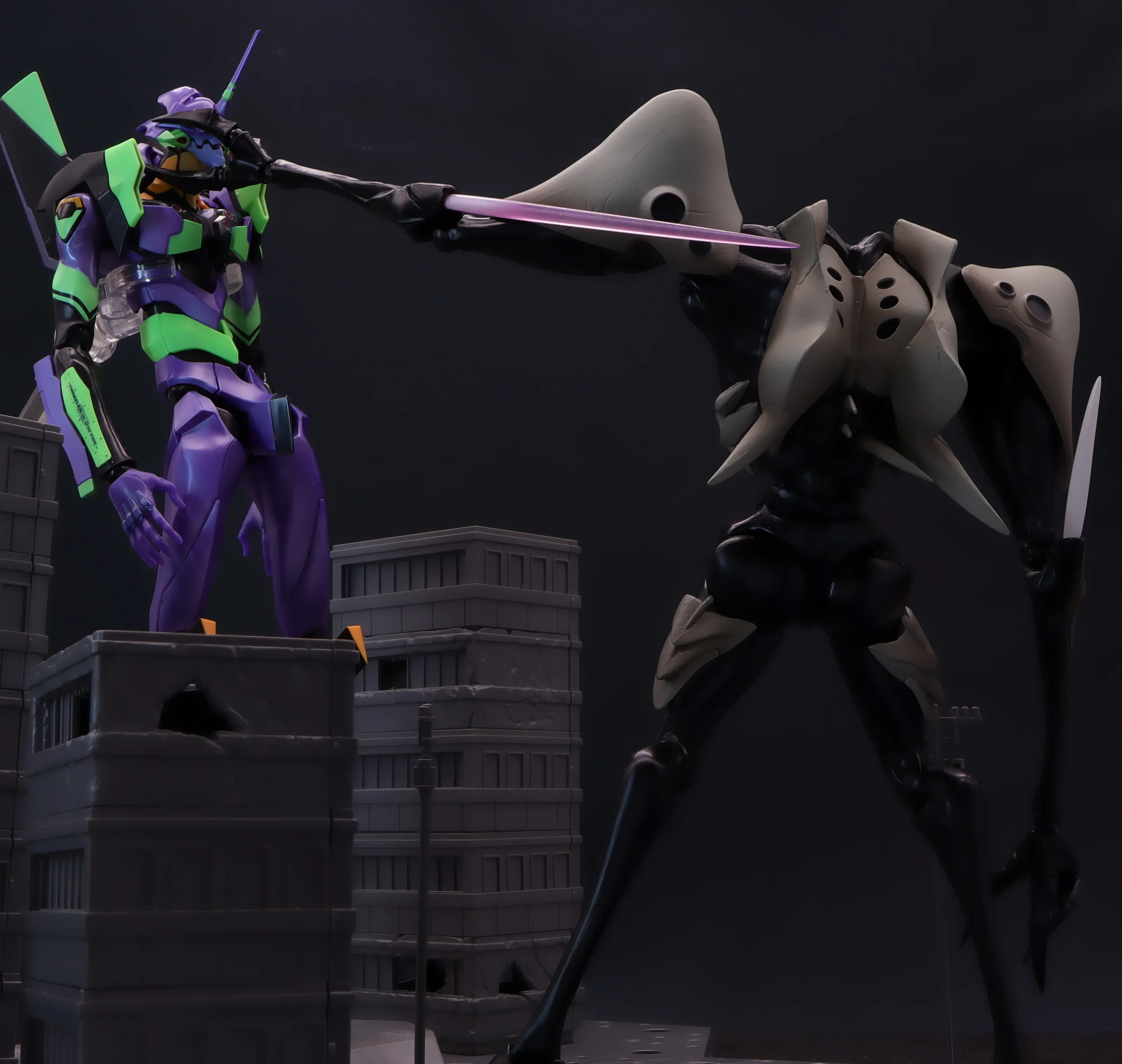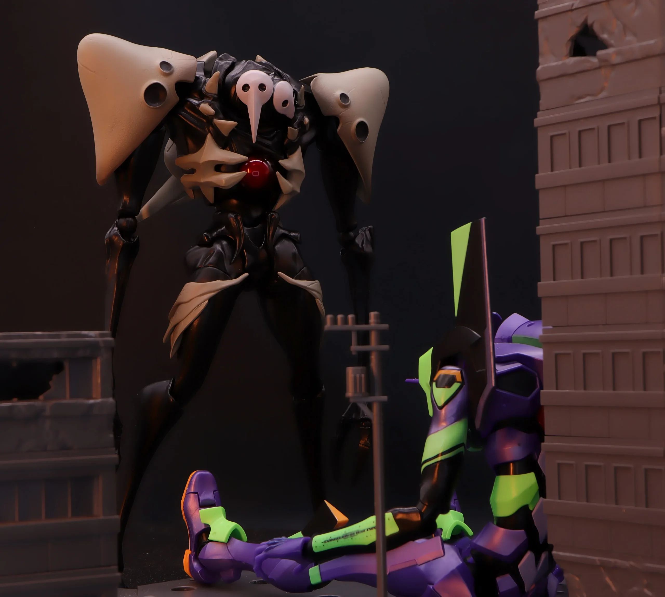 このシーンもそうですが、この使徒って細い腕がムキムキの太い腕になる描写がちょくちょくあるんですよね、結構印象に残ってるんですけど、今まで出た立体物では再現されていない記憶。