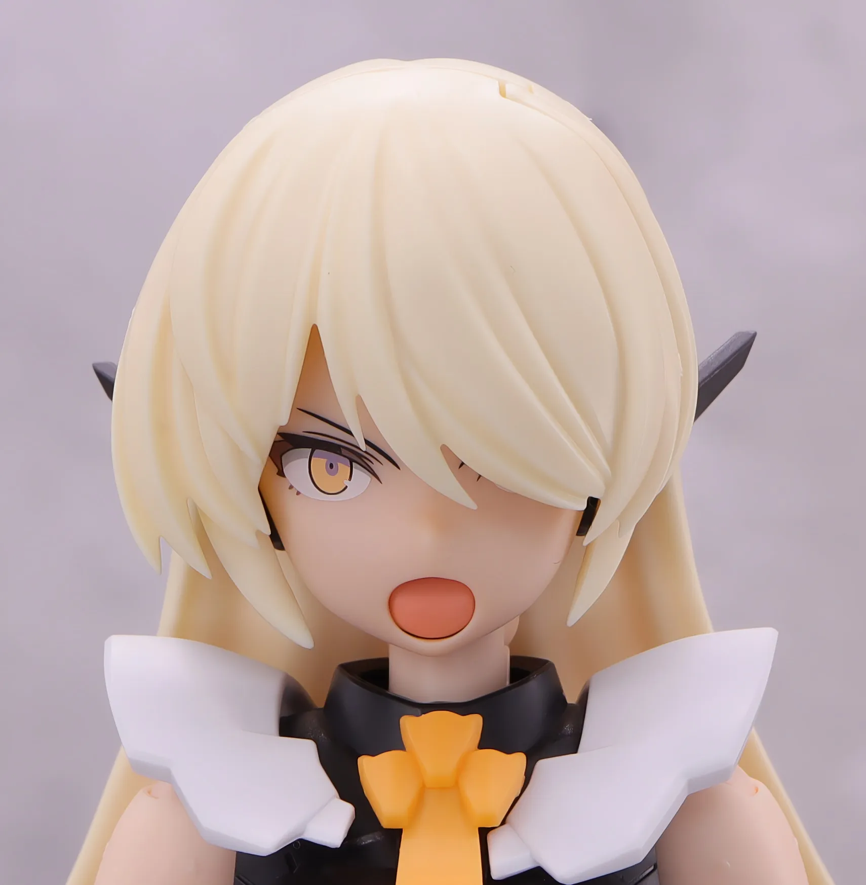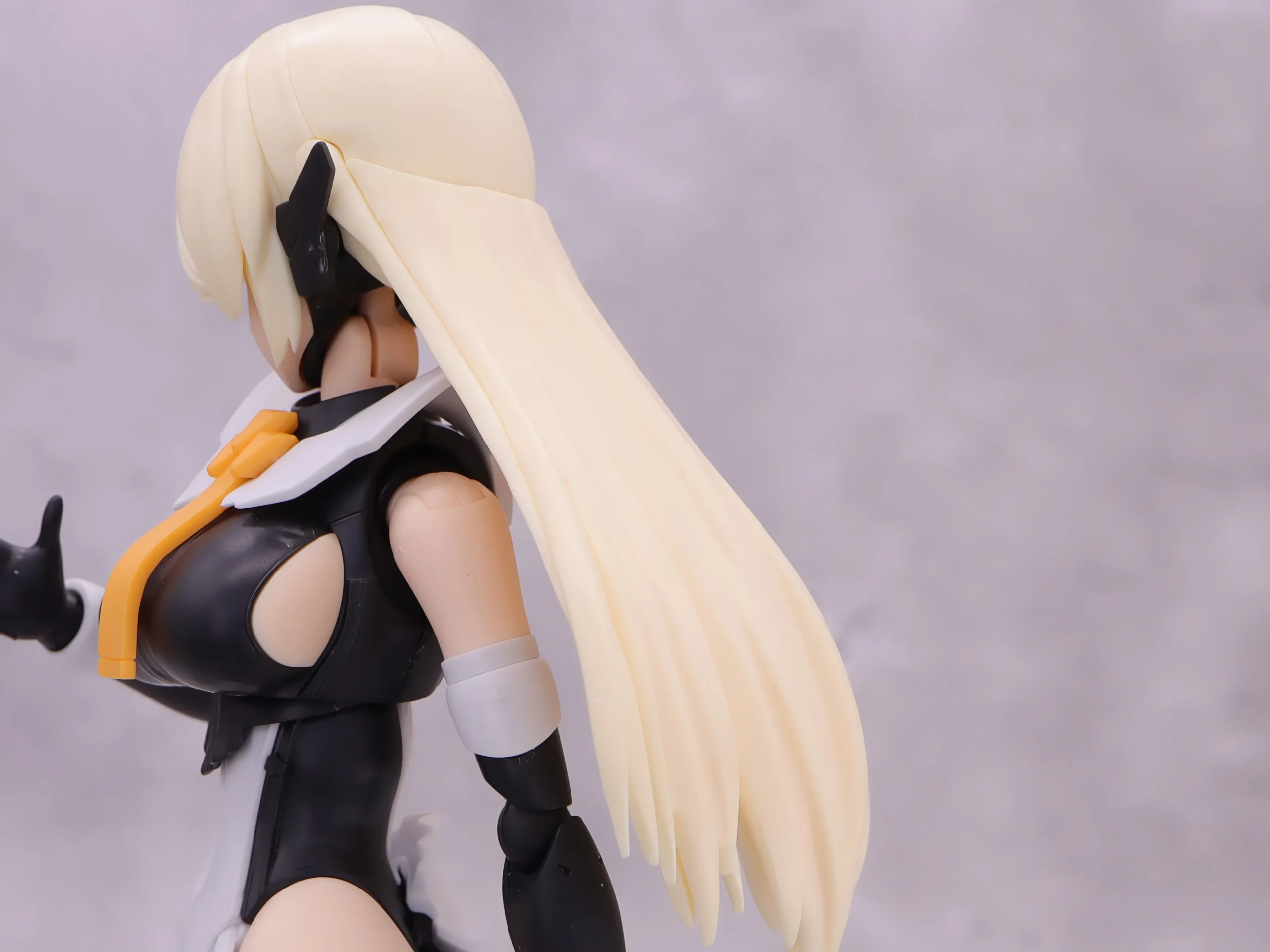髪の毛は大まかに根元で上下に可動、ロングヘアのキャラなのでアクションをする際はこのギミックを結構使います。