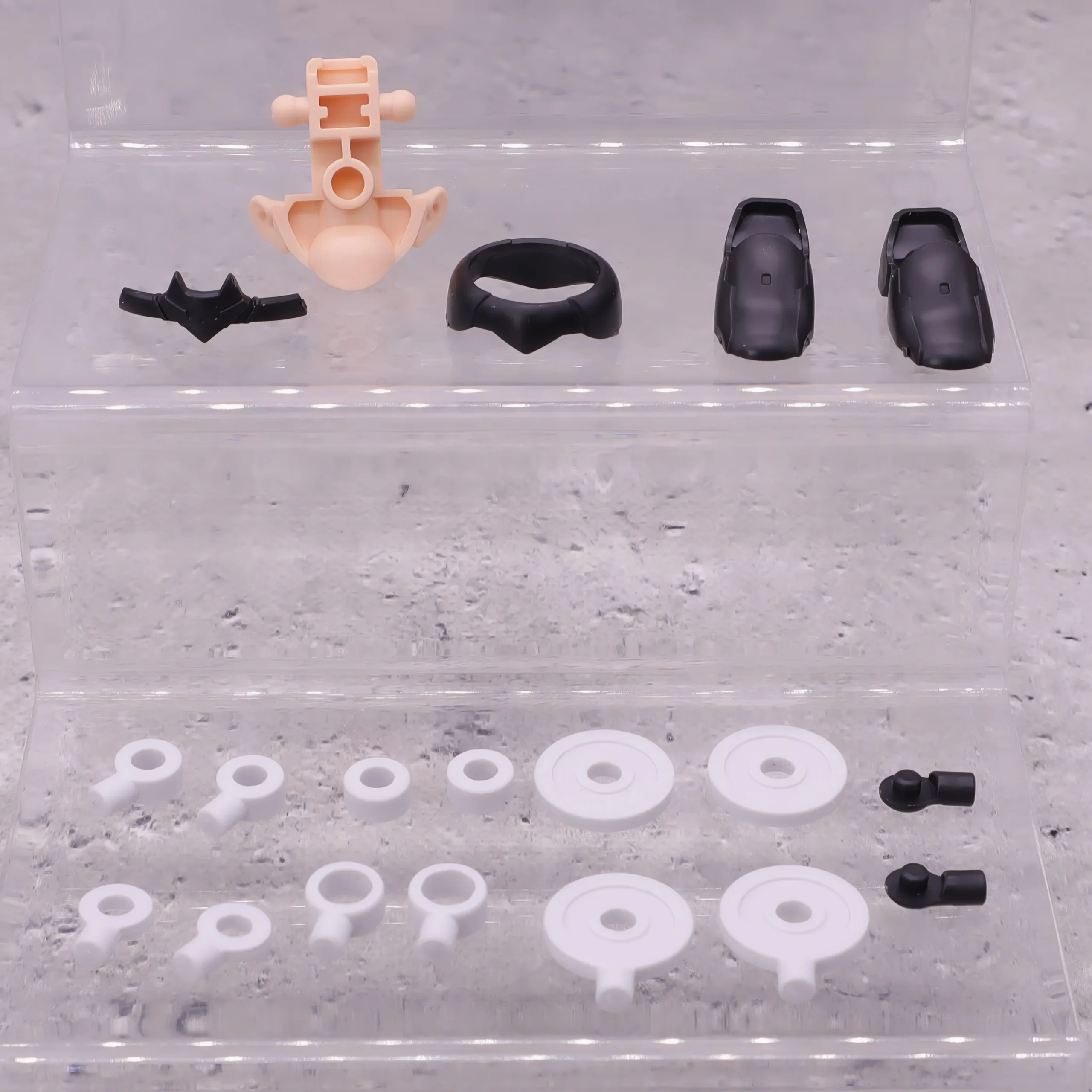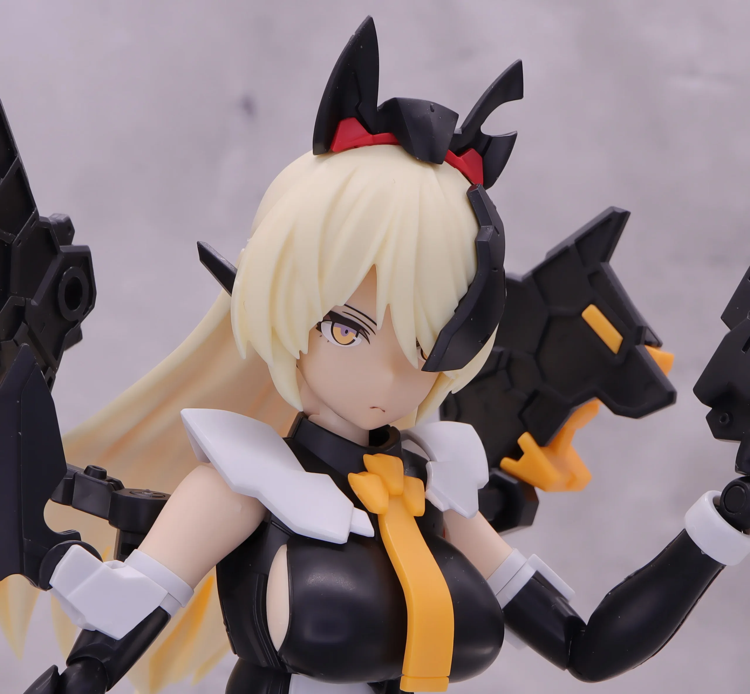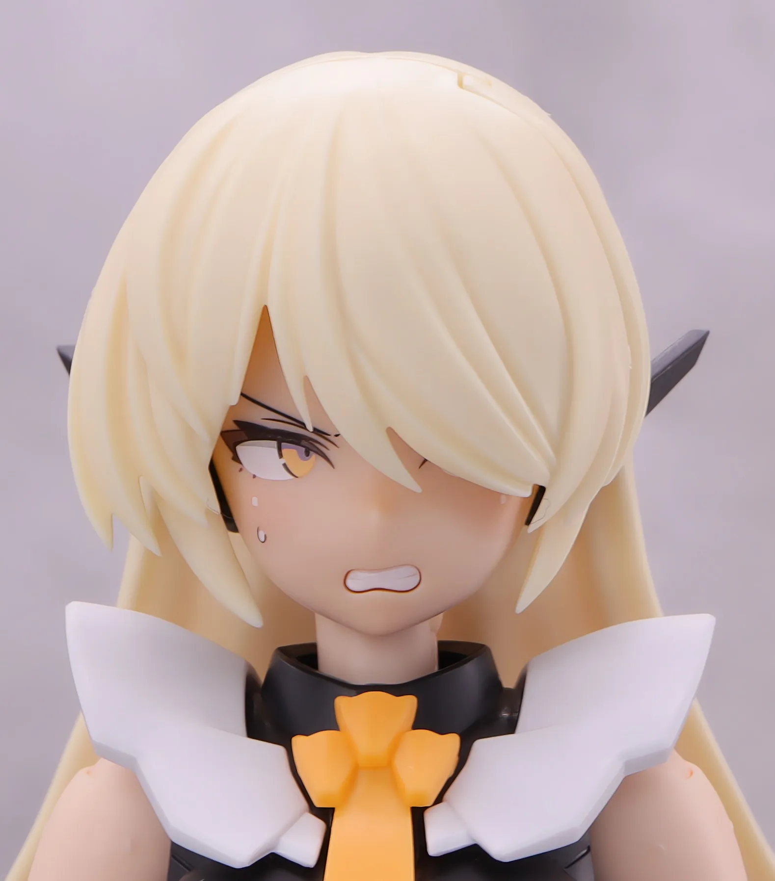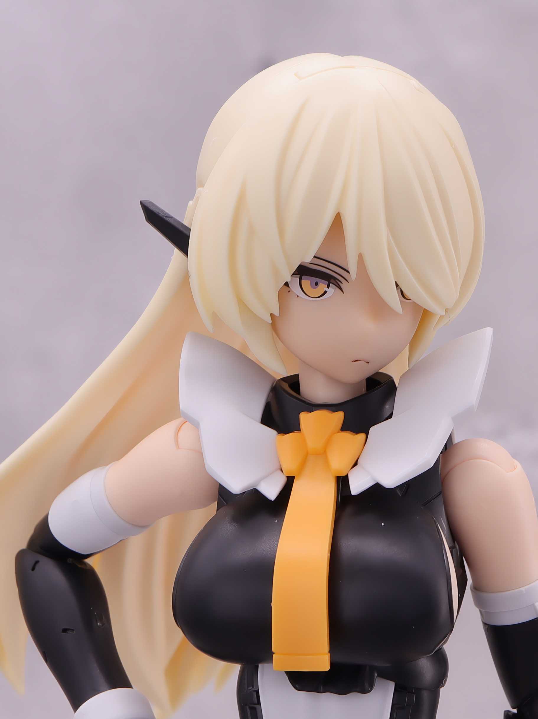頭部は黒いインカムが付いてるのがデフォですが、余剰パーツのフェイス基部を使えば通常顔も再現できます→
