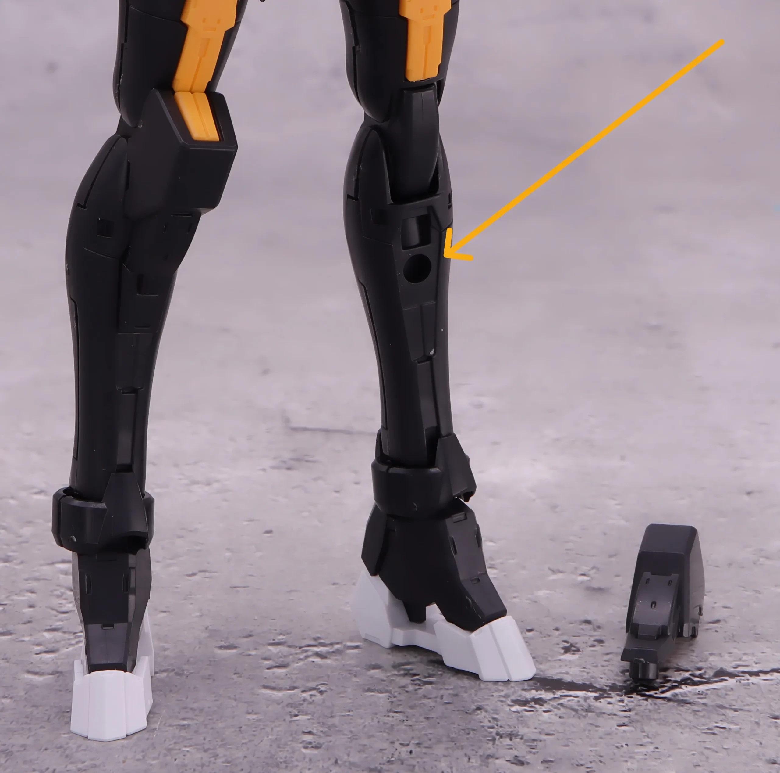 脚部はモモの裏に3mm穴がある他に、膝装甲を外すとその下にも3mm穴が存在します。