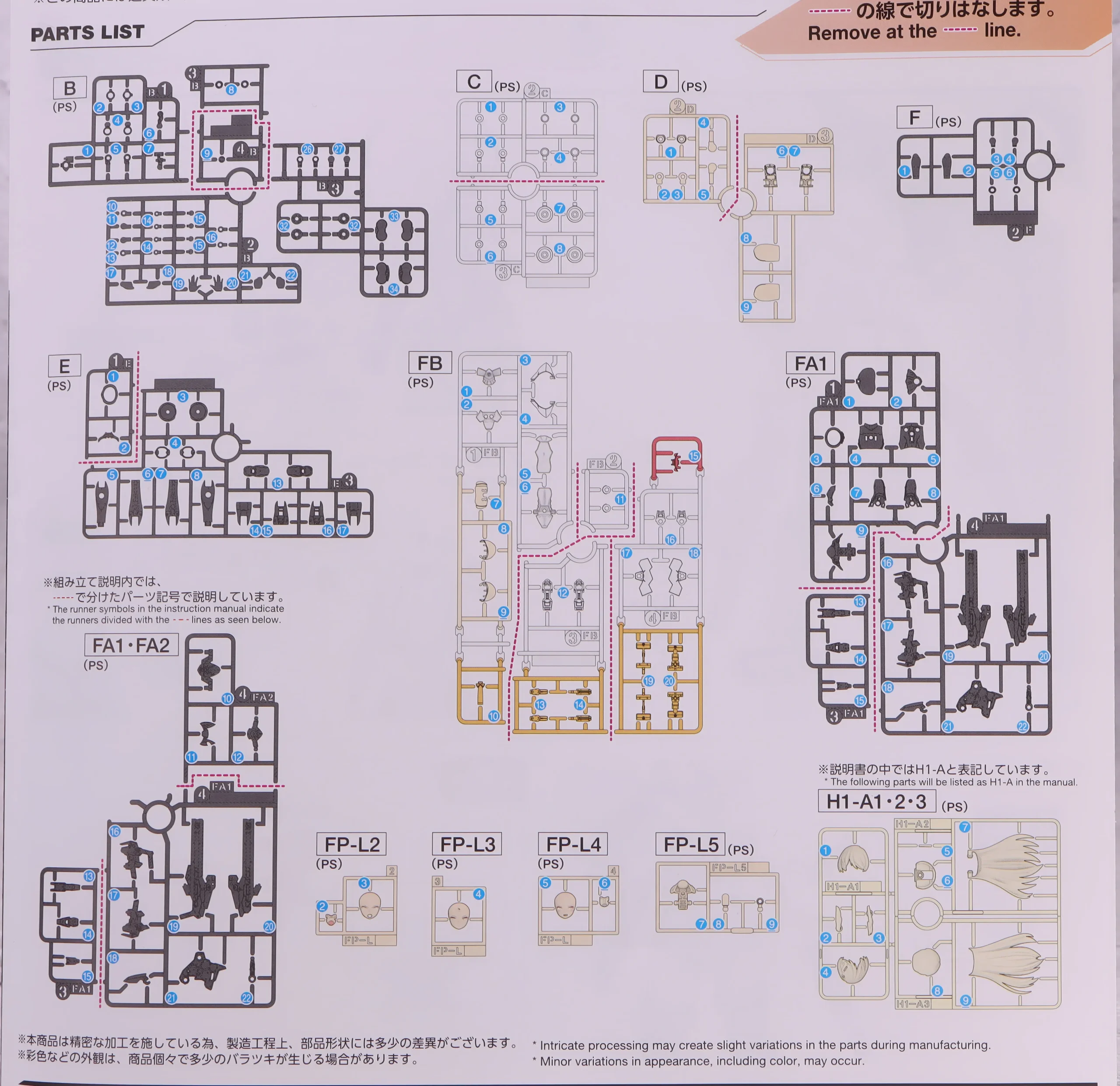 全部で14枚とキットのボリュームに対しては少なめ印象、バンダイらしい最小限にまとめて設計されている感じがします。