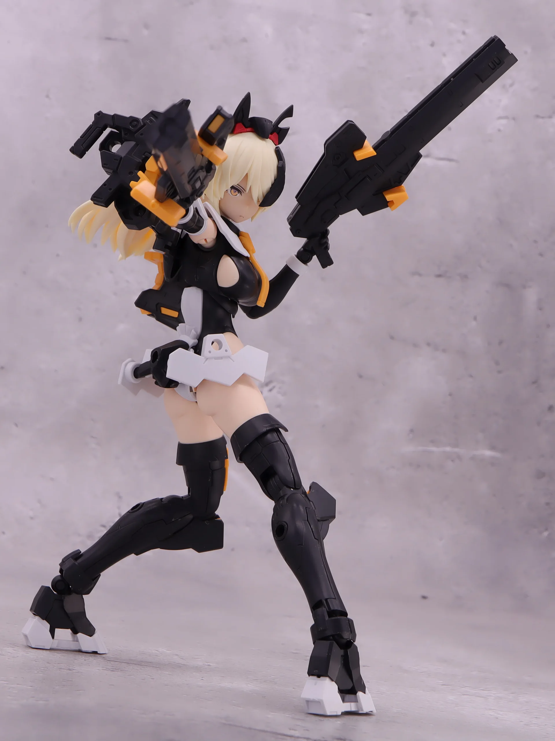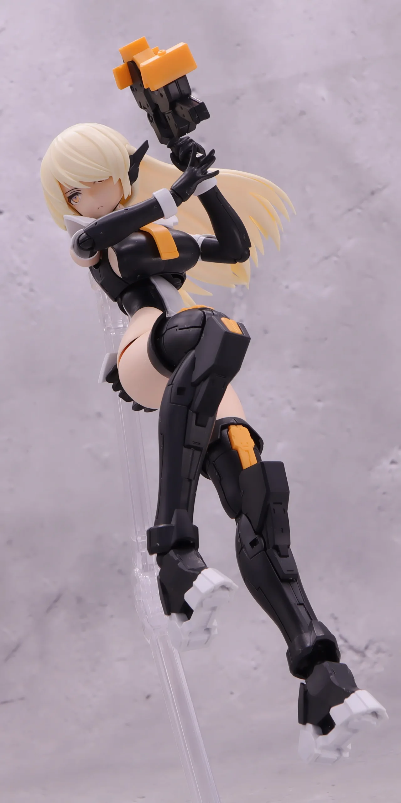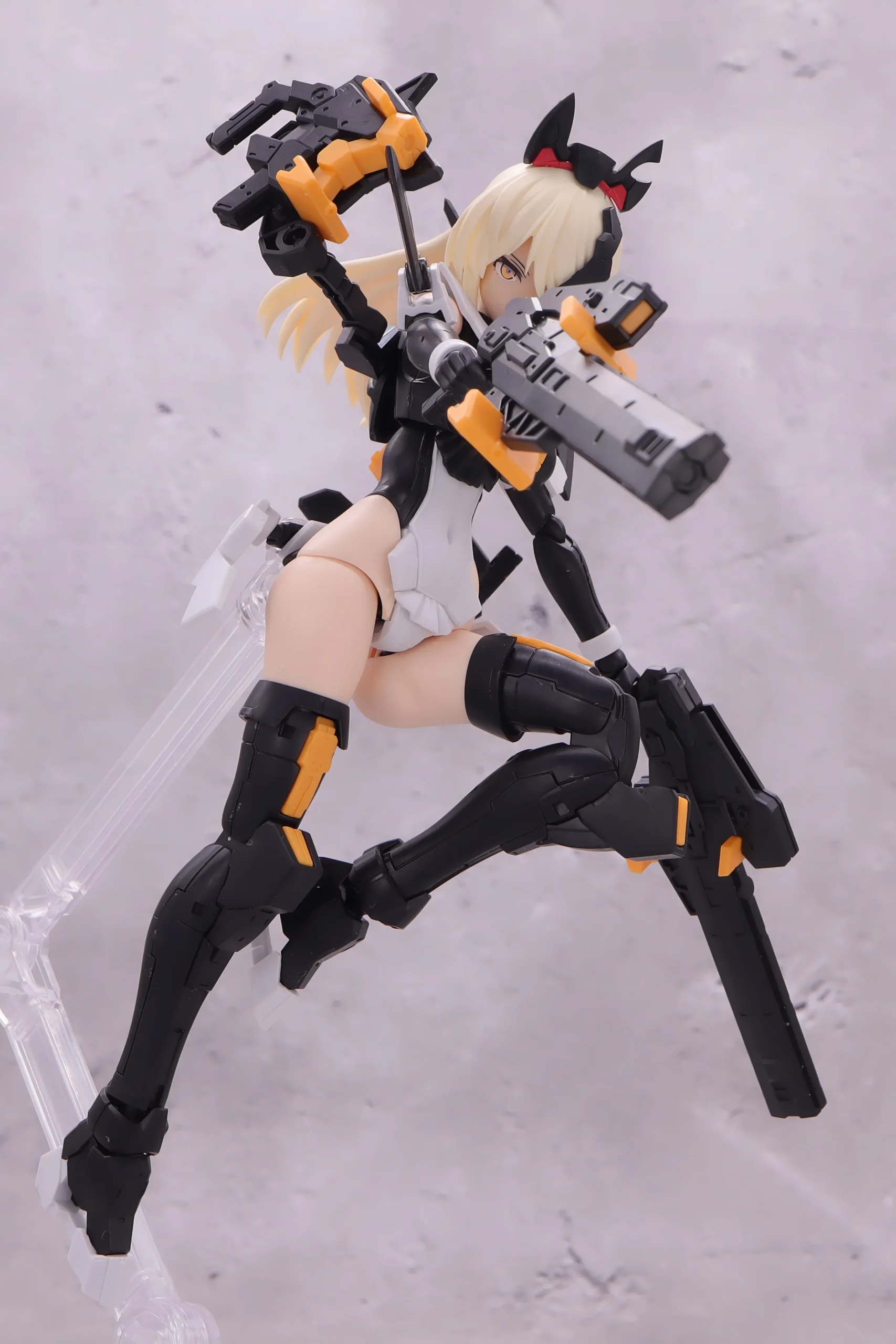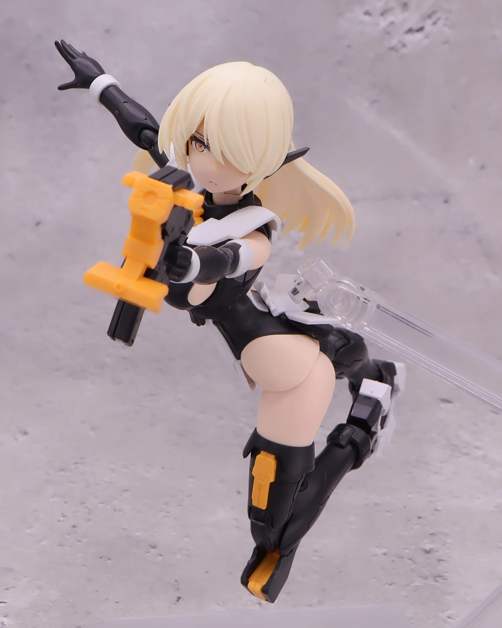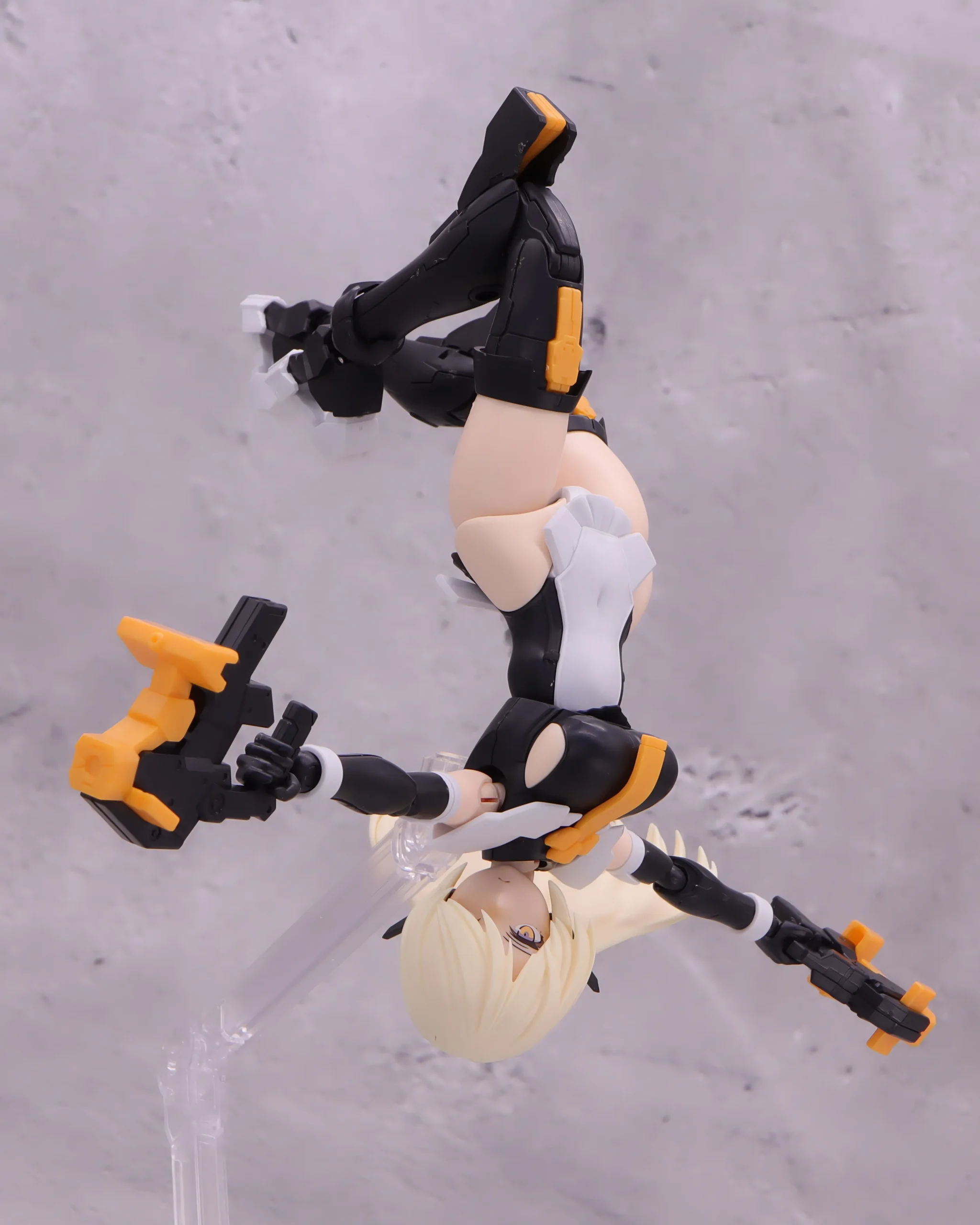背面射撃、バックパックの基部はある程度自由には動かせるので、こんなトリッキーな攻撃ポーズも再現できます。)
