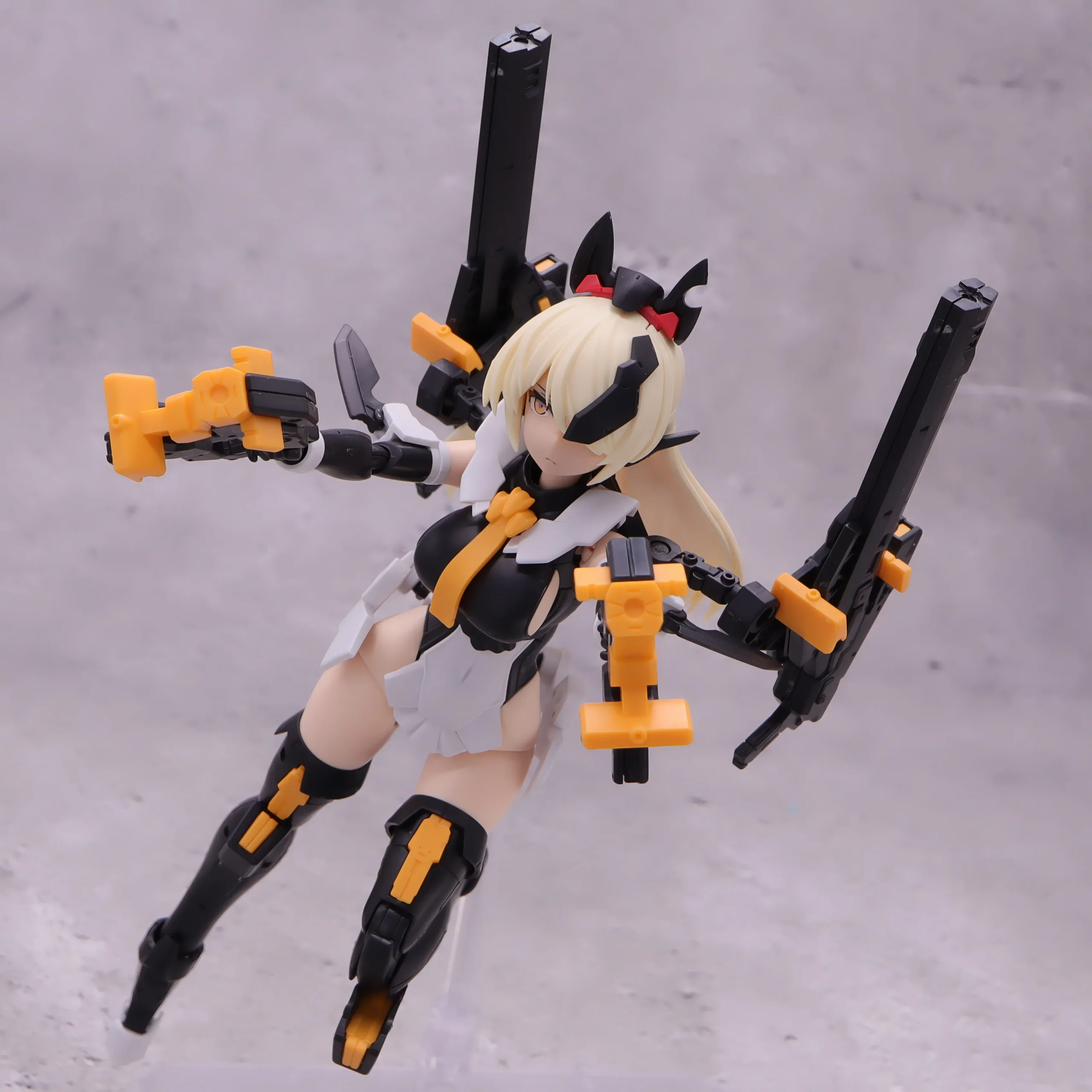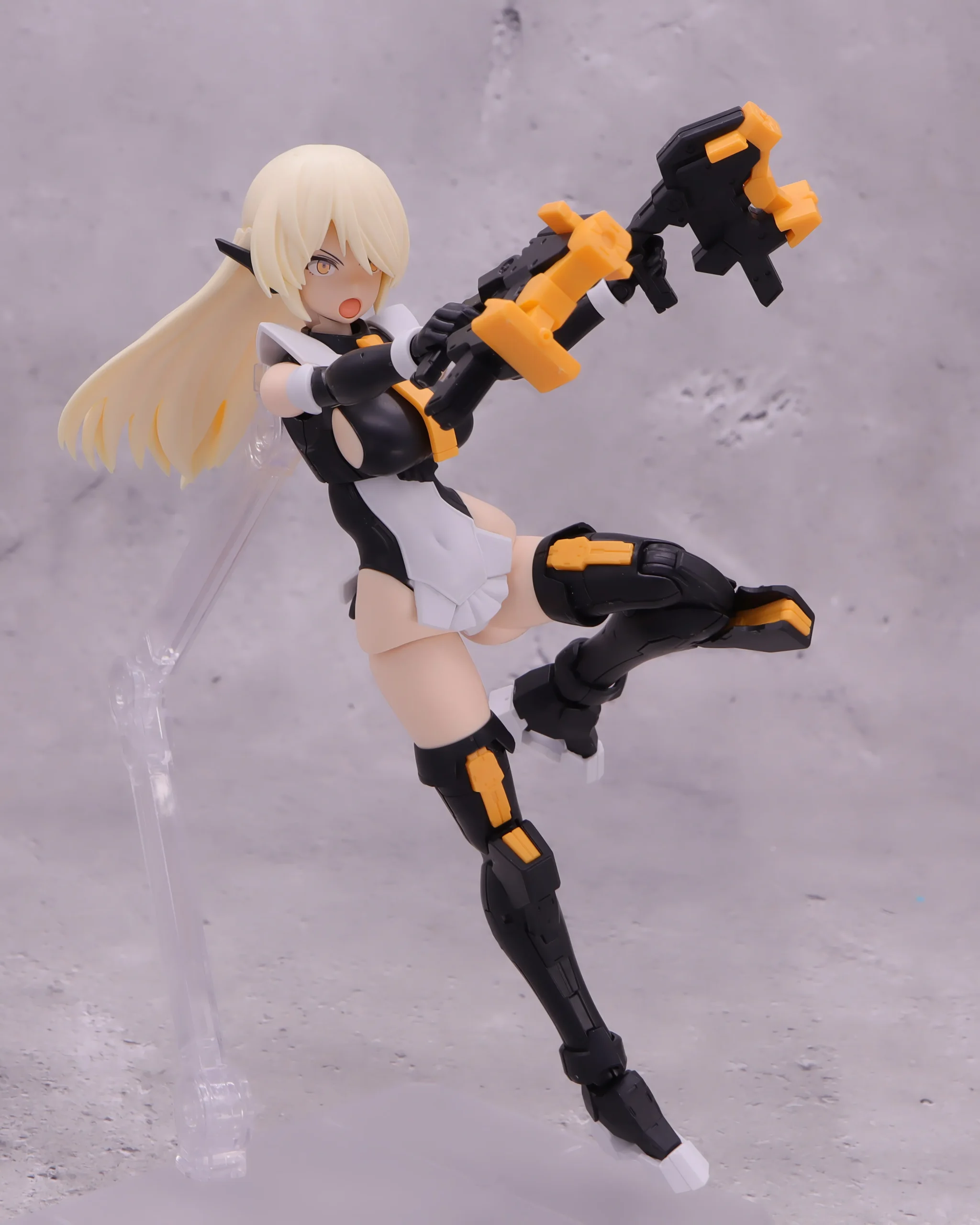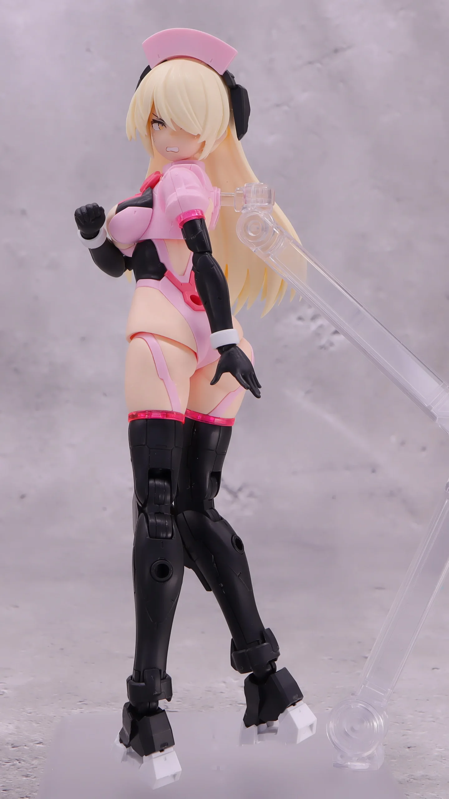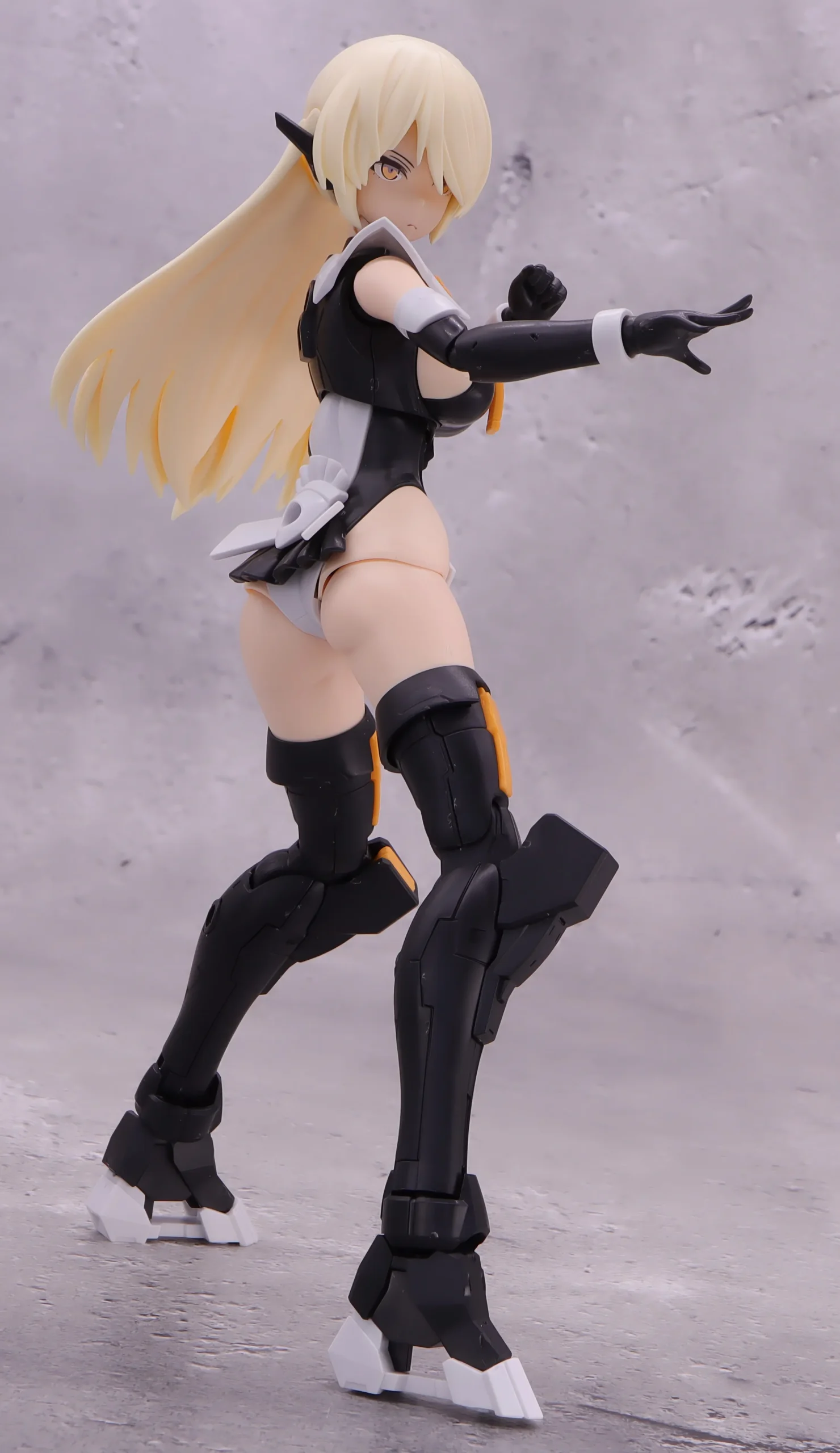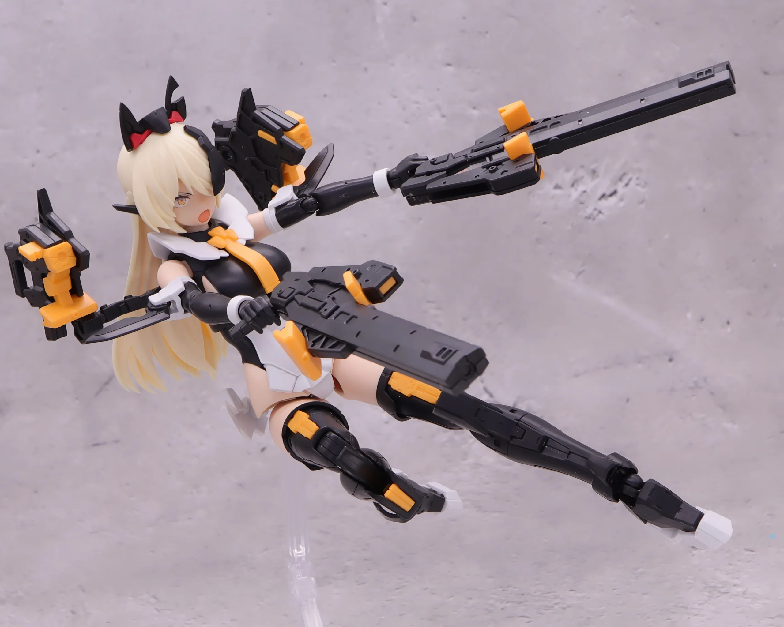 背面射撃、バックパックの基部はある程度自由には動かせるので、こんなトリッキーな攻撃ポーズも再現できます。)