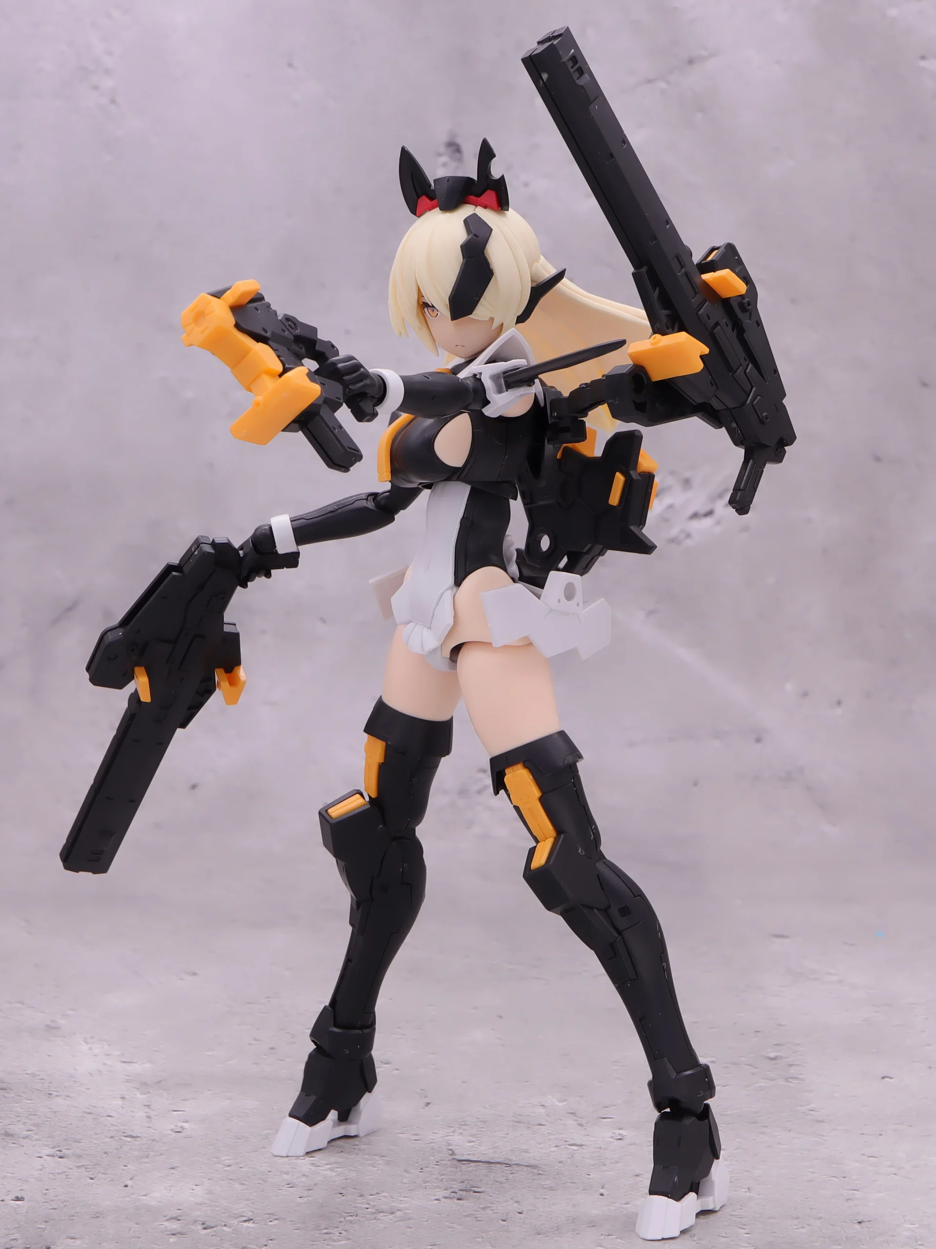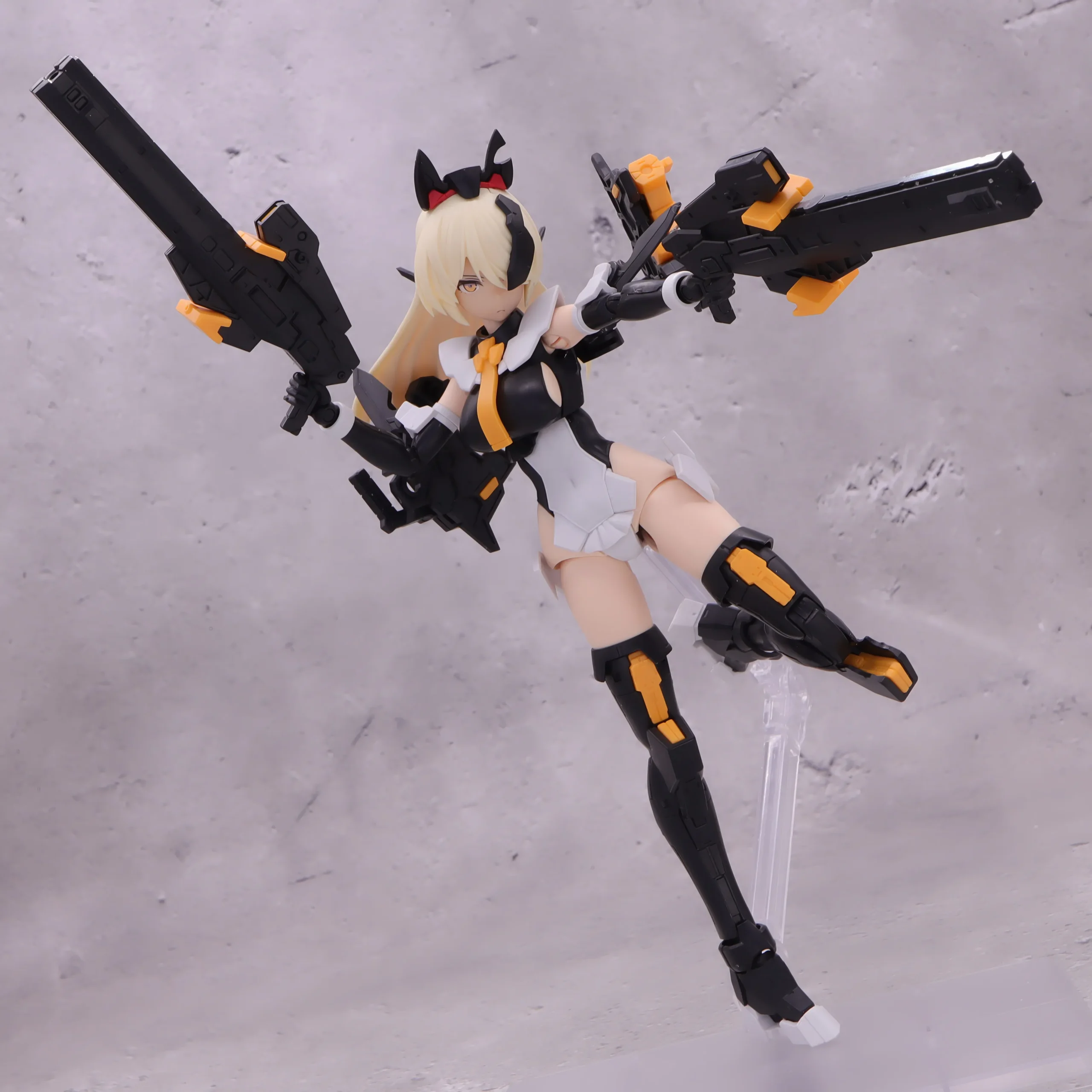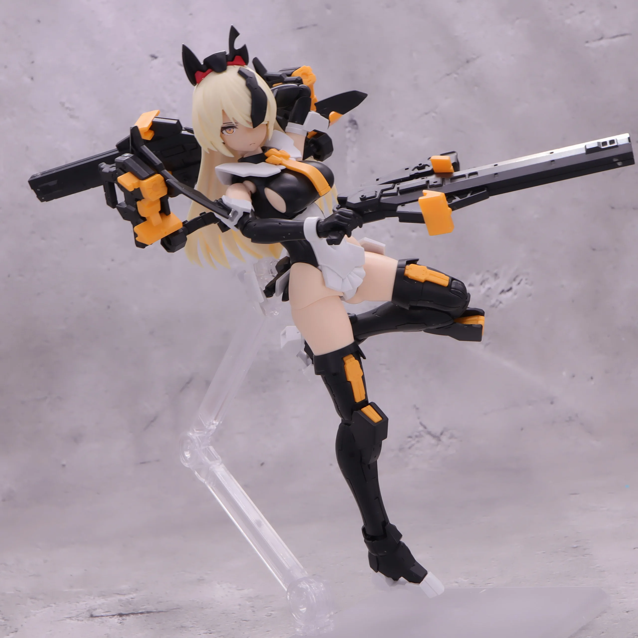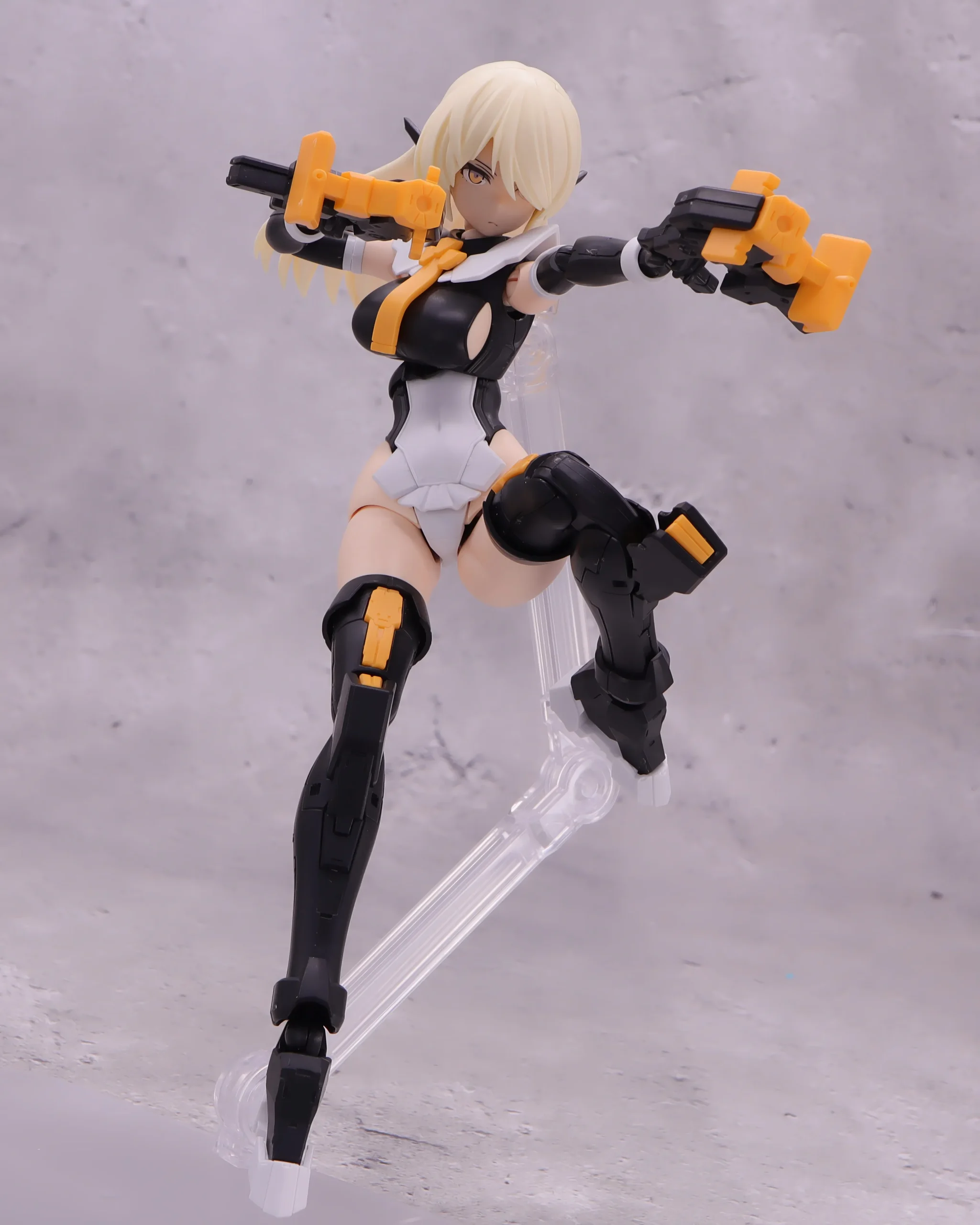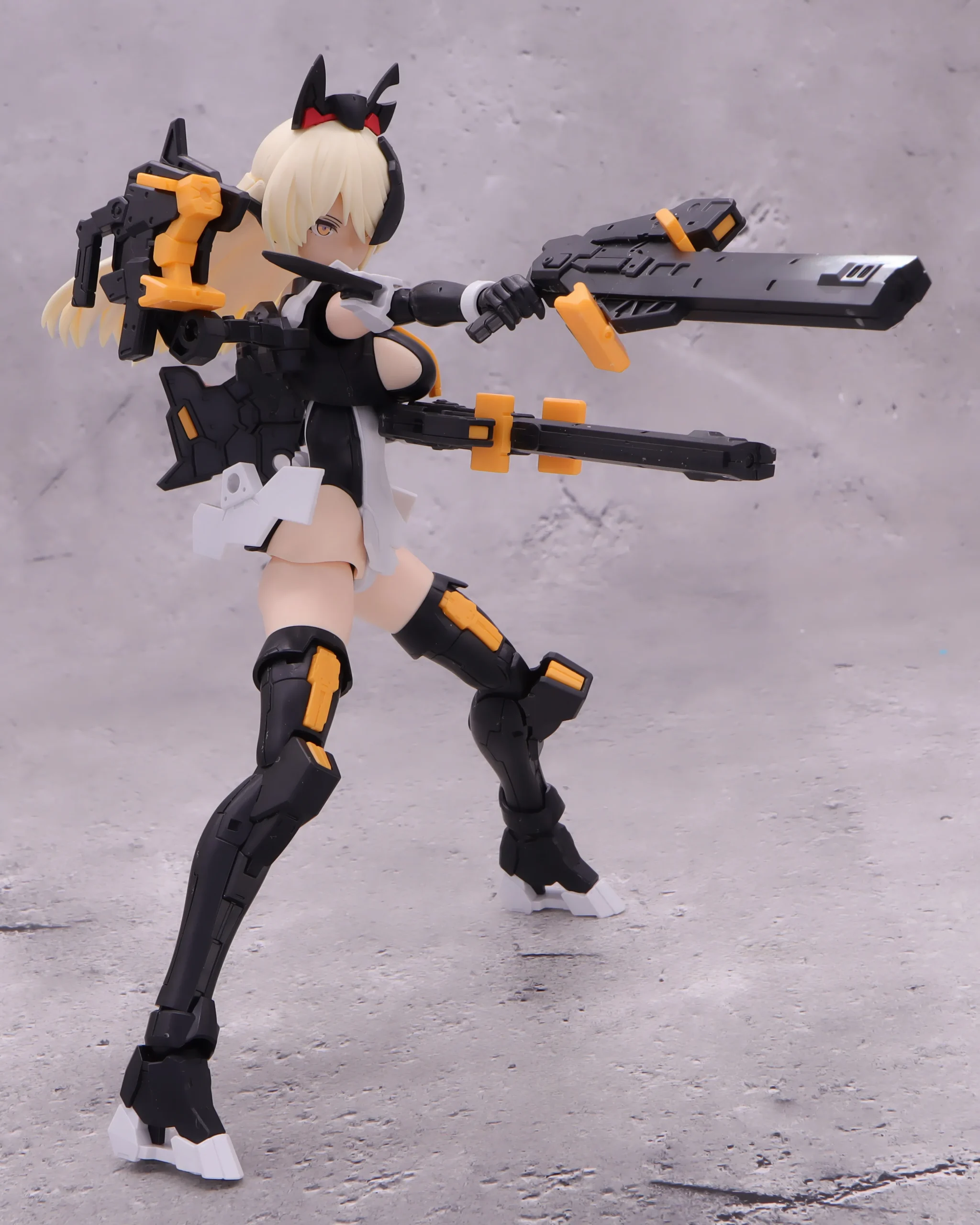 背面射撃、バックパックの基部はある程度自由には動かせるので、こんなトリッキーな攻撃ポーズも再現できます。)
