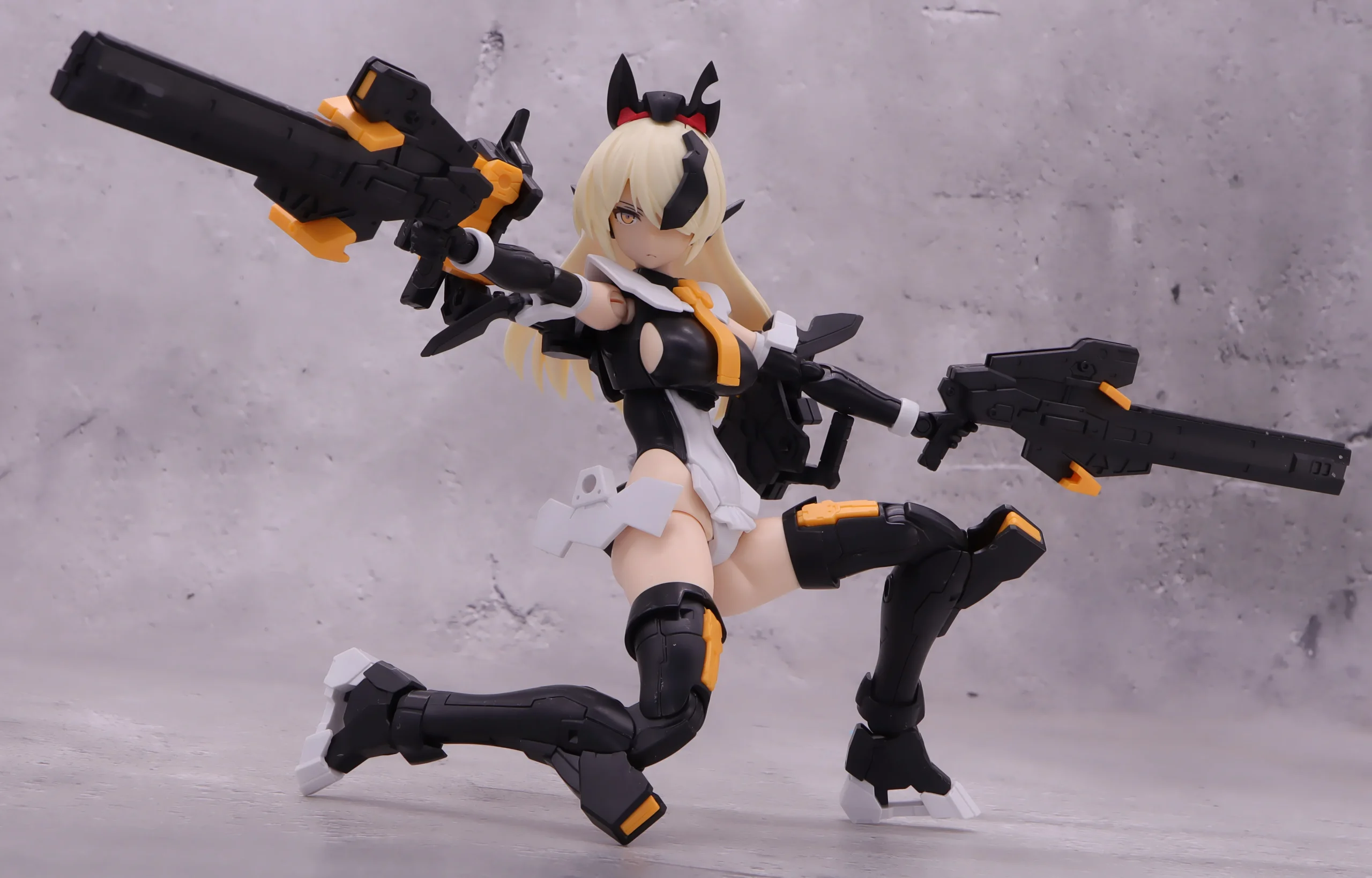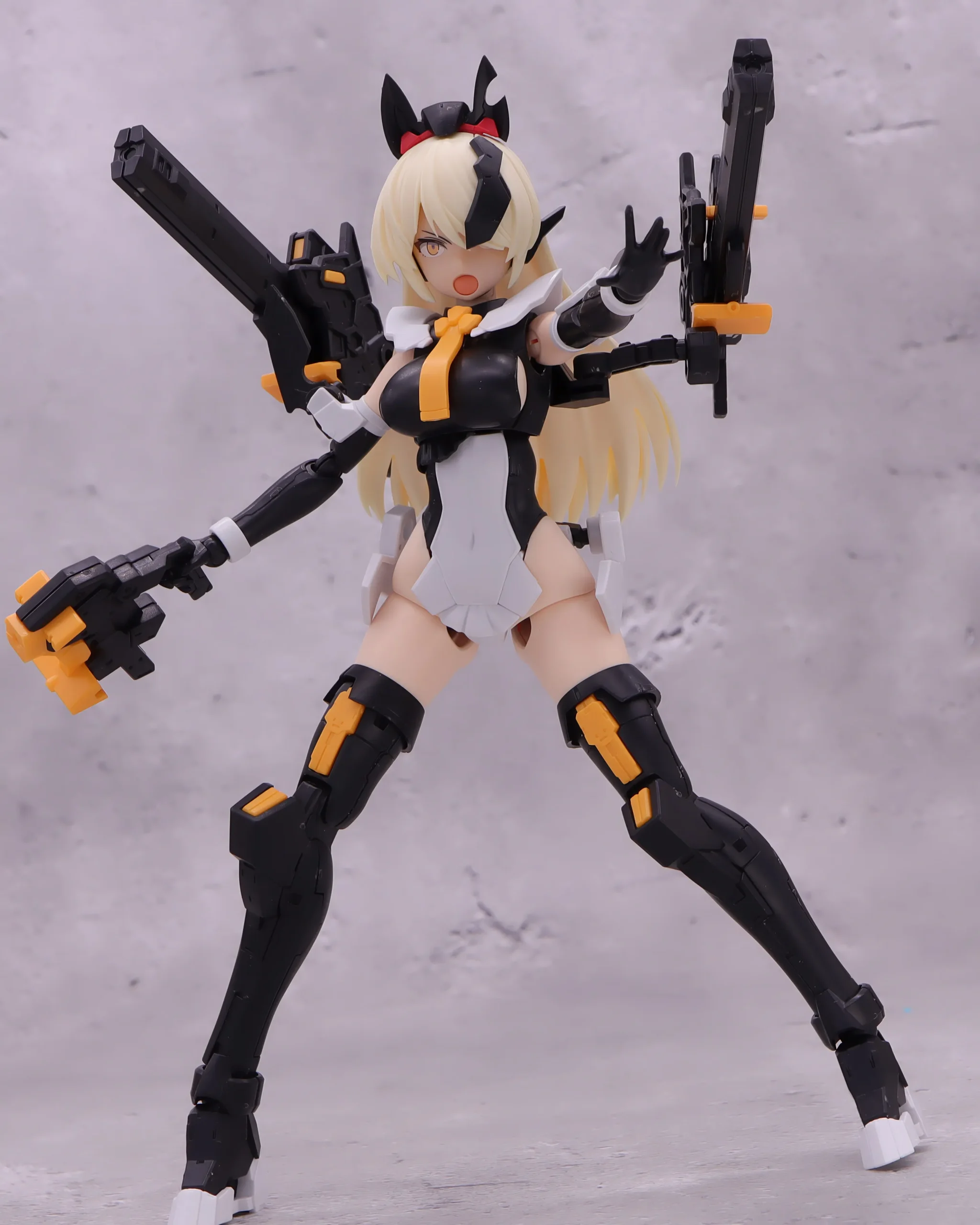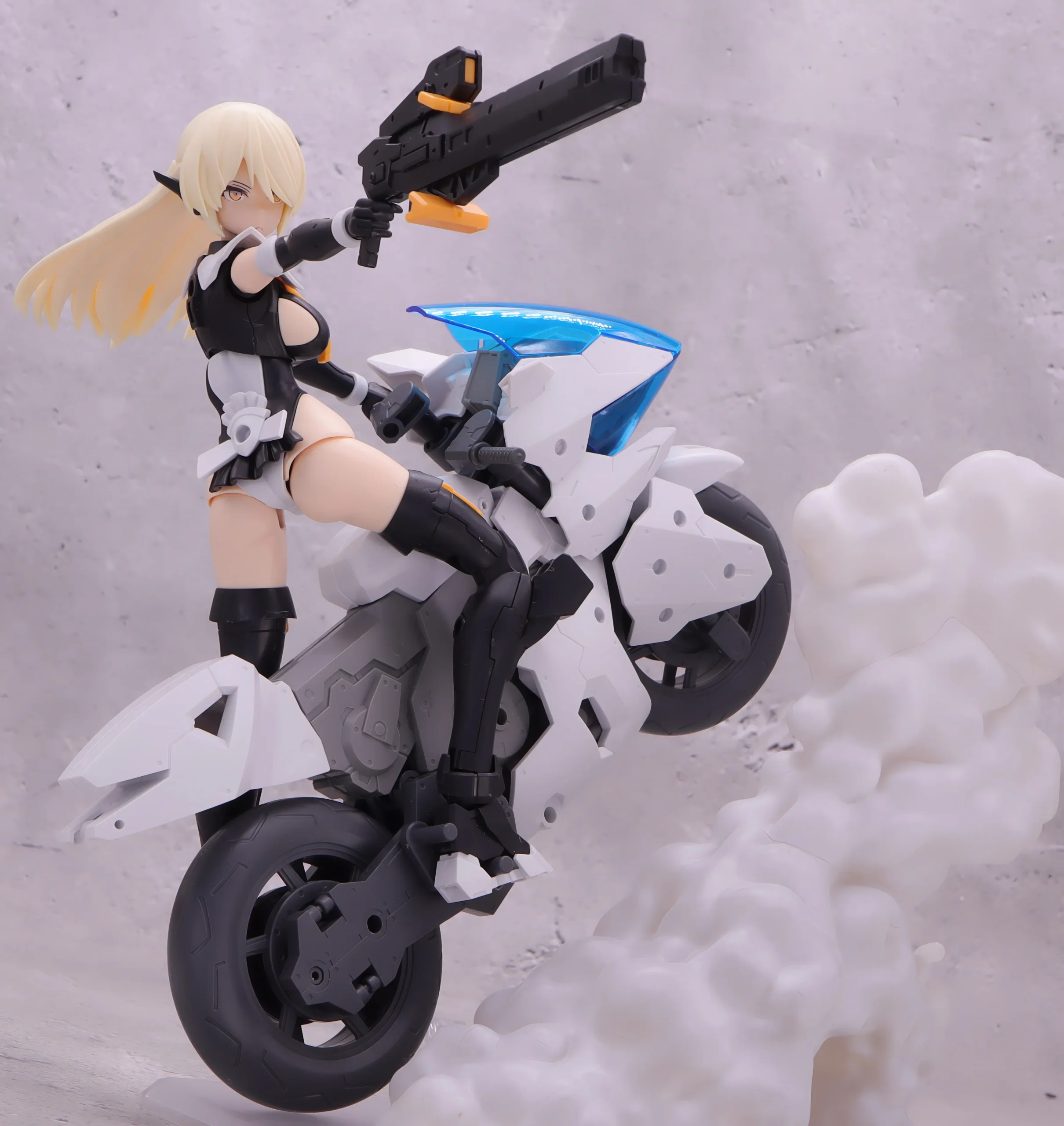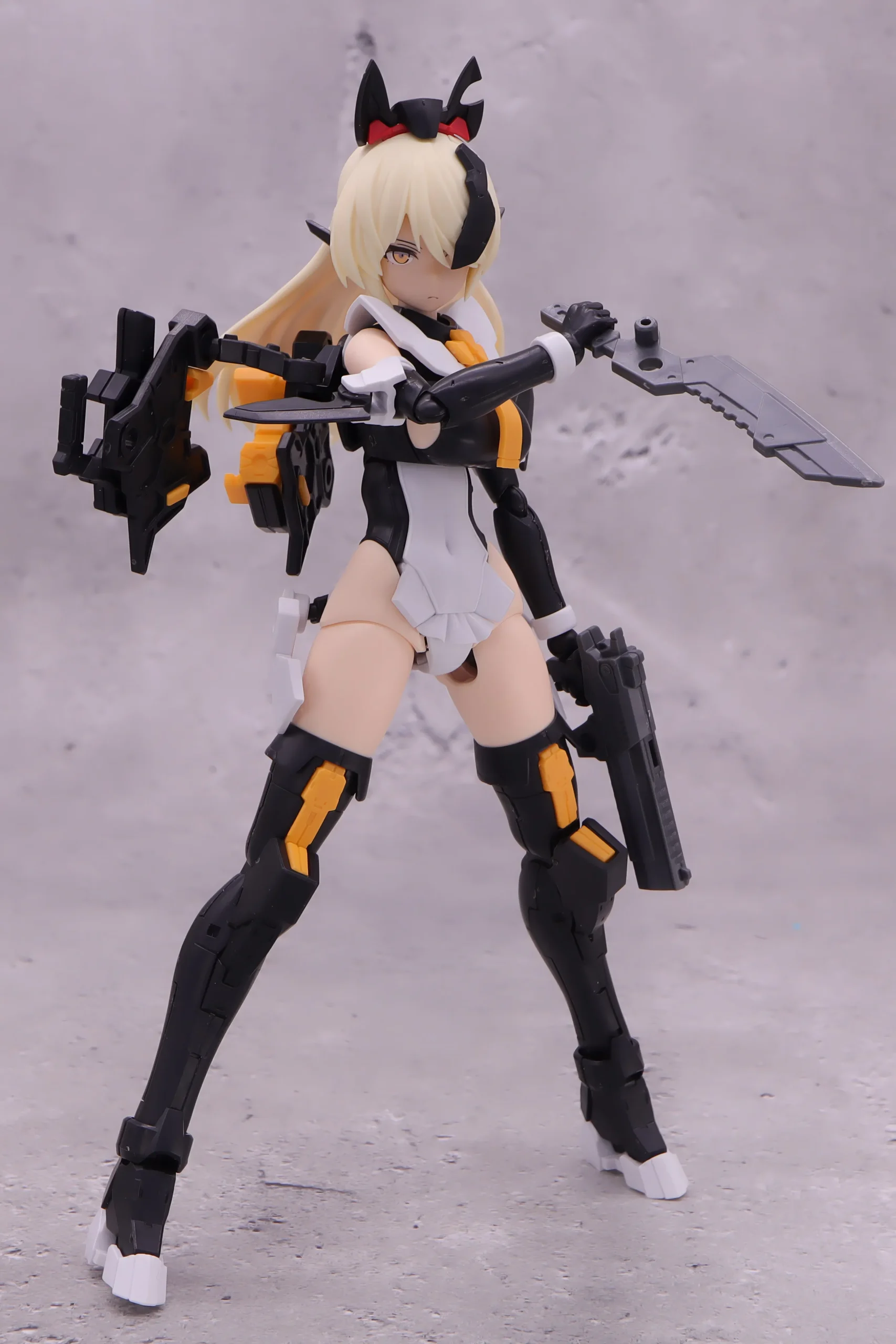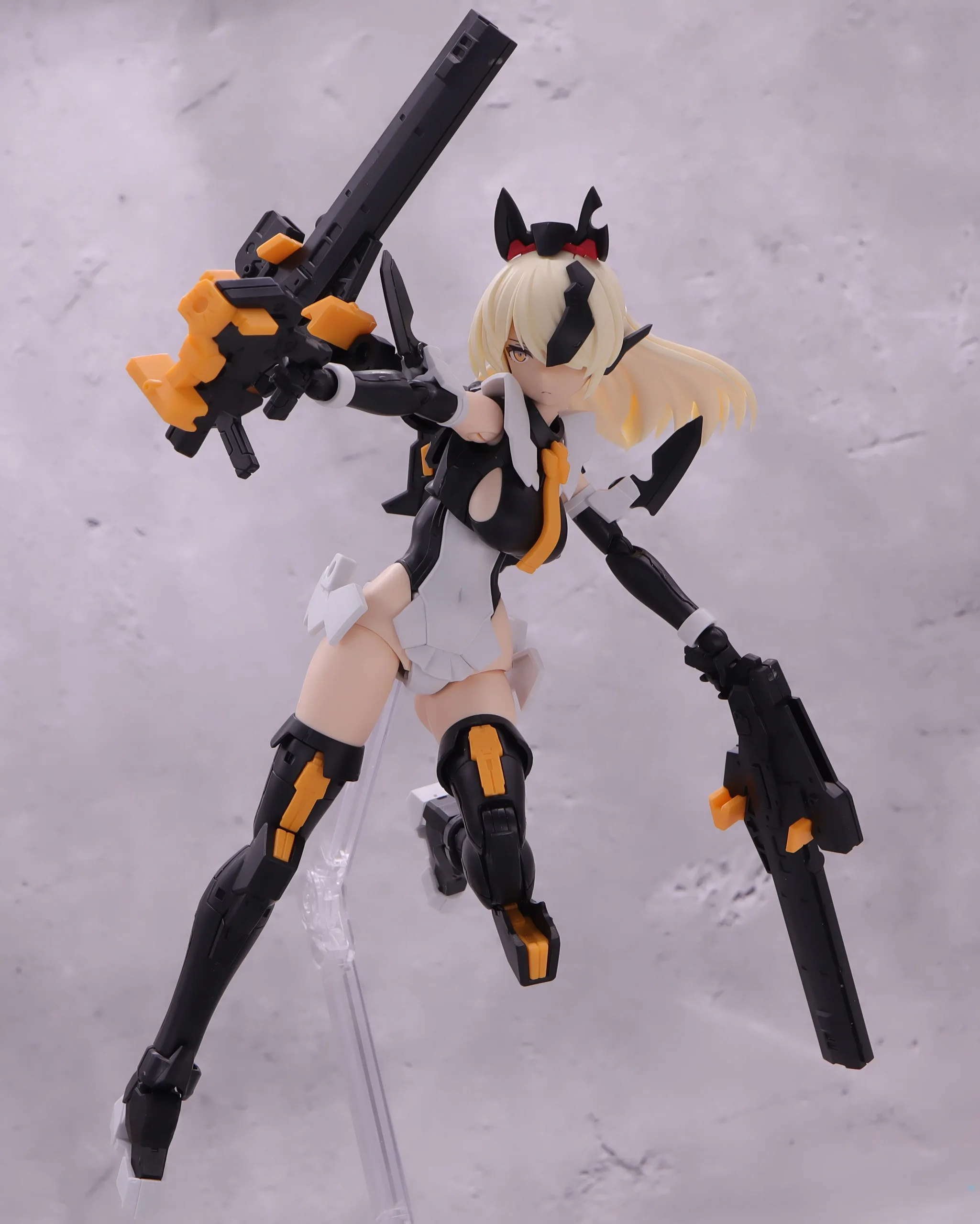 背面射撃、バックパックの基部はある程度自由には動かせるので、こんなトリッキーな攻撃ポーズも再現できます。)