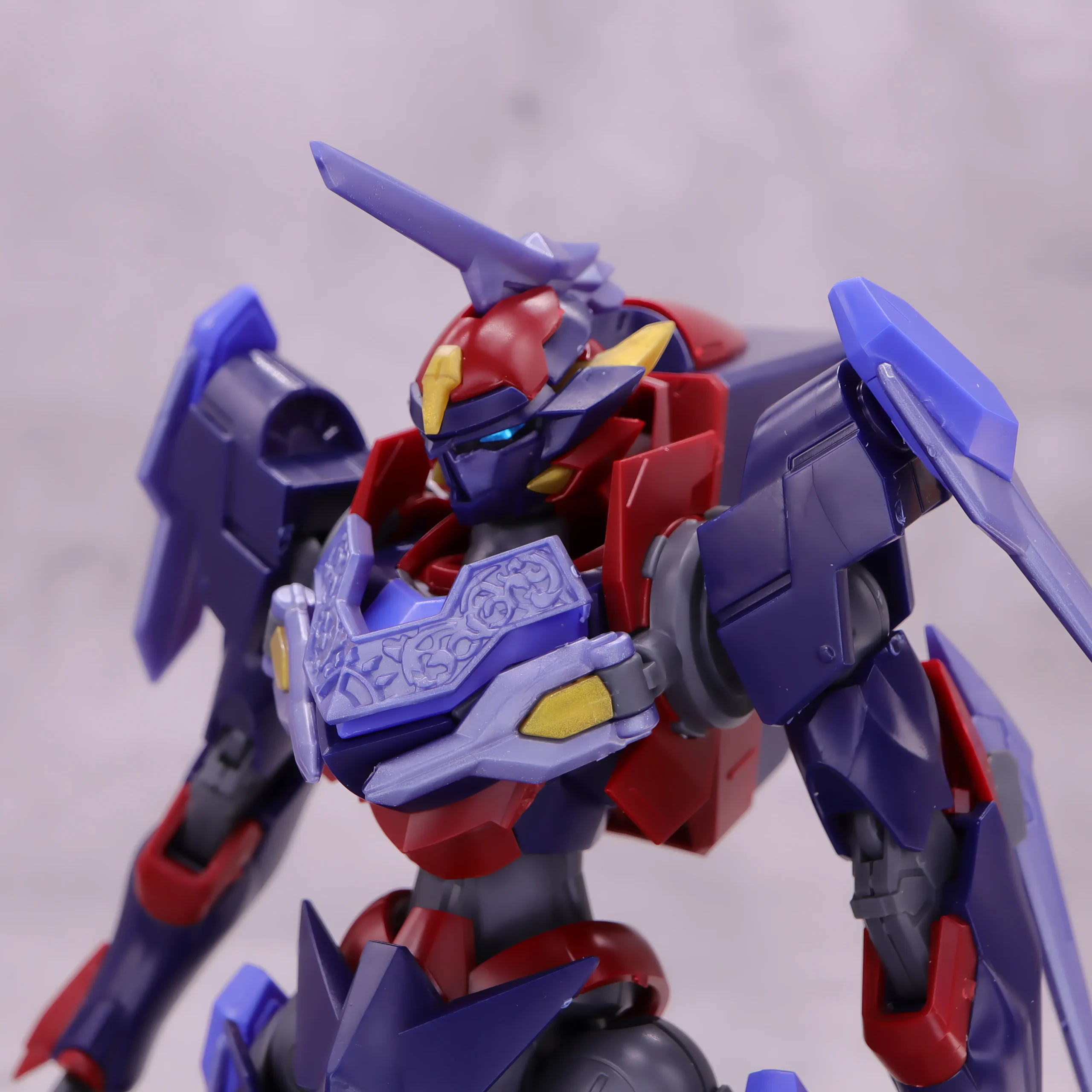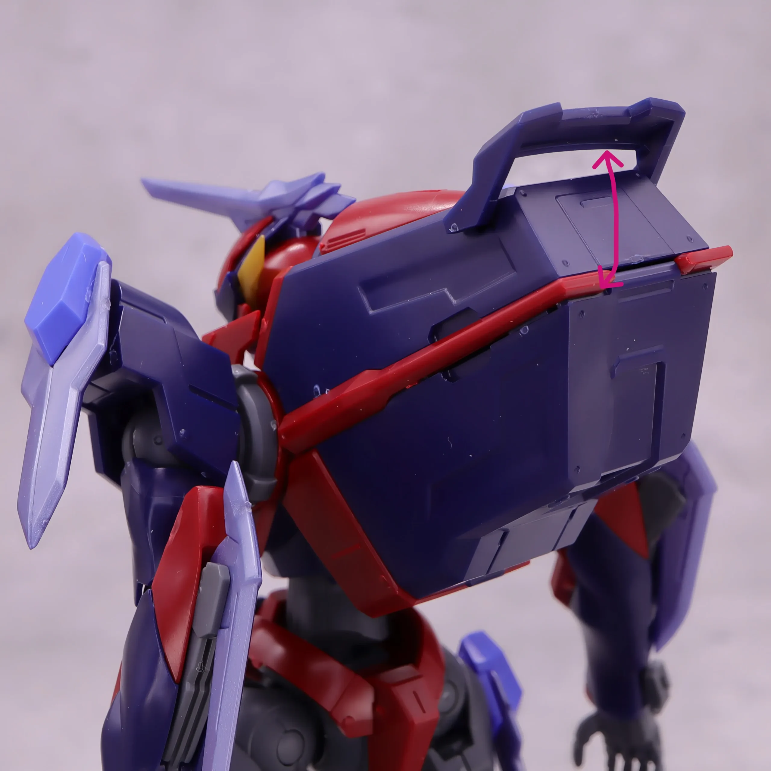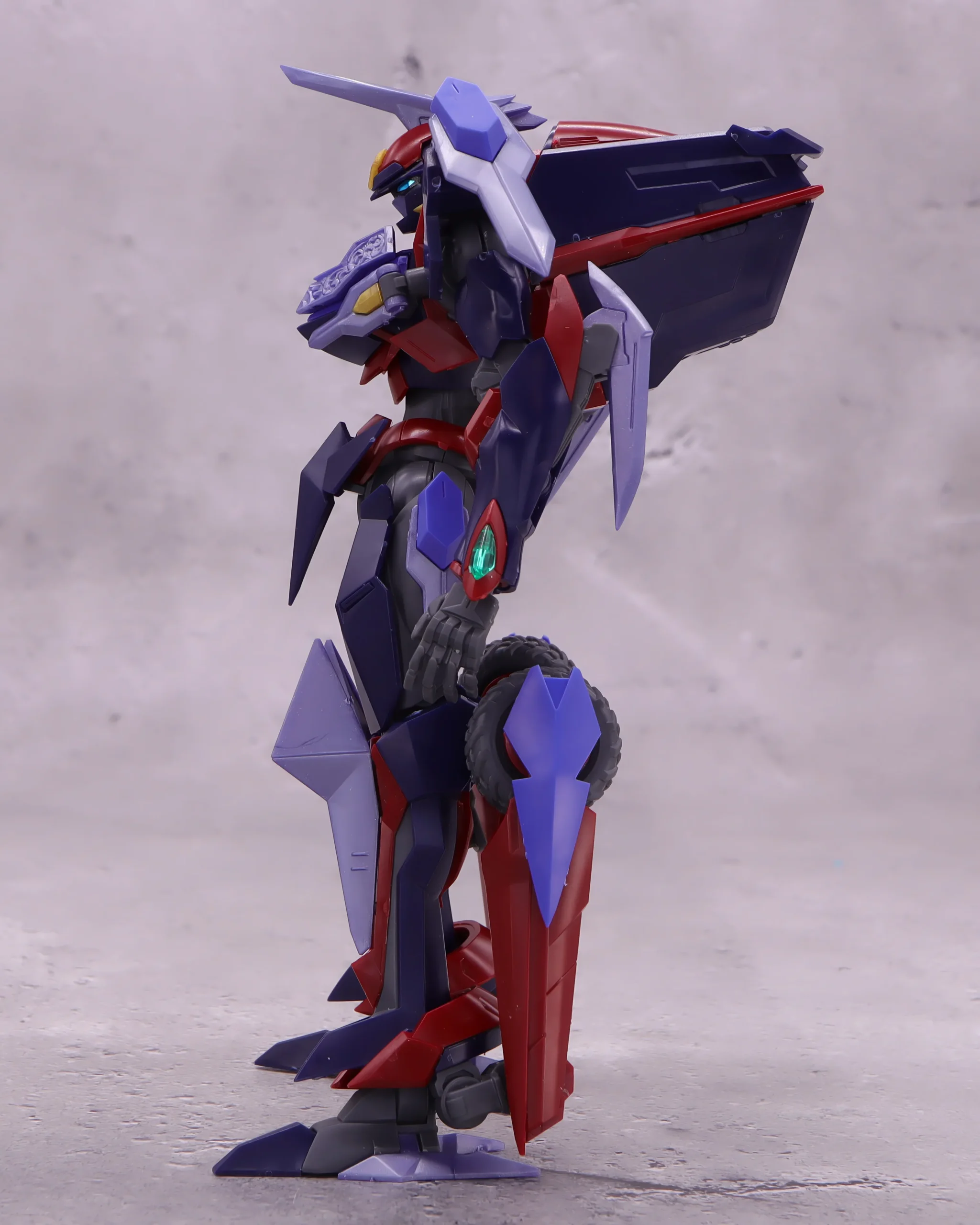 胸上のエングレービング柄の装甲はモールドがしっかりしているので、墨入れしたくなりますね、背中コックピットブロックのウイング(?)は僅かですが上下に可動。