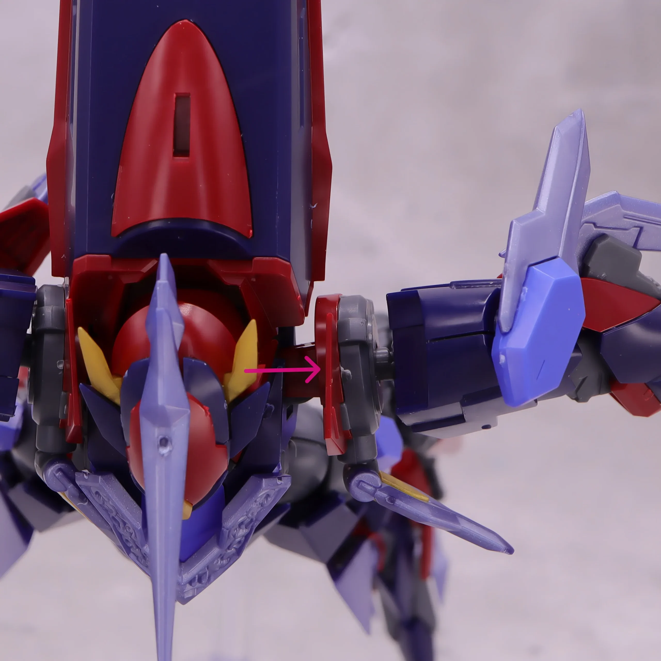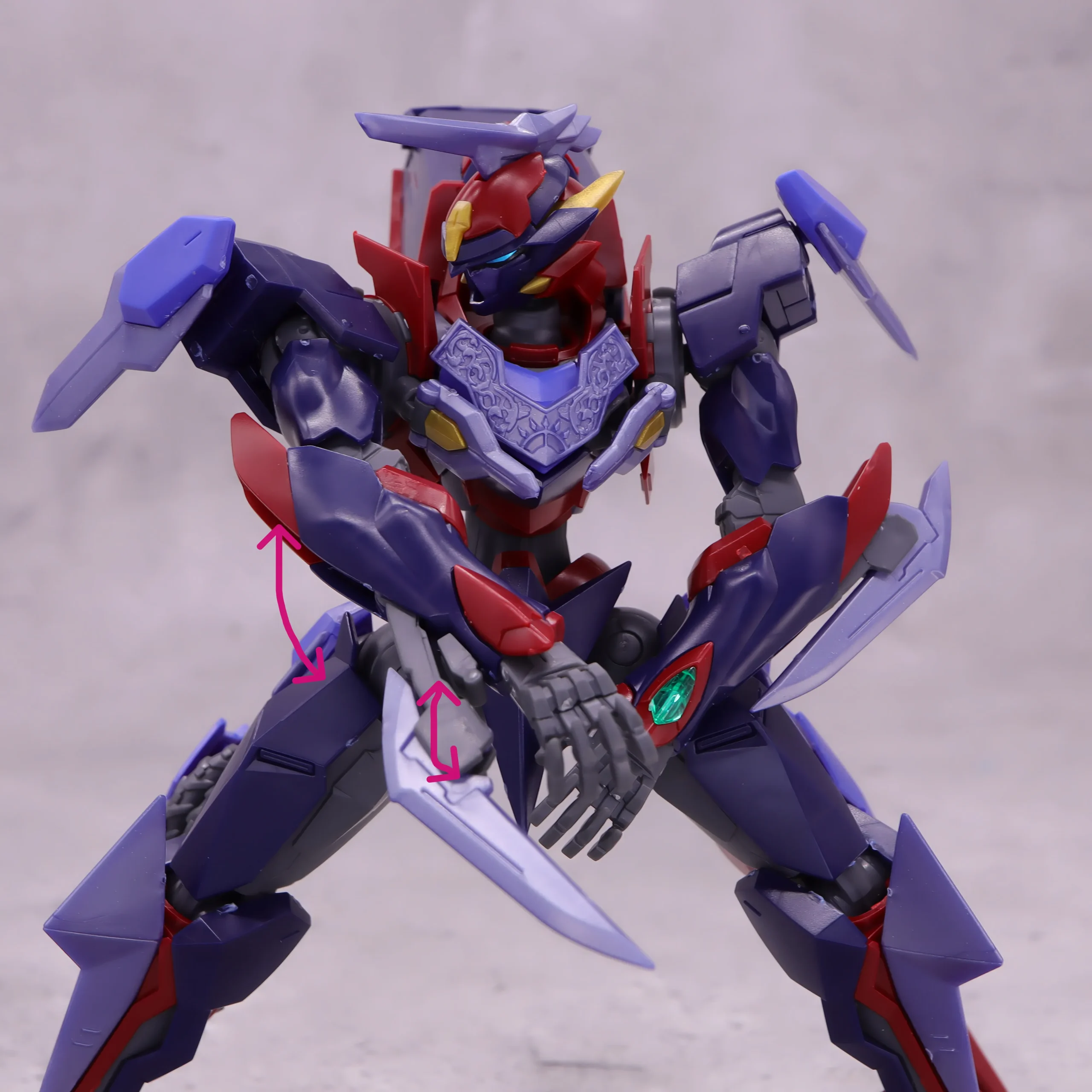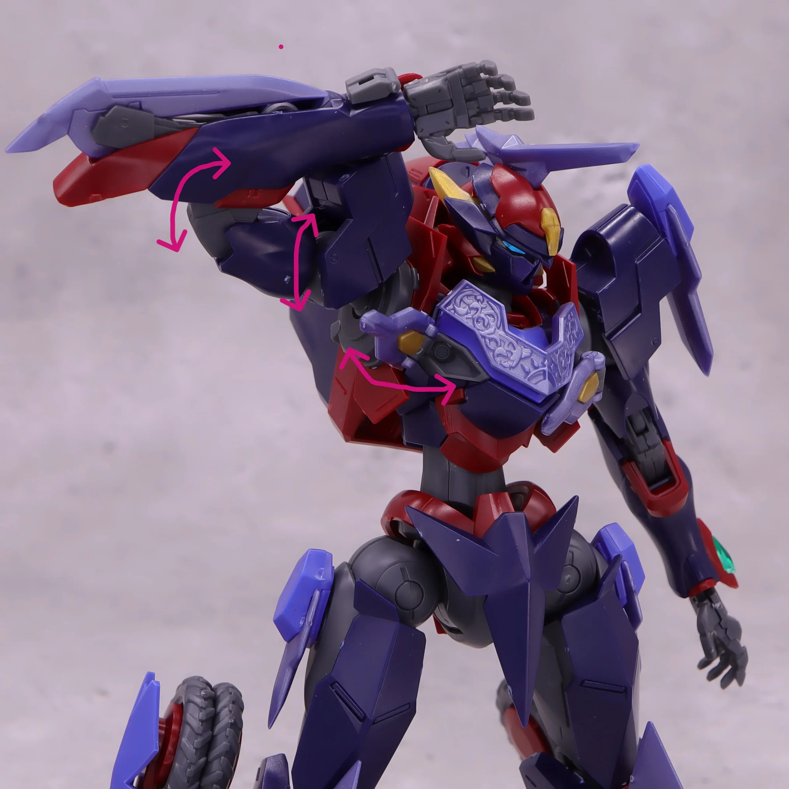 この機体の数少ない専用武器である肘のエグゾニュウムブレードは肘から展開可能、付け根と刃の部分が動かせるようになっています。
