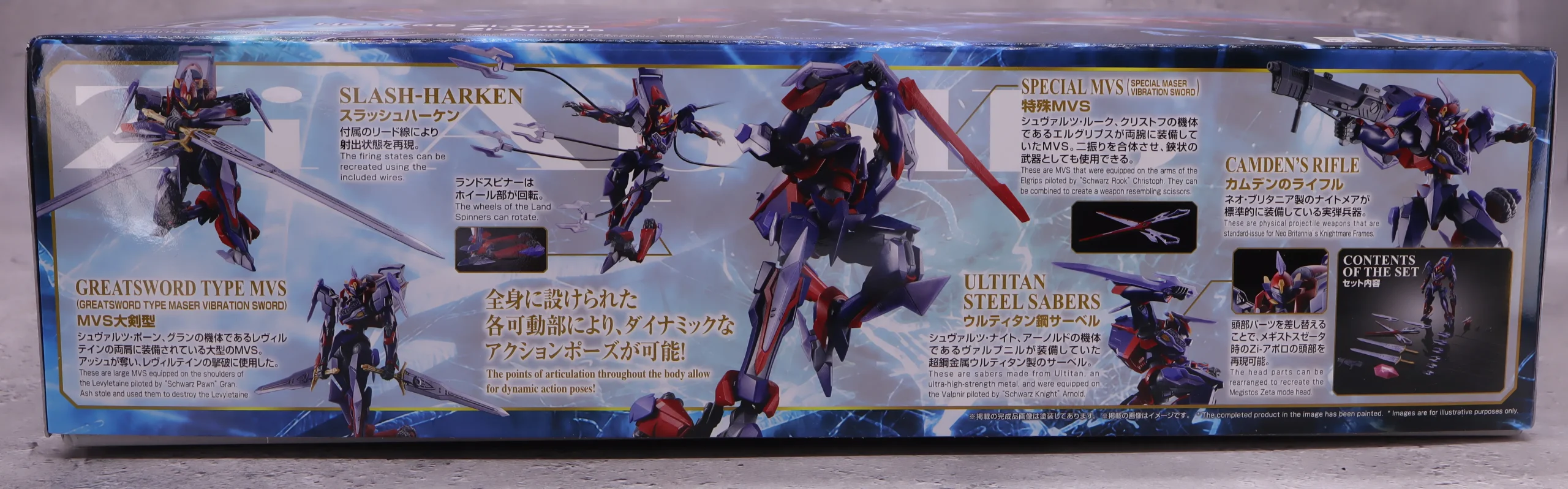 ギアスファンにはお馴染みのスラッシュハーケンの先端は形状が違うものが6種付属。Zi-アポロの全身に備え付けられた数と同数なので、全ハーケン同時発射状態が再現できるようになっています。