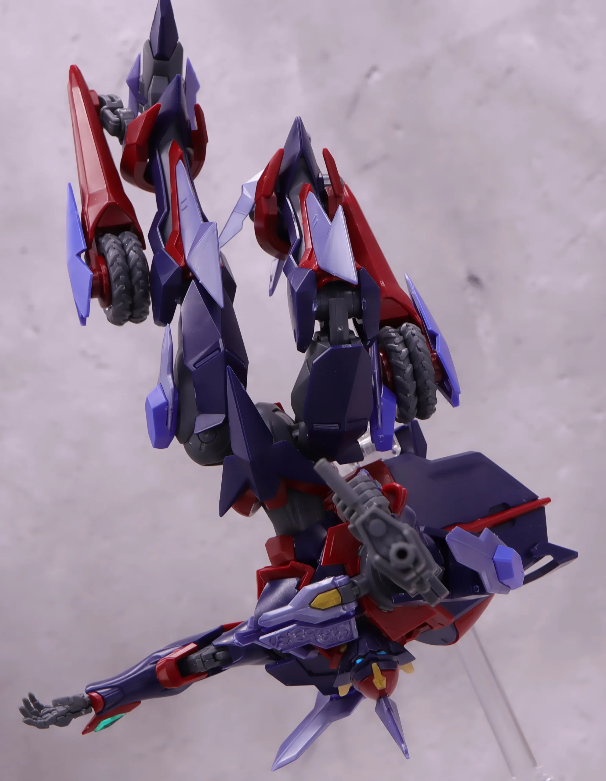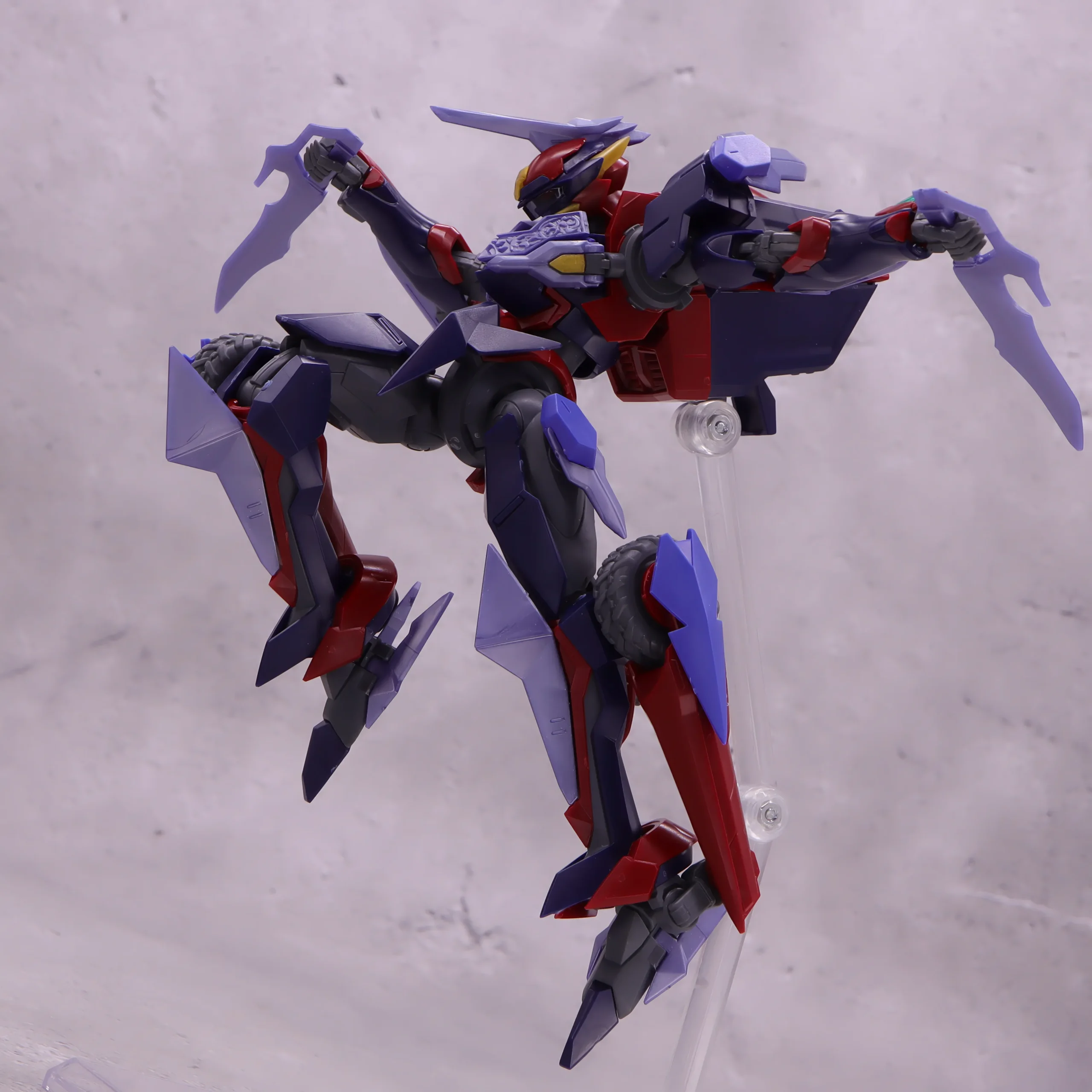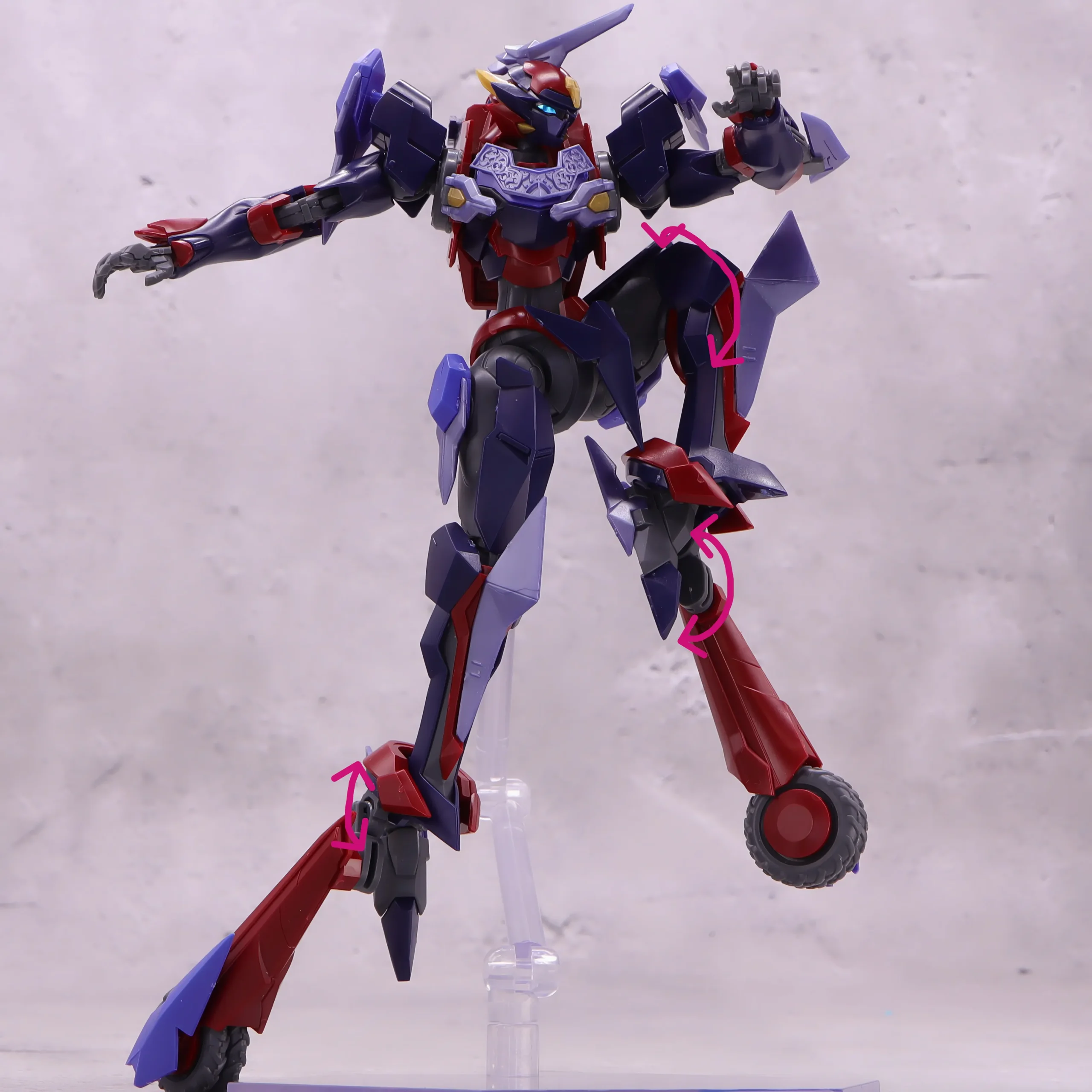 膝や爪先の曲がり具合は文句なし、ランドスピナーも基部から前後に動かせるのと根元がボールジョイント製なので色々な方向に動かしたアクションが出来るようになっています。