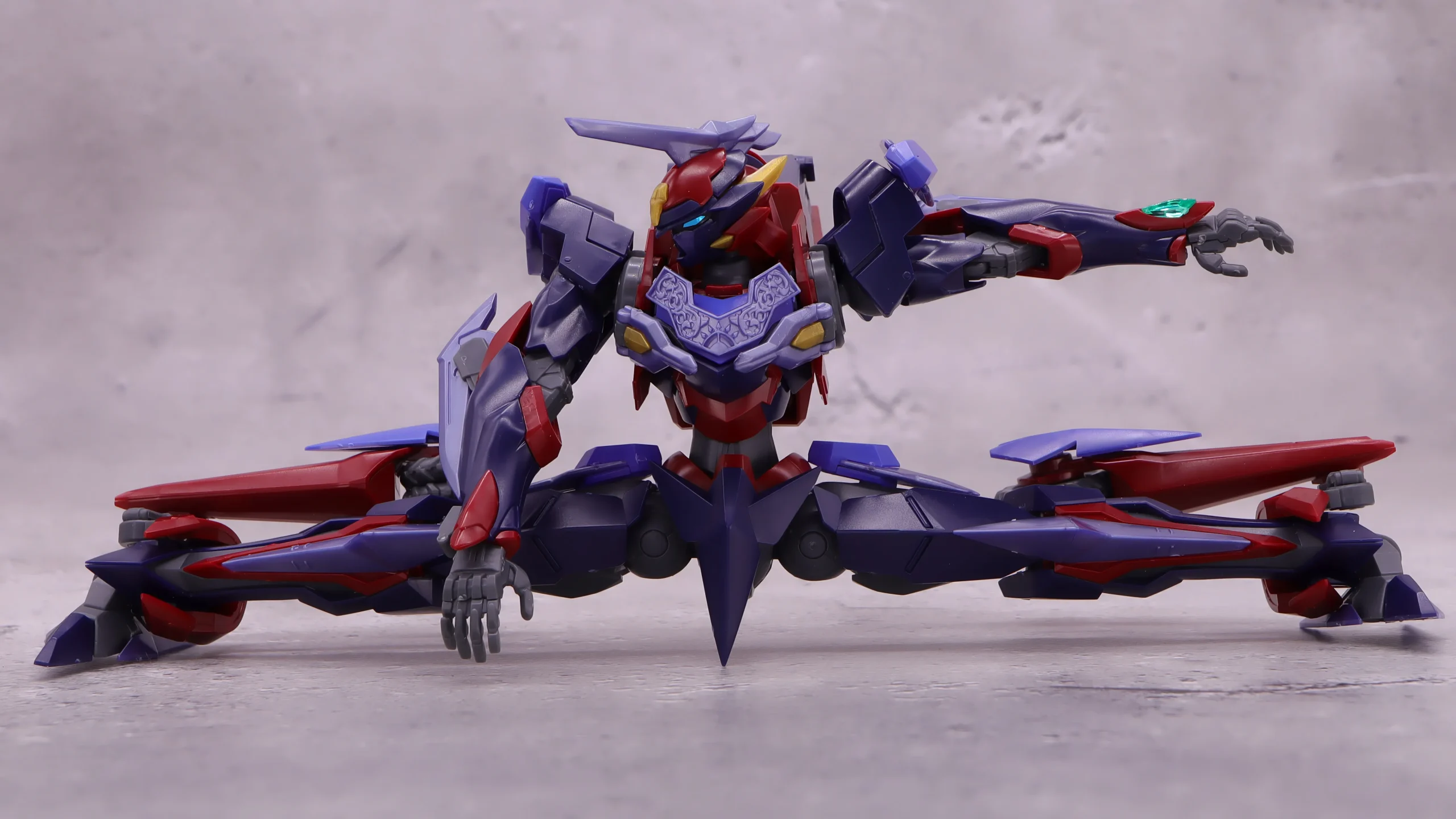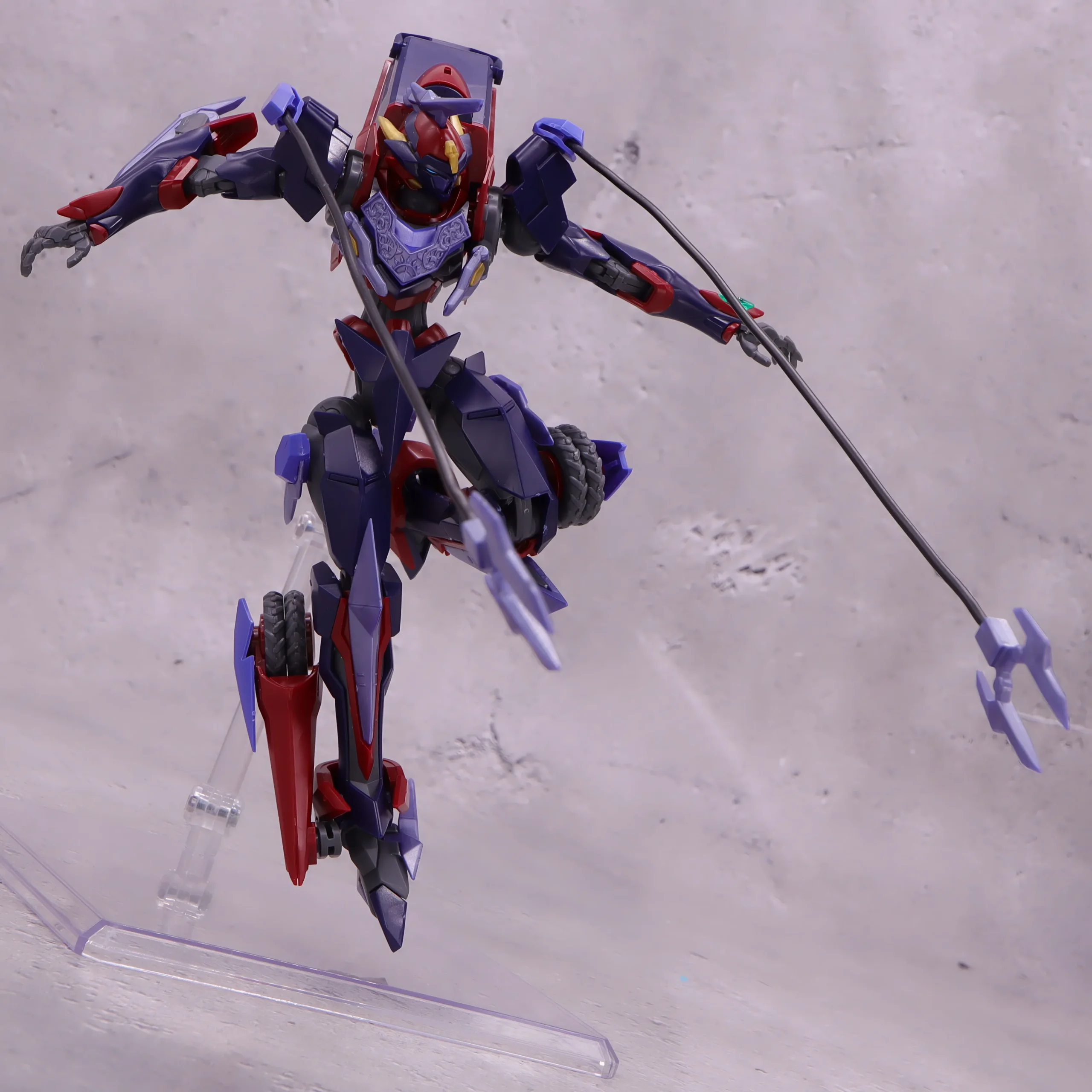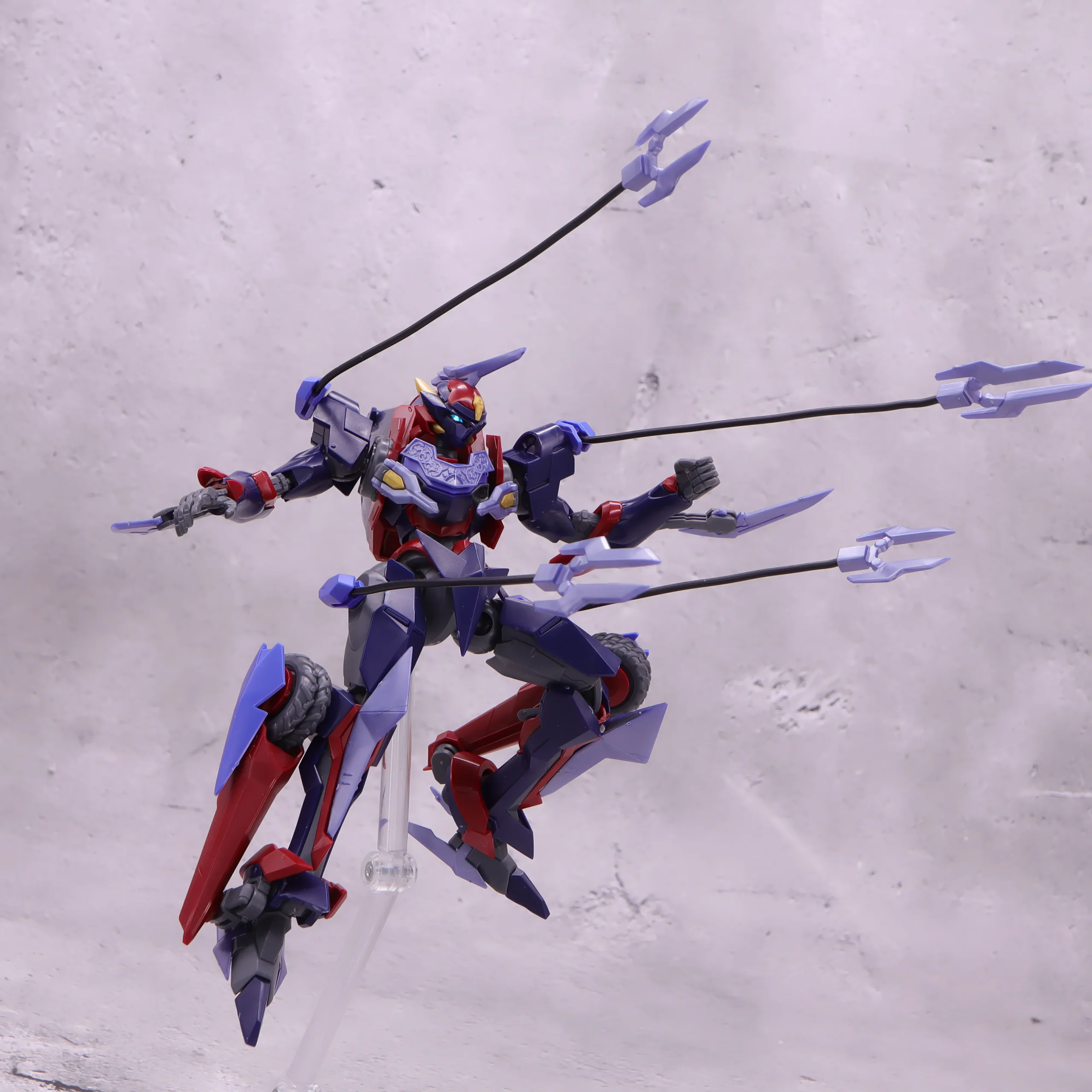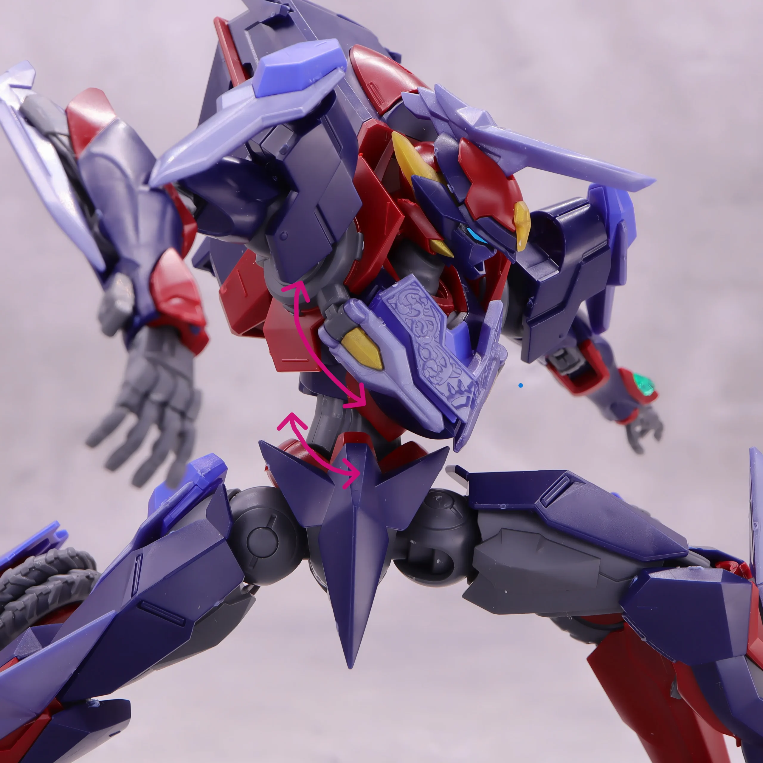 膝や爪先の曲がり具合は文句なし、ランドスピナーも基部から前後に動かせるのと根元がボールジョイント製なので色々な方向に動かしたアクションが出来るようになっています。