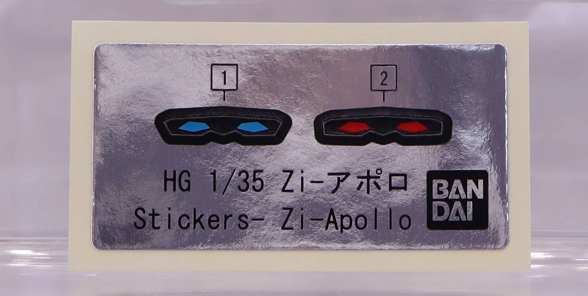 バンダイらしい色プラによるほぼ完ぺきな色分けがされたキットなので、付属するシールは目のところのみ、足りない所は後述する”MVS大型剣”だけですかね。