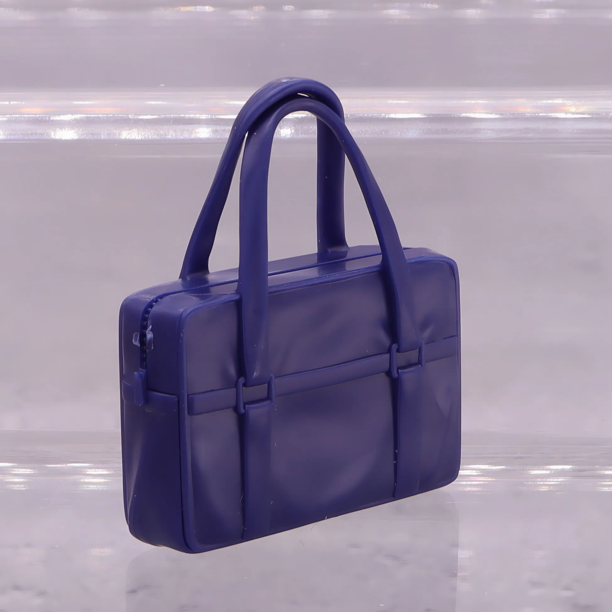 通学鞄はネイビーの単色成型なので、ファスナーや金具などをシルバーで塗る必要あり
