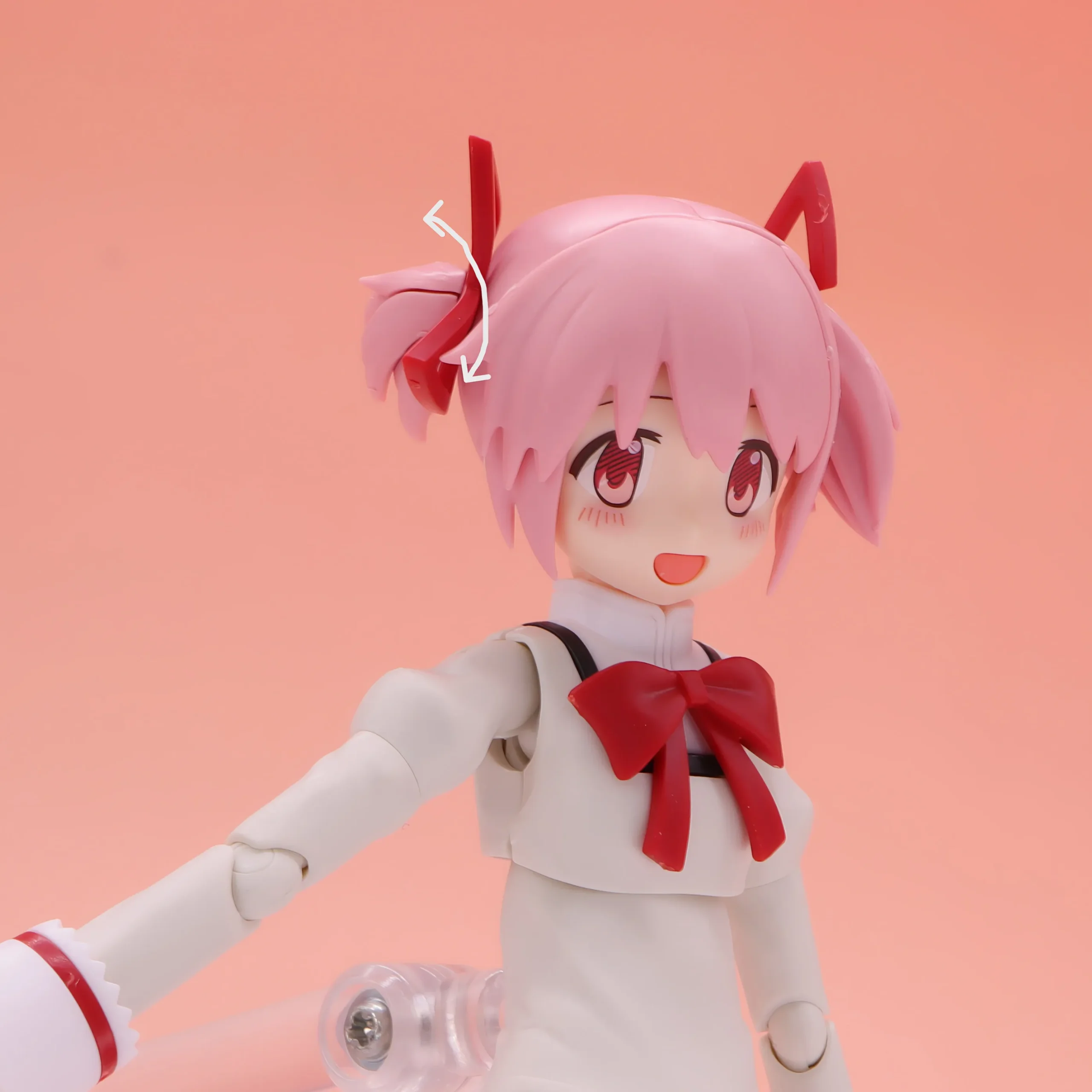 髪の毛(ツインテール)部分はある程度は自由に動かせます。根元がボールジョイントなので、他の30MSのヘアーパーツで色々とカスタムするのも楽しそうです。