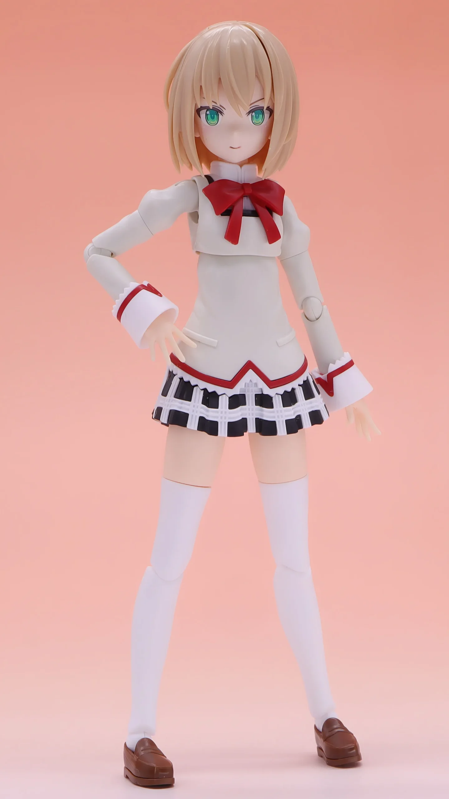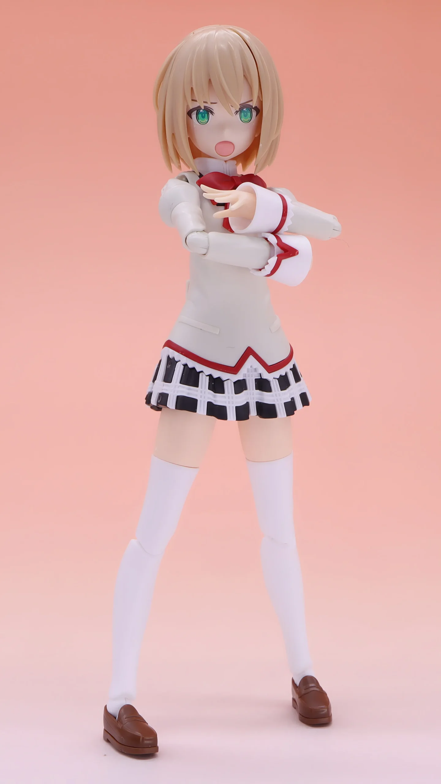 スカートがプラ製なので仕方ないですが、足を前方向や左右に大きく広げるポーズは開脚が制限されるので、殆ど出来ませんね。(キャラ的にそういったポーズはしないので、困らないかとは思いますが)足首は良く曲がるので接地性は〇です。