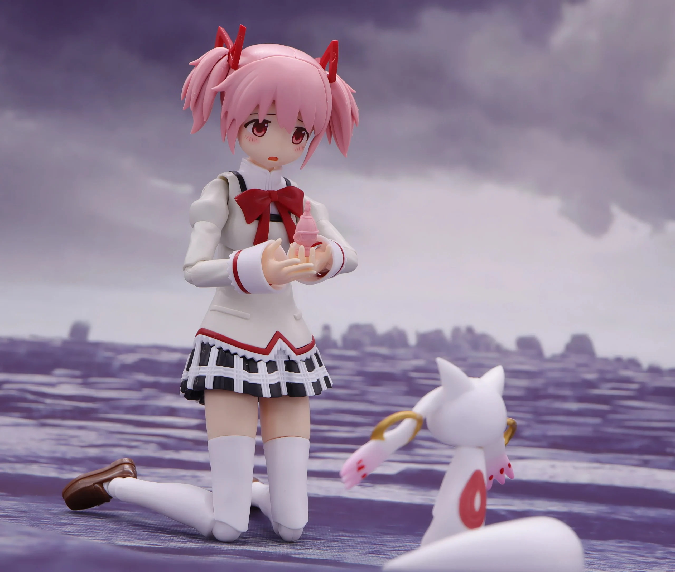 キュゥべえは頭と尻尾が稼働するので単体でもお座りポーズで飾ることが出来るようになっています。